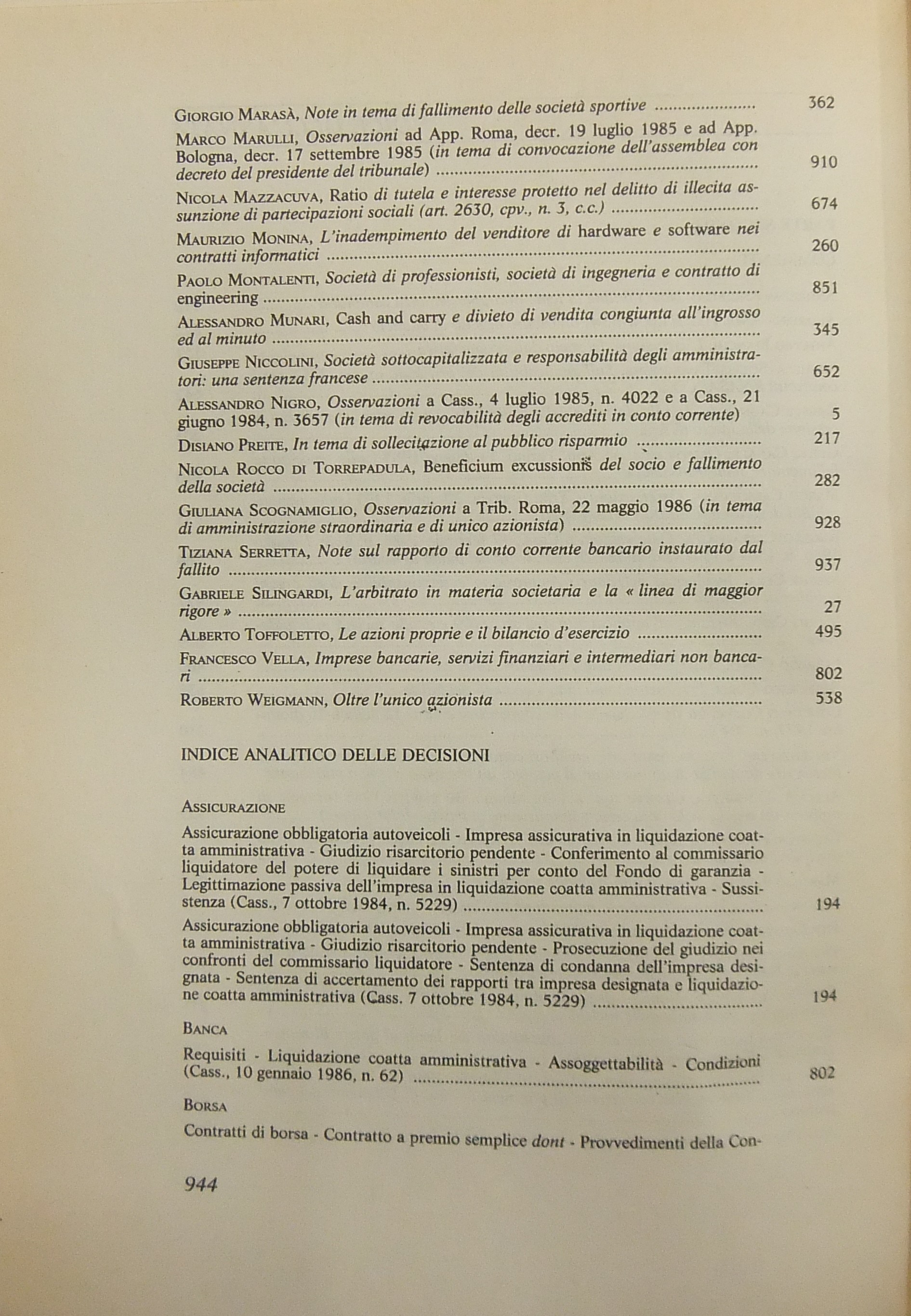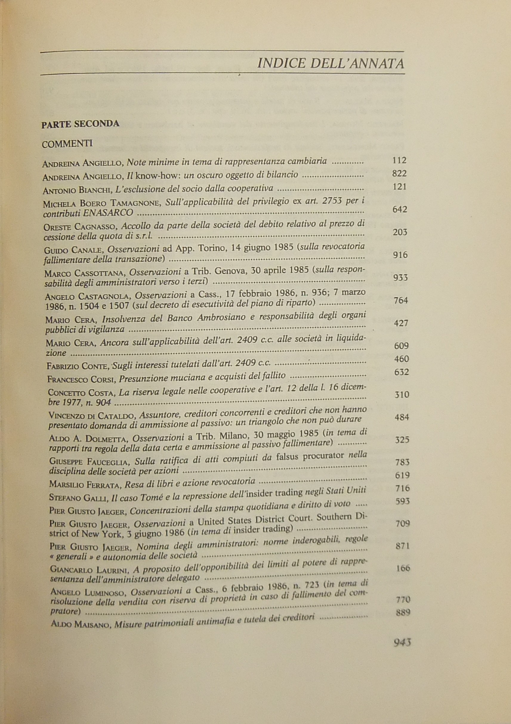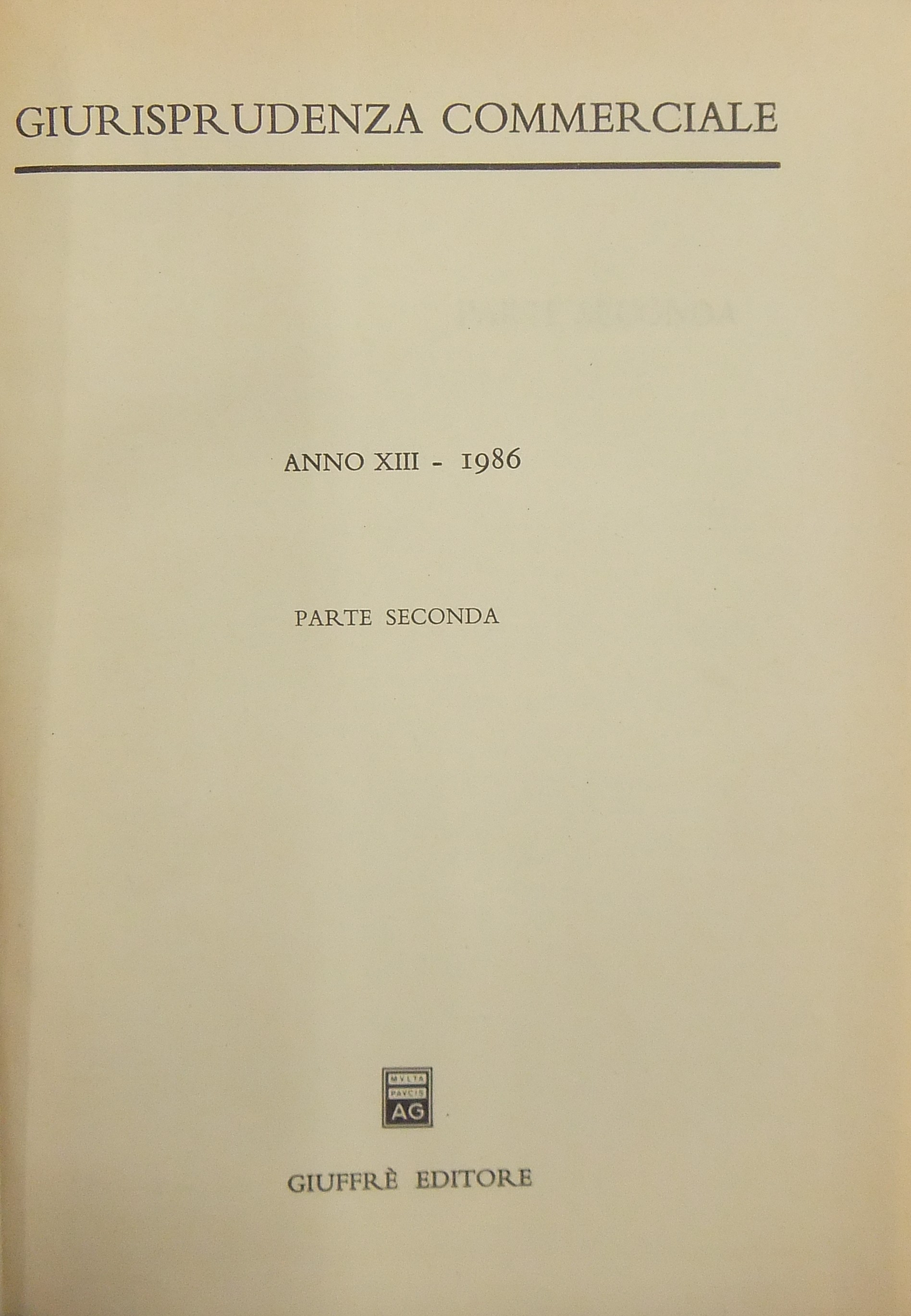 Giurisprudenza Commerciale. Società e fallimento. Anno XIII - 1986