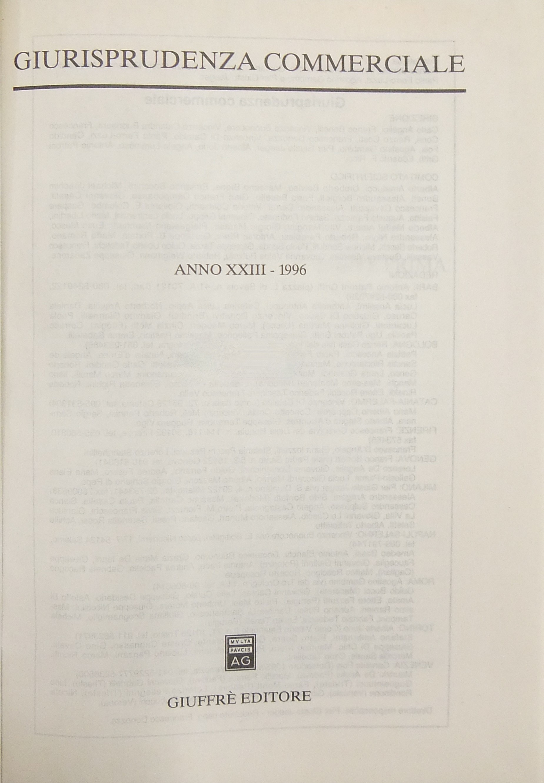 Giurisprudenza Commerciale. Società e fallimento. Anno I: 1974 - Anno XXIII: 1996