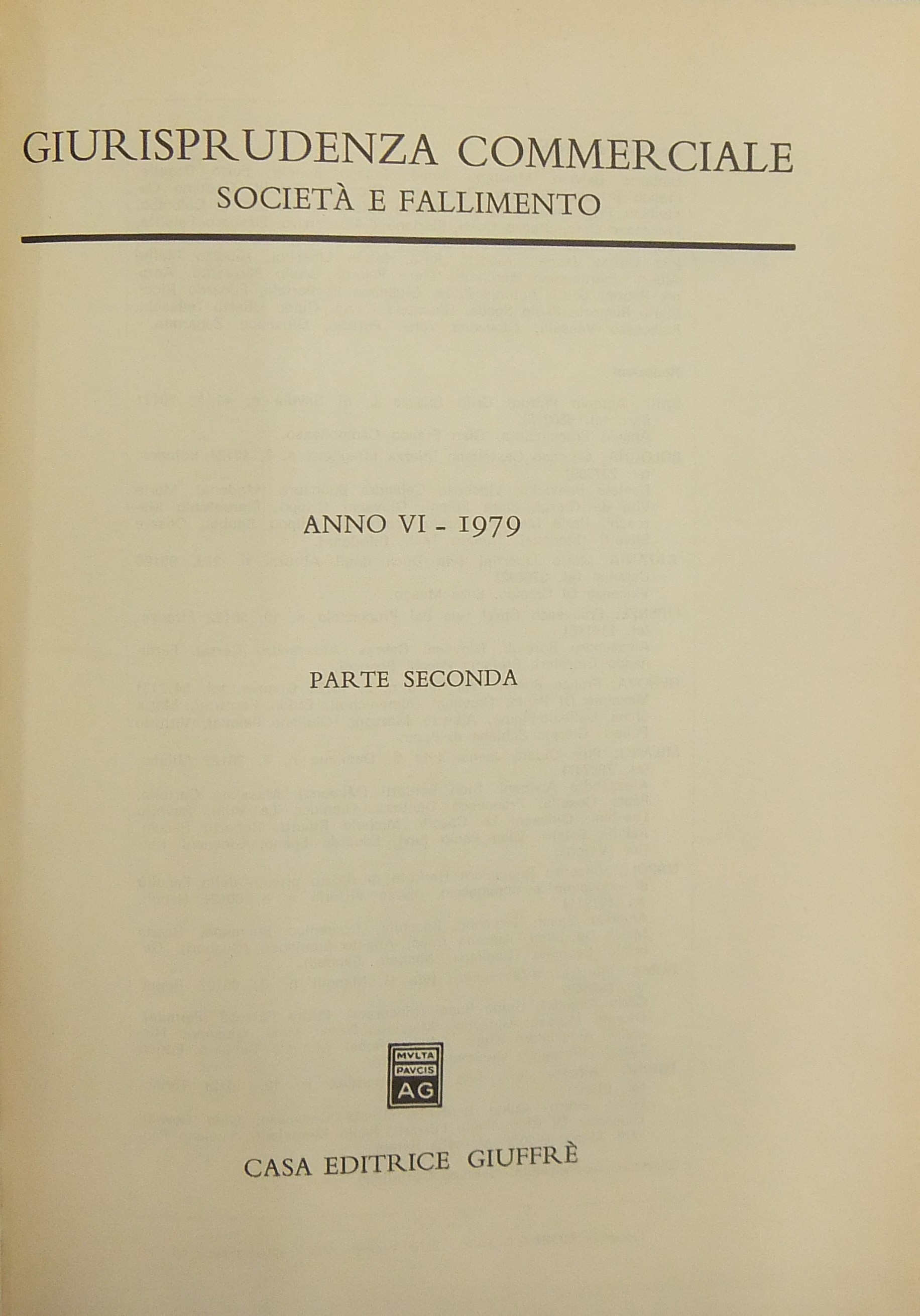 Giurisprudenza Commerciale. Società e fallimento. Anno VI - 1979