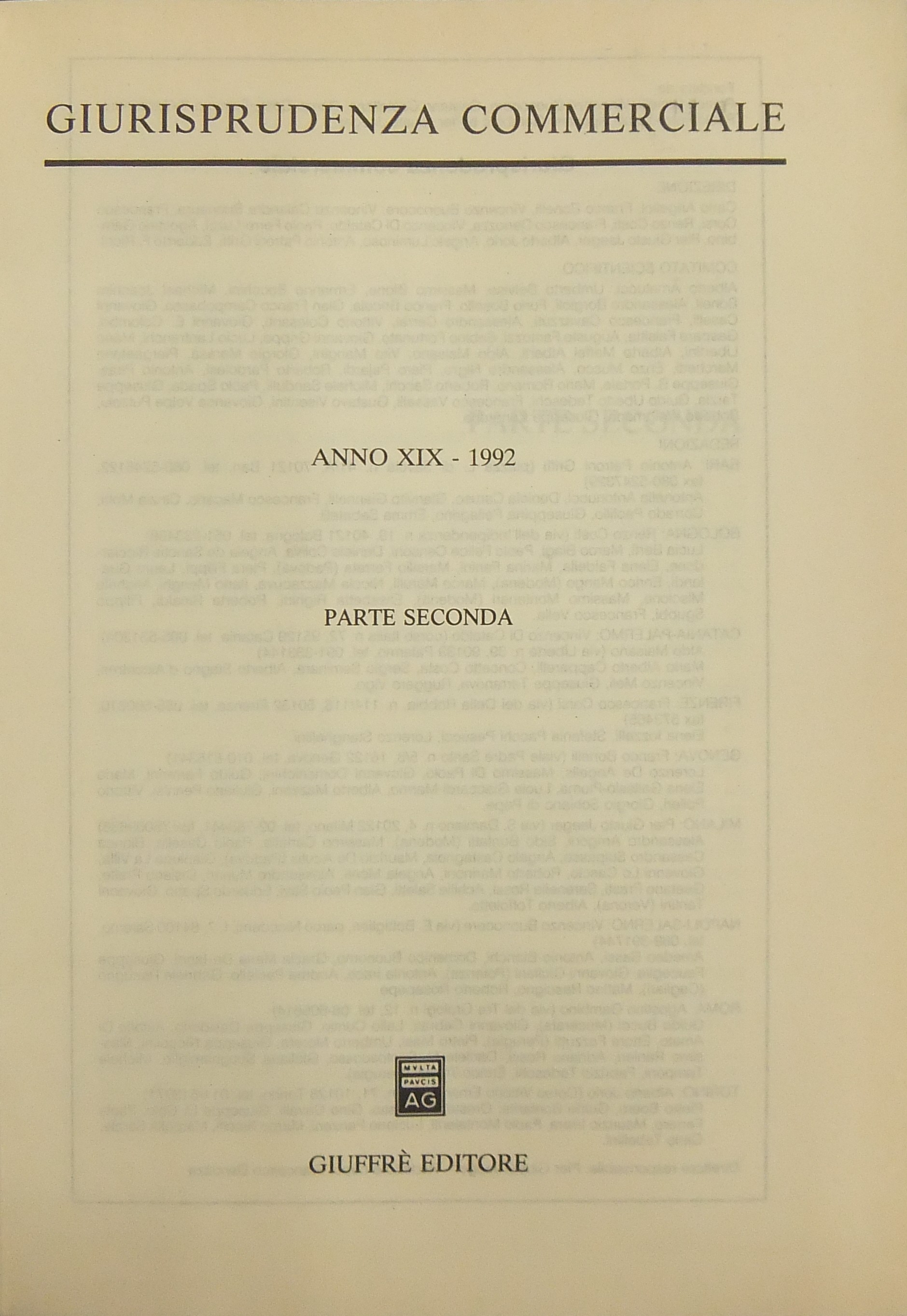 Giurisprudenza Commerciale. Società e fallimento. Anno XIX - 1992
