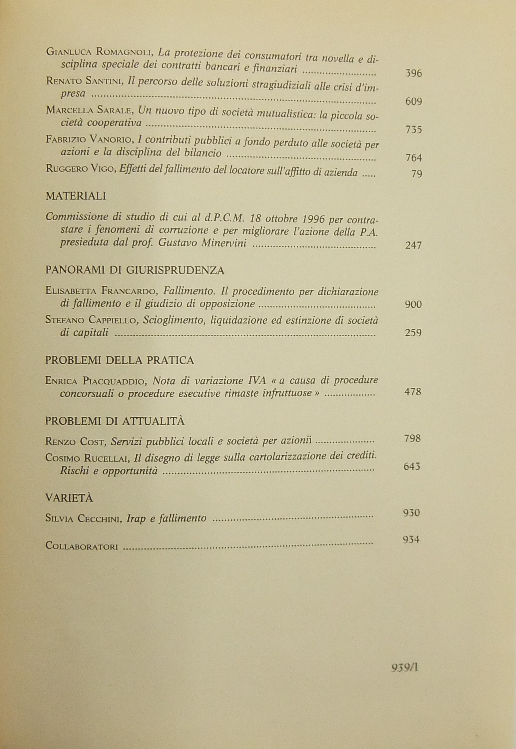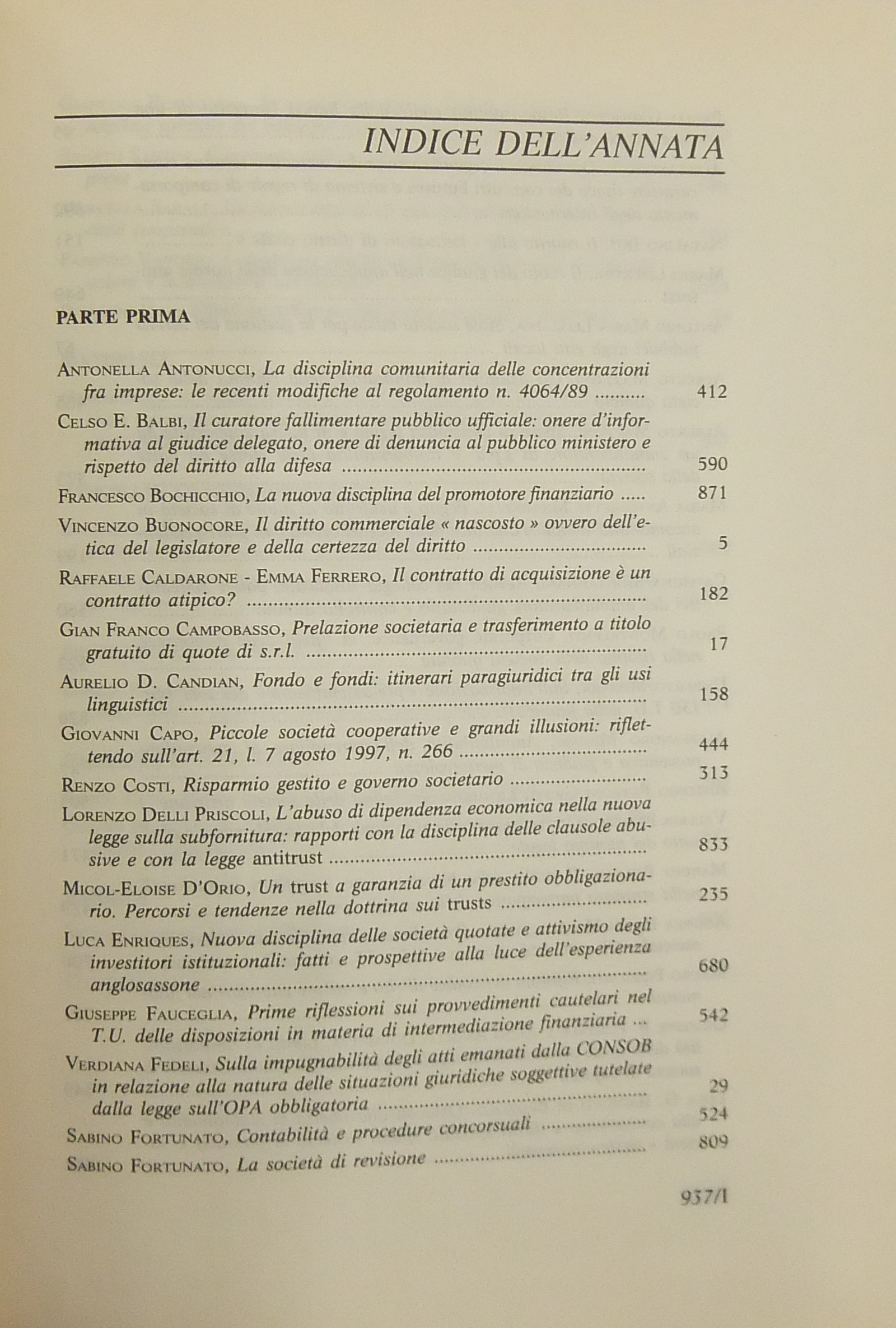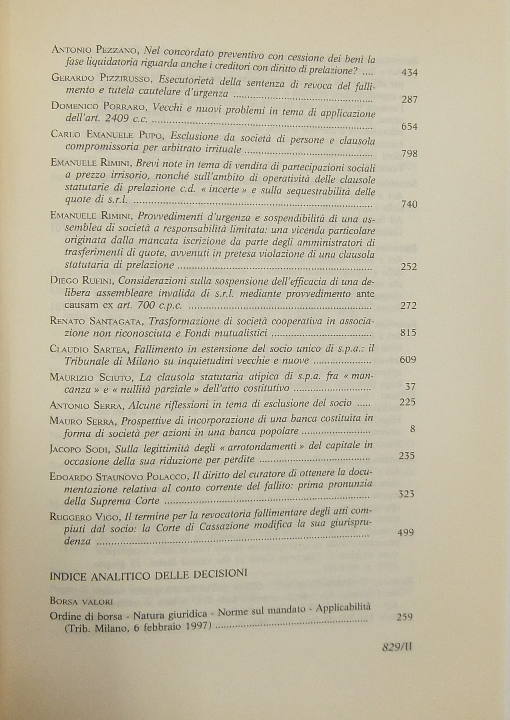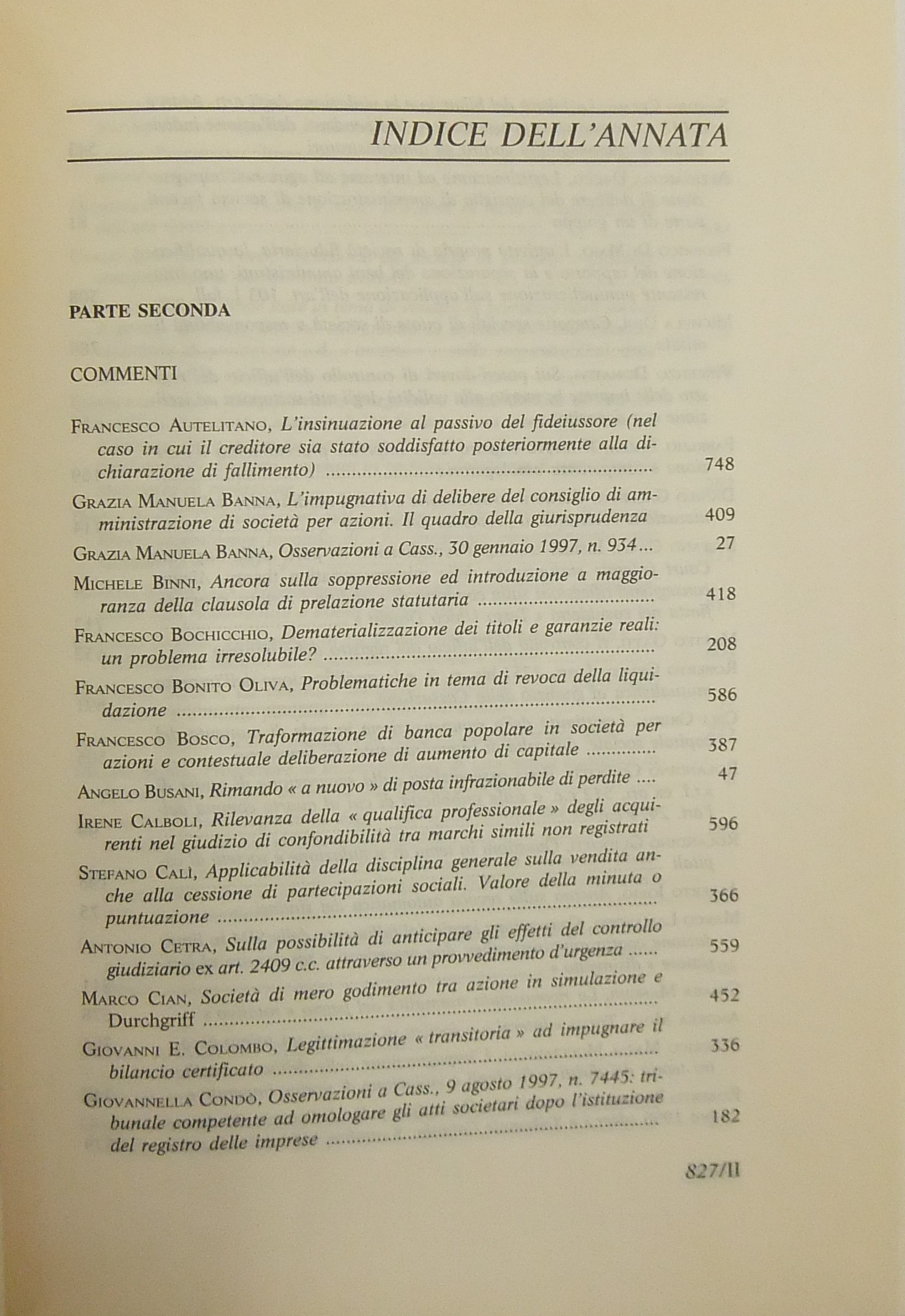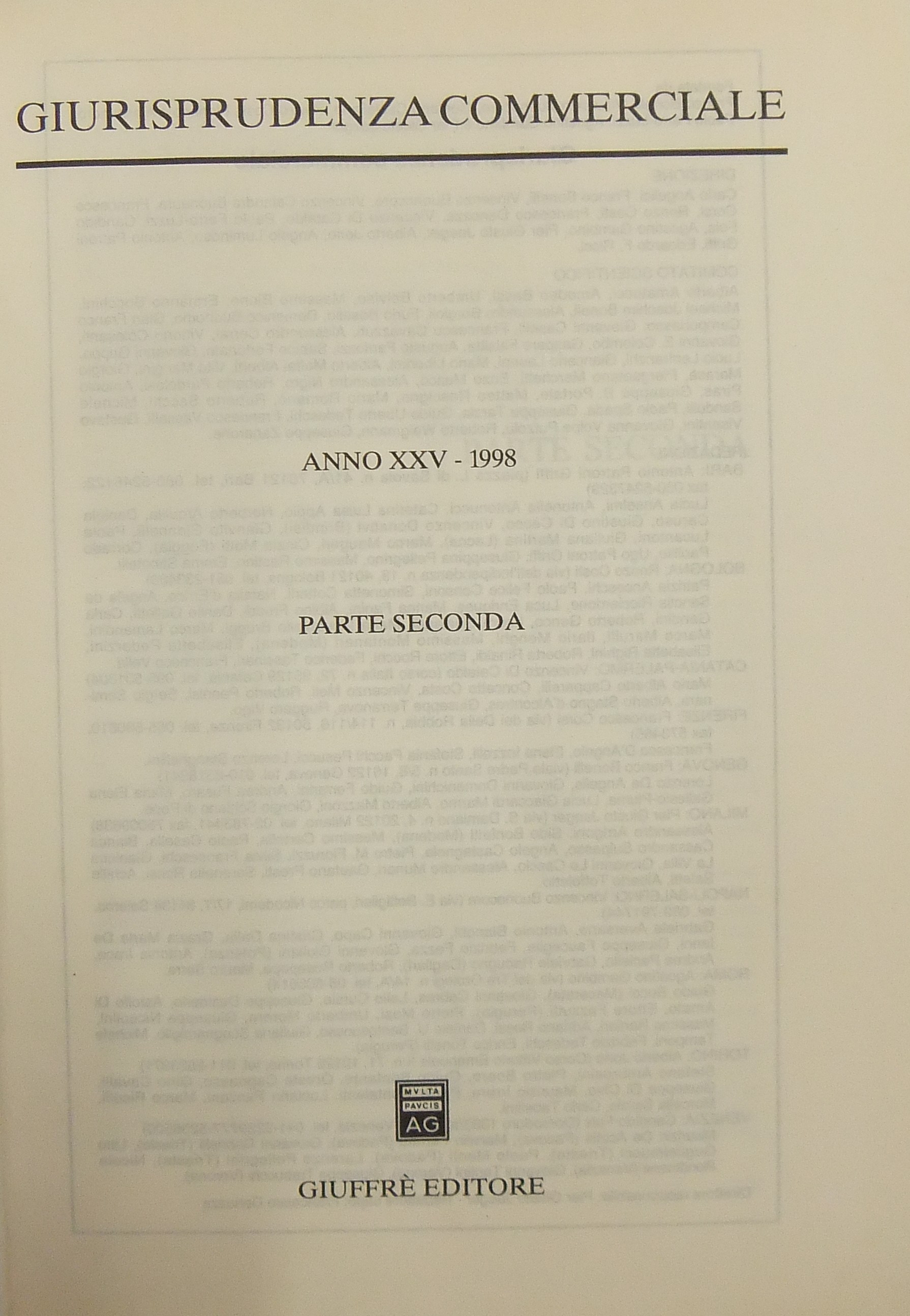 Giurisprudenza Commerciale. Società e fallimento. Anno XXV – 1998