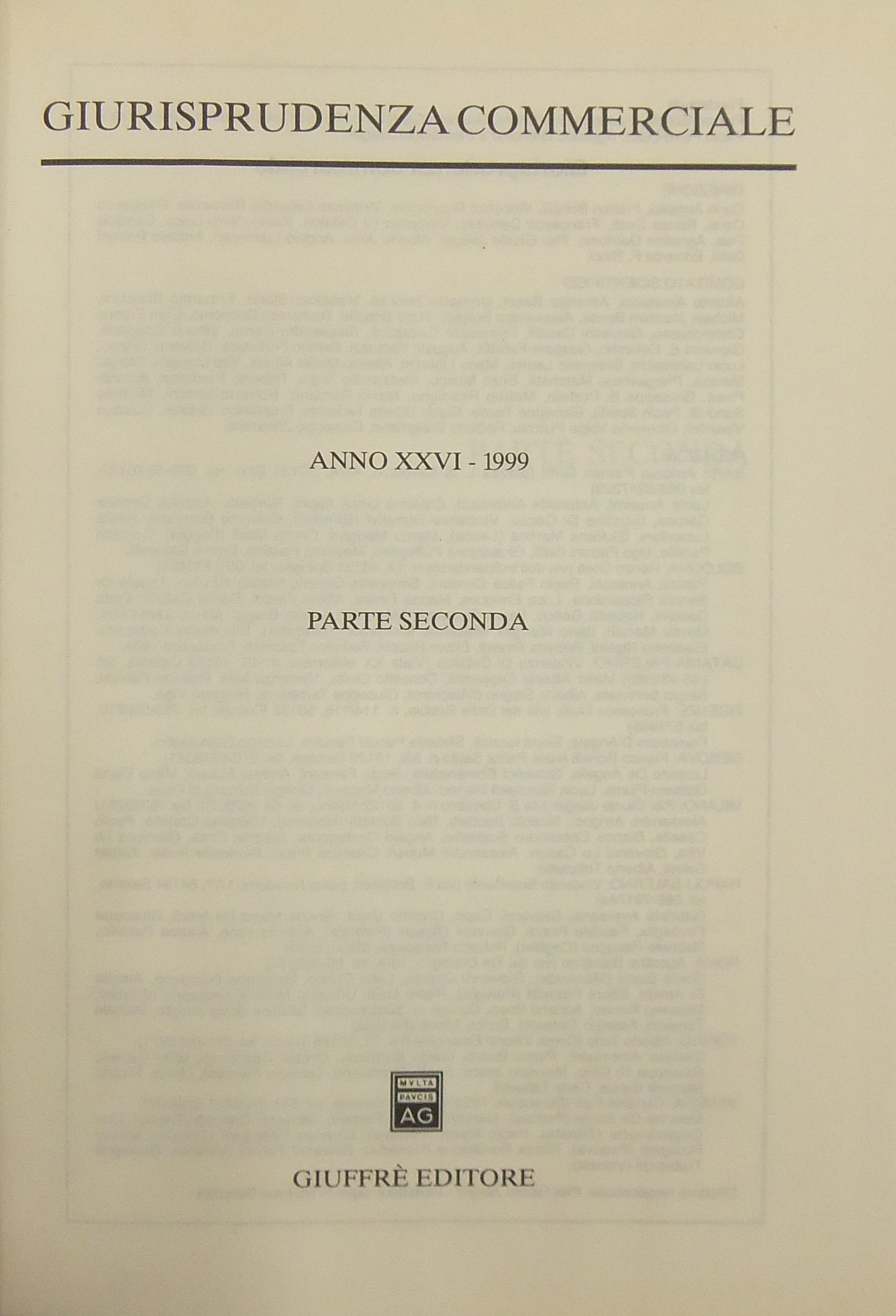 Giurisprudenza Commerciale. Società e fallimento. Anno XXVI - 1999