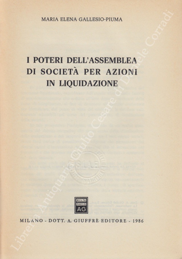 Direttore Collana: Franco Bonelli - Vincenzo Buonocore - Gaetano Castellano - Renzo Costi - Floriano D'Alessandro - Paolo Ferro Luzzi - Agostino Gambino - Pier Giusto Jaeger