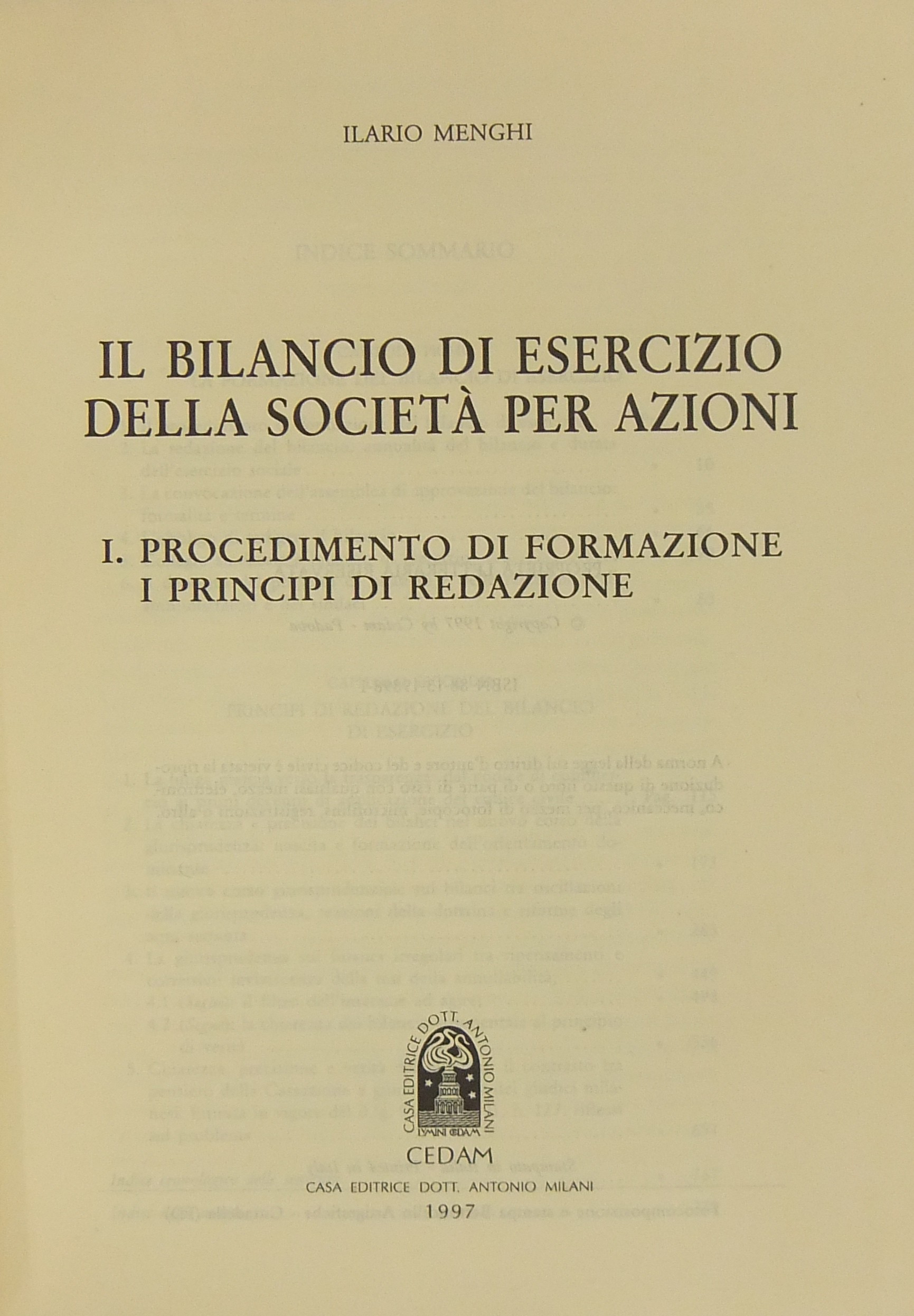 Il bilancio di esercizio della società per azioni. Vol. I - Procedimento di formazione. I principi di redazione
