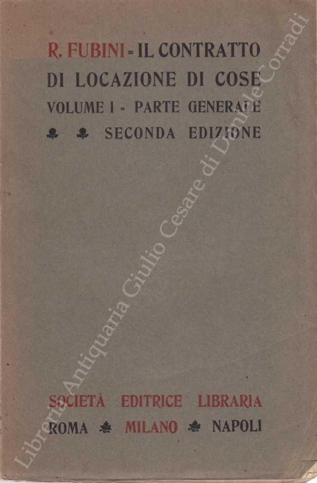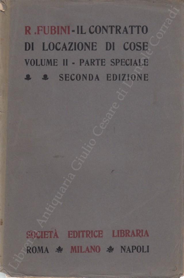Il contratto di locazione di cose. Vol. I - Parte generale: (Caratteri. Estremi. Forme); Vol. II - Parte speciale:Obblighi rispettivi delle parti contraenti. Rapporti vari tra le parti. Fine del contratto. Rapporti delle parti contraenti coi terzi