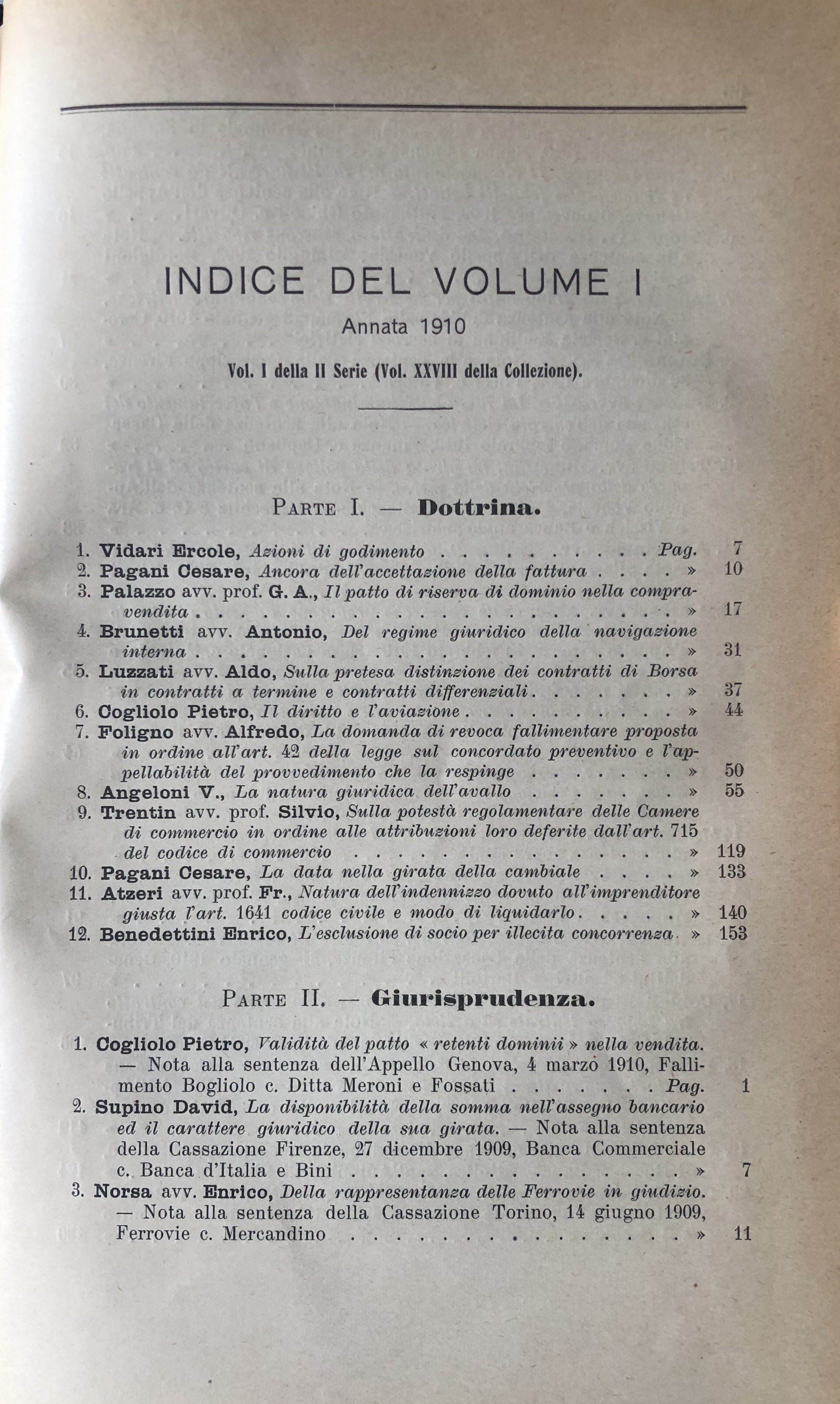 Il Diritto Commerciale. Rivista mensile critica di Dottrina, Legislazione e Giurisprudenza. Diretta da: P. Cogliolo e D. Supino. Annata 1910. Parte I - Dottrina. Parte II - Giurisprudenza. Serie II, Vol. I (Vol. XXVIII della collezione)