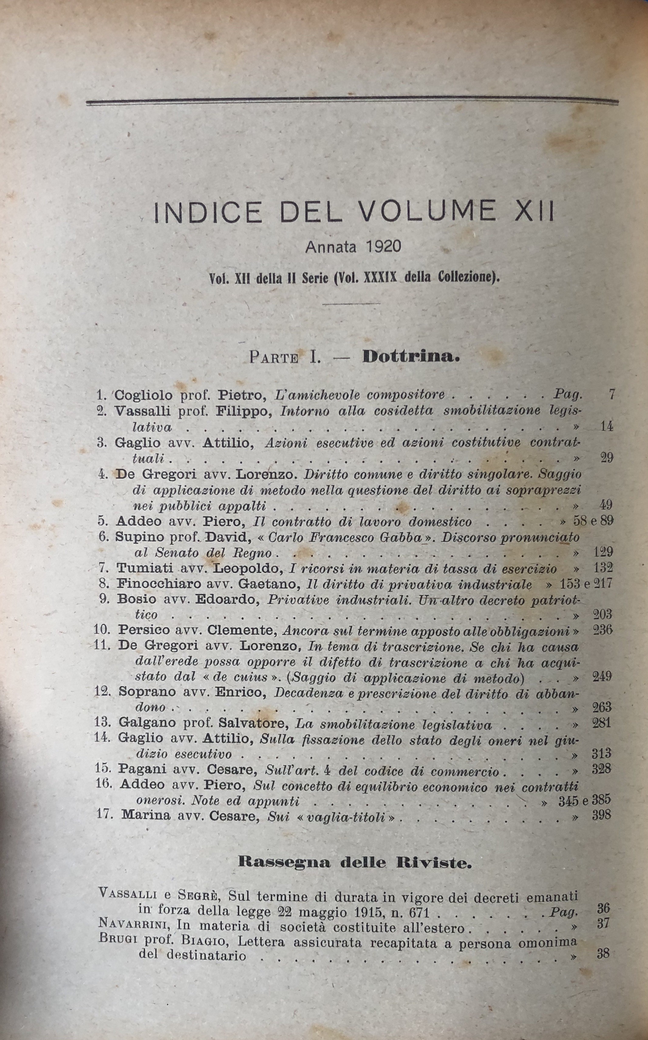 Il Diritto Commerciale. Rivista mensile critica di Dottrina, Legislazione e Giurisprudenza. Diretta da: P. Cogliolo e D. Supino. Annata 1920. Parte I - Dottrina. Parte II - Giurisprudenza. Serie II, Vol. XII (Vol. XXXIX della collezione)