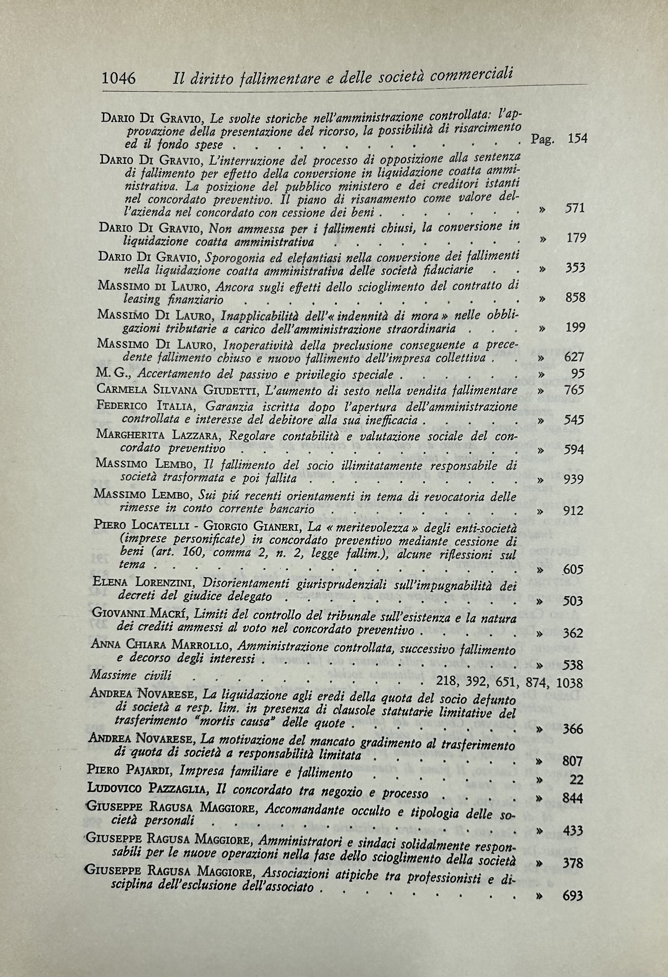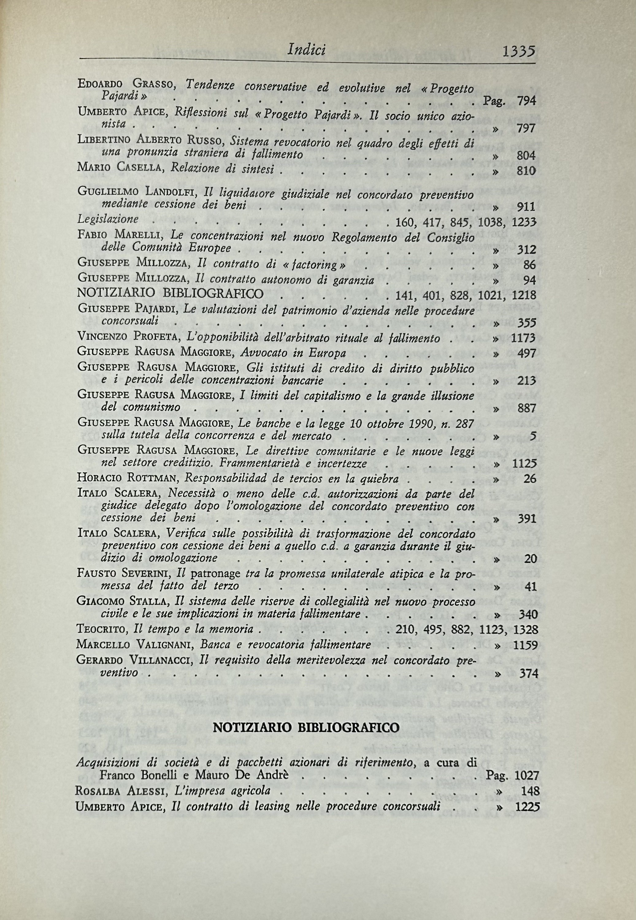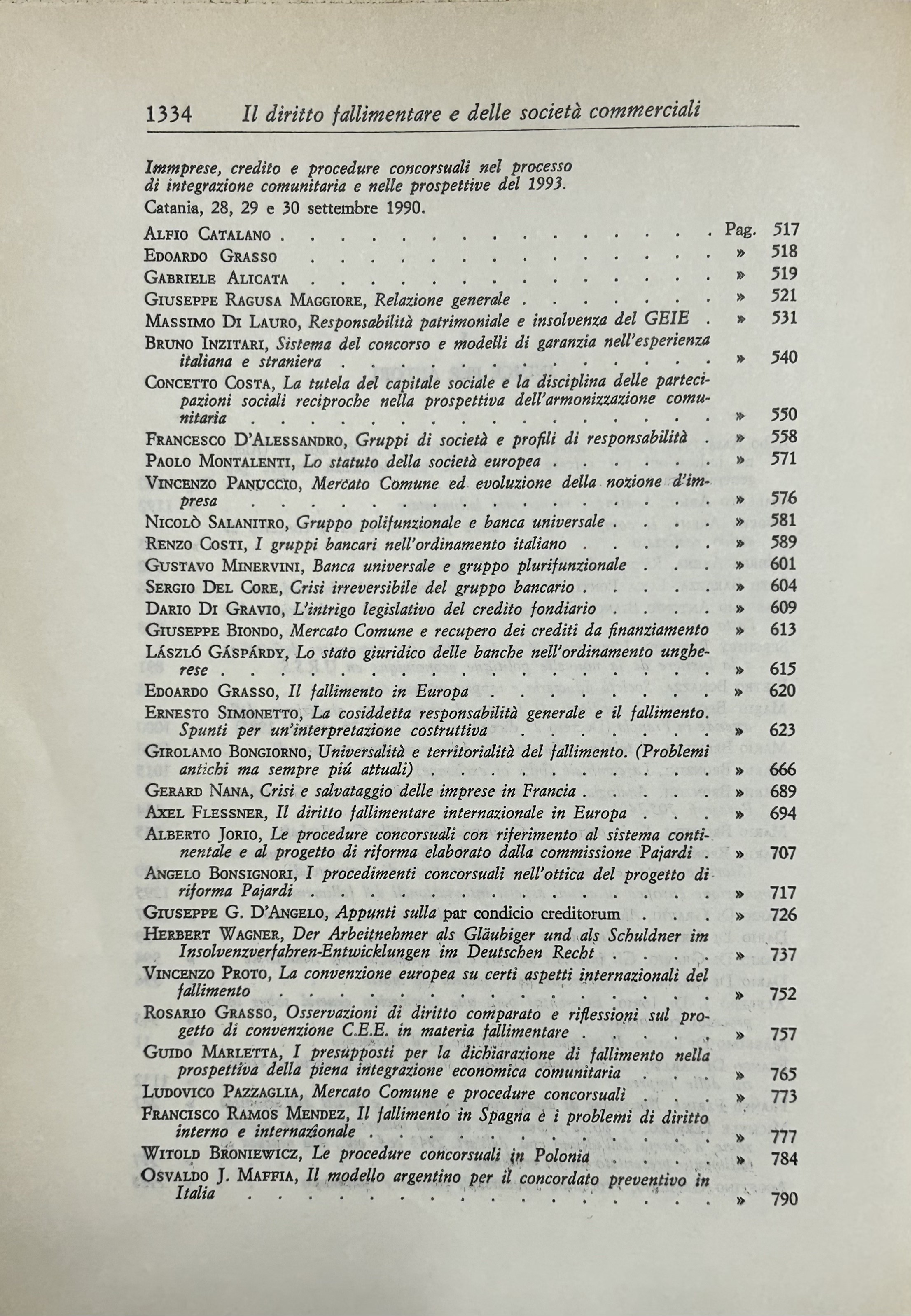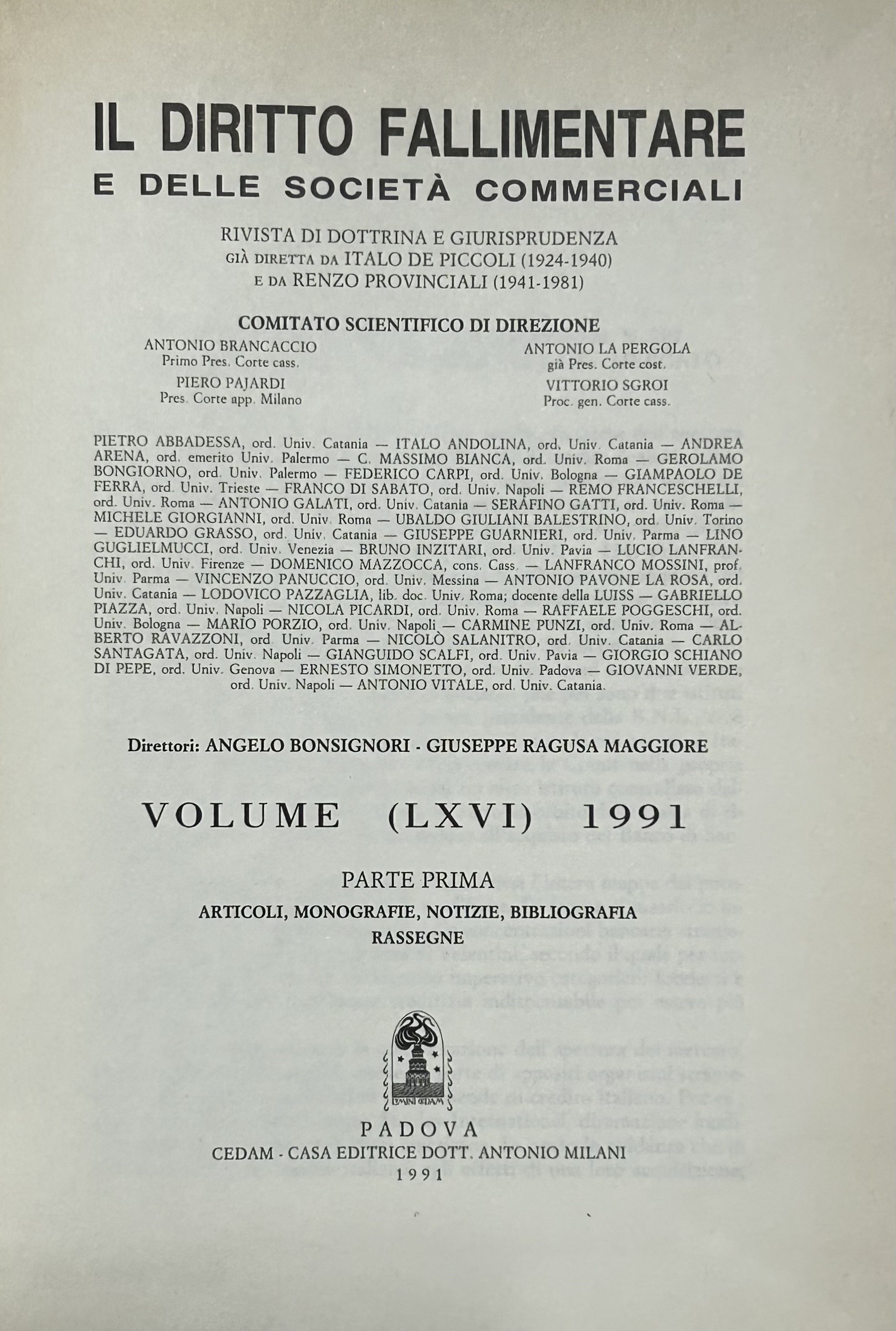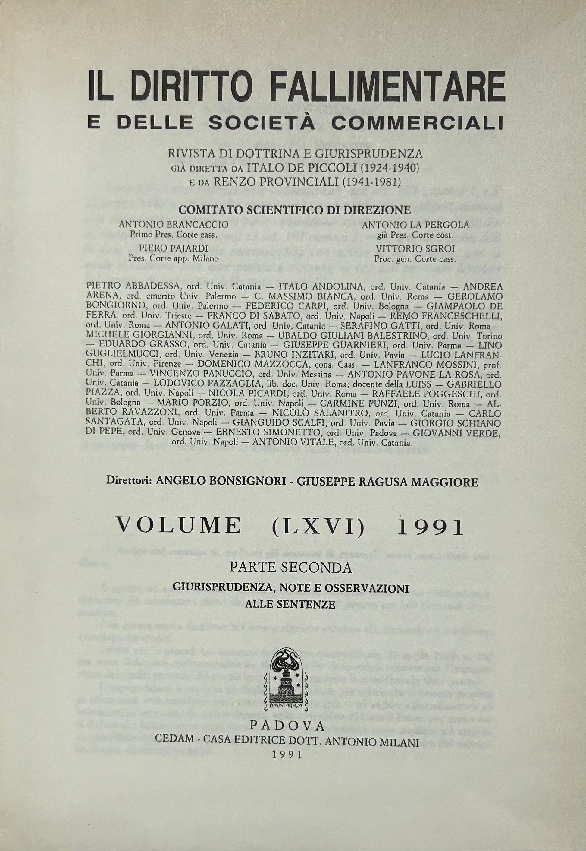 Il Diritto Fallimentare e delle società commerciali. Rivista di dottrina e giurisprudenza (già diretta da Italo De Piccoli 1924-1940 e Renzo Provinciali 1941-1981). Vol. LXVI - 1991. Diretta da Angelo Bonsignori, Giuseppe Ragusa Maggiore