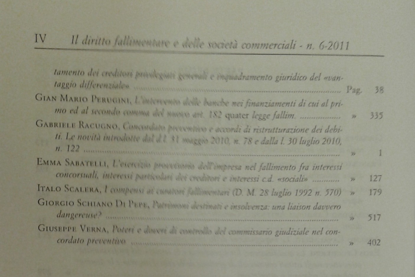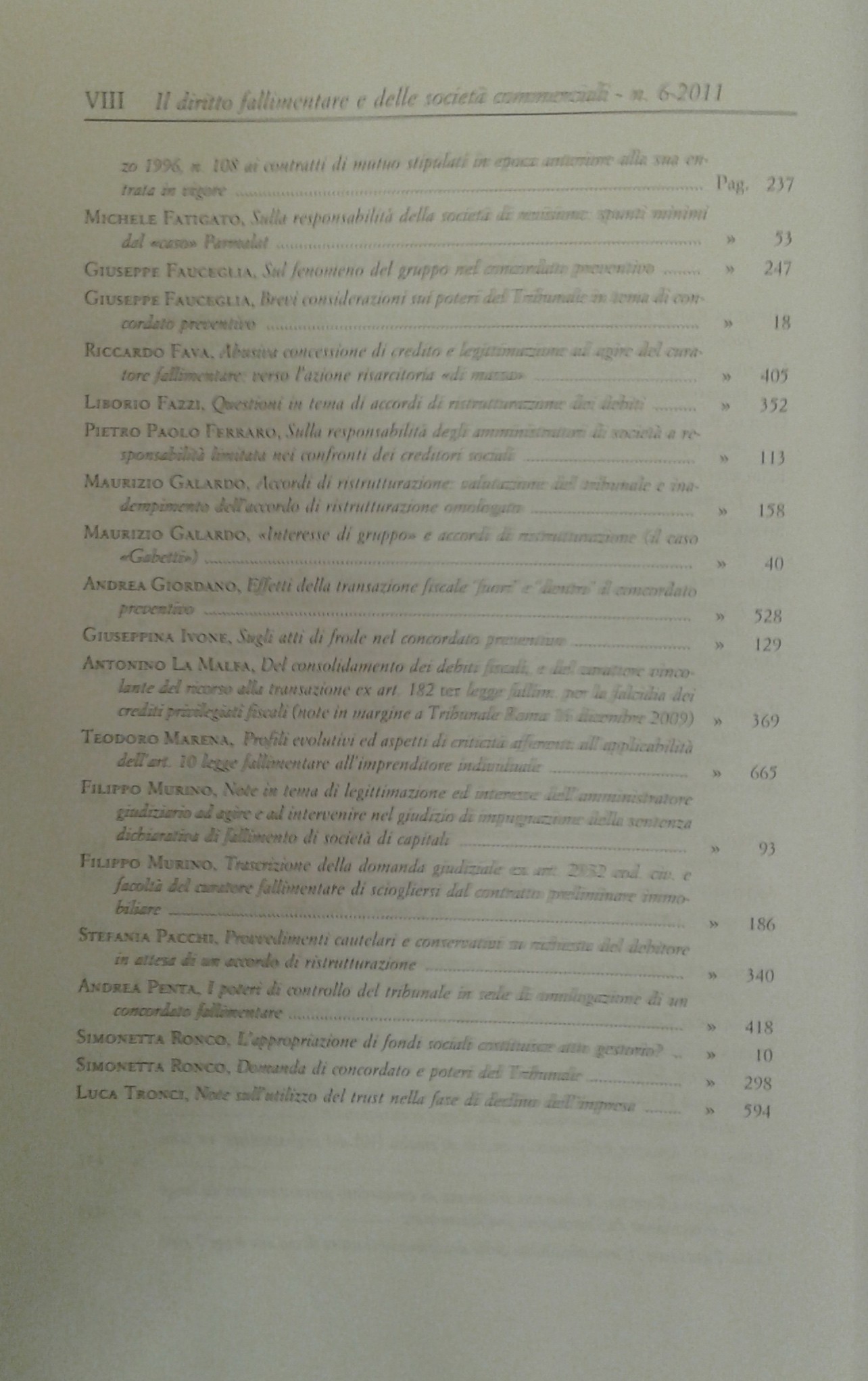 Il Diritto Fallimentare e delle società commerciali. Rivista di dottrina e giurisprudenza (già diretta da Italo De Piccoli 1924-1940 e Renzo Provinciali 1941-1981). Vol. LXXXVI - 2011. Diretta da Giuseppe Ragusa Maggiore