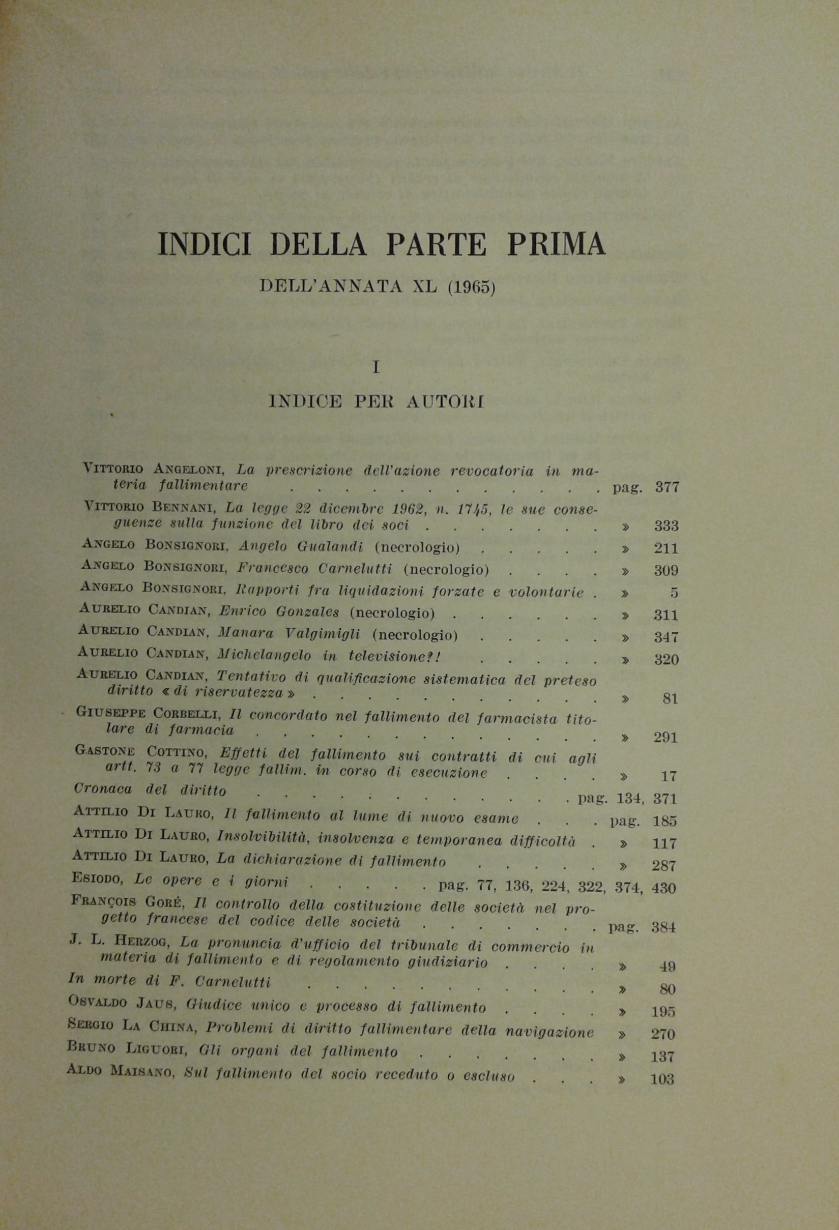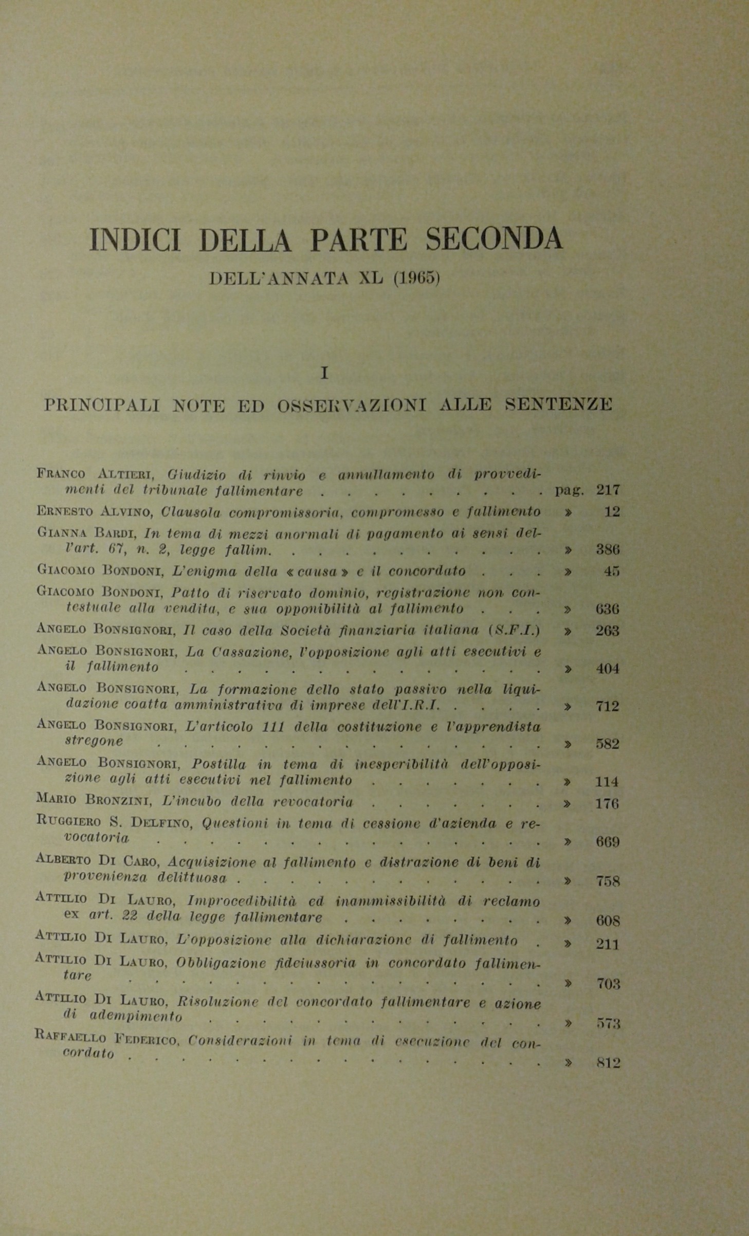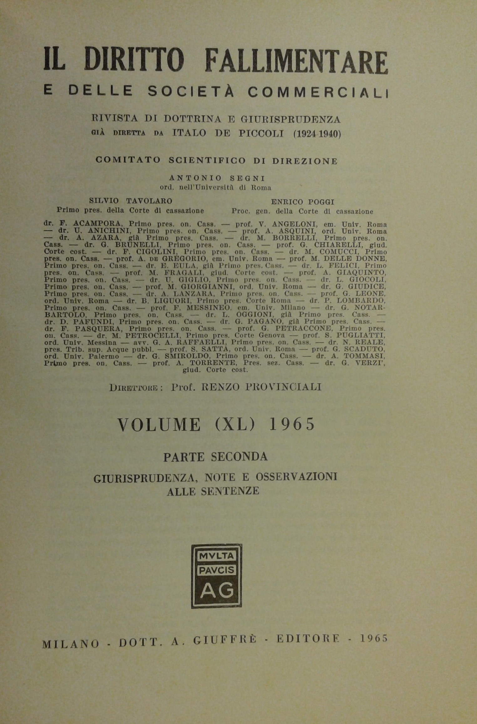 Il Diritto Fallimentare e delle società commerciali. Rivista di dottrina e giurisprudenza (già diretta da Italo De Piccoli 1924-1940). Vol. XL - 1965. Diretta da Renzo Provinciali