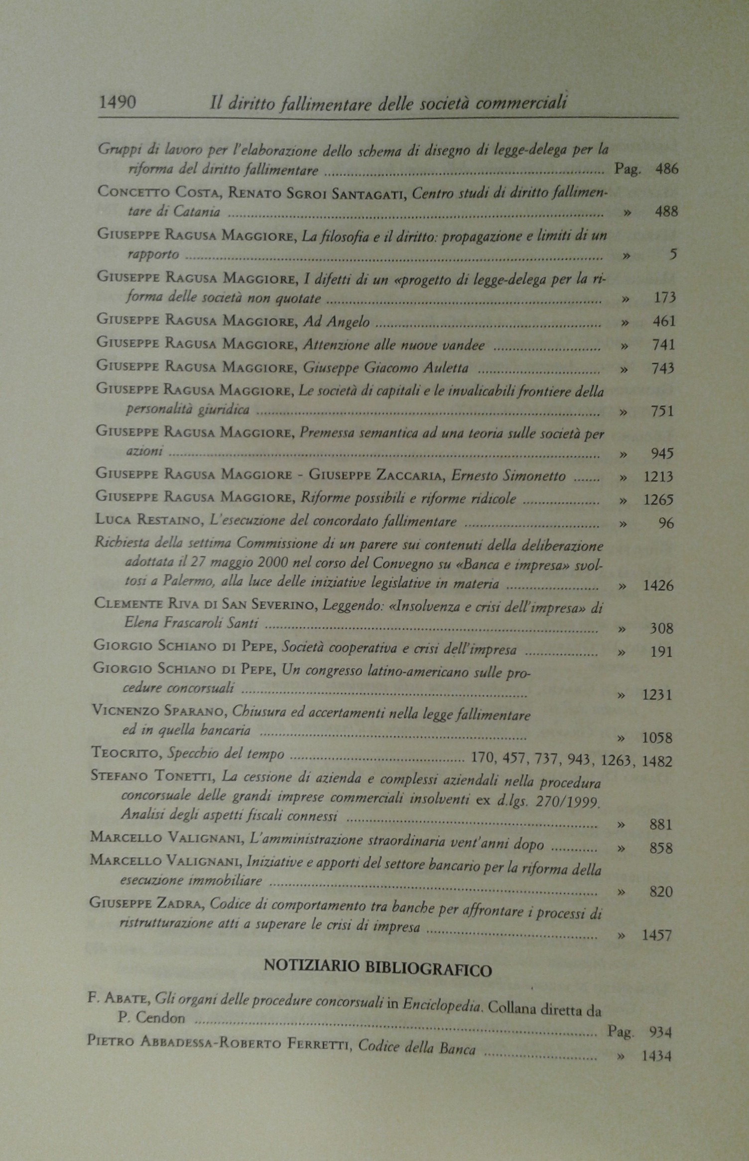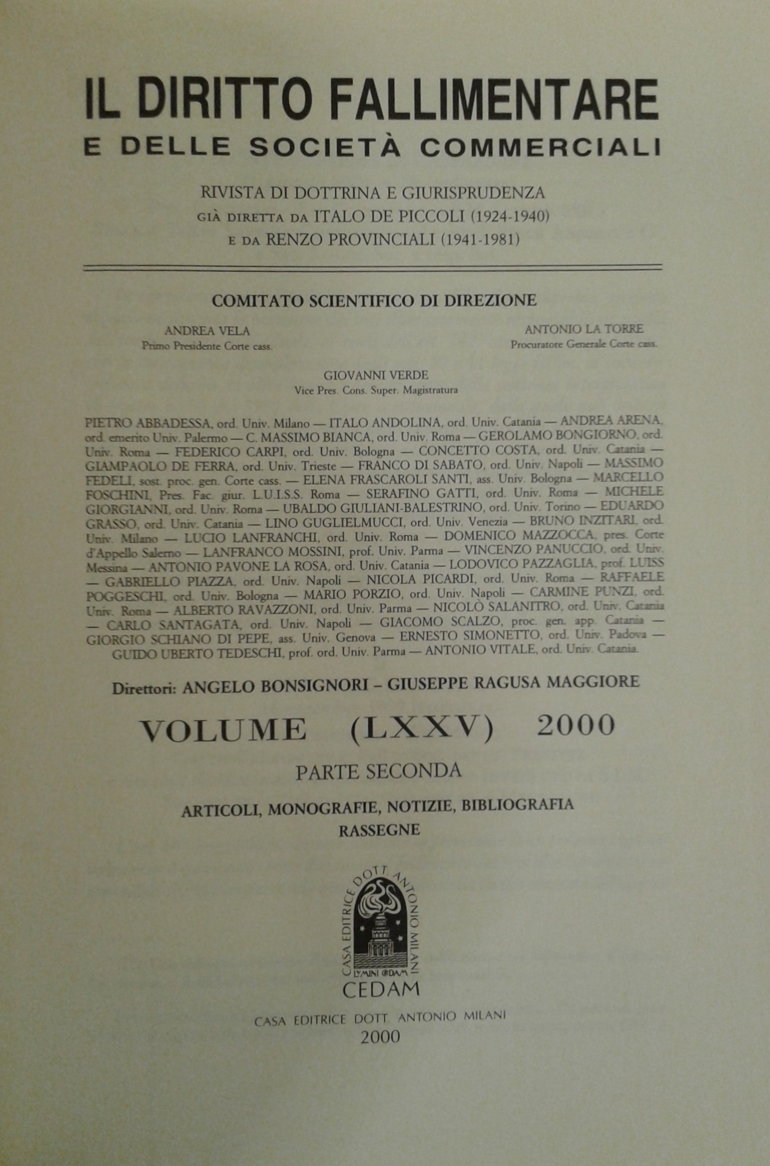 Il Diritto Fallimentare e delle società commerciali. Rivista di dottrina e giurisprudenza (già diretta da Italo De Piccoli 1924-1940 e Renzo Provinciali 1941-1981). Vol. LXXV - 2000. Diretta da Angelo Bonsignori, Giuseppe Ragusa Maggiore