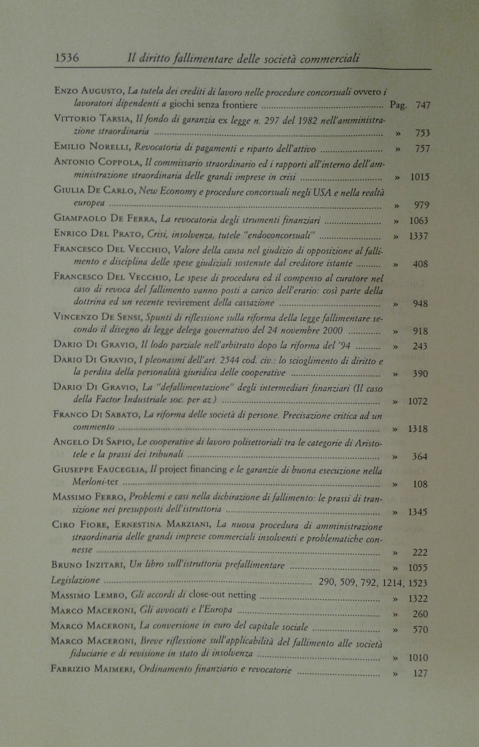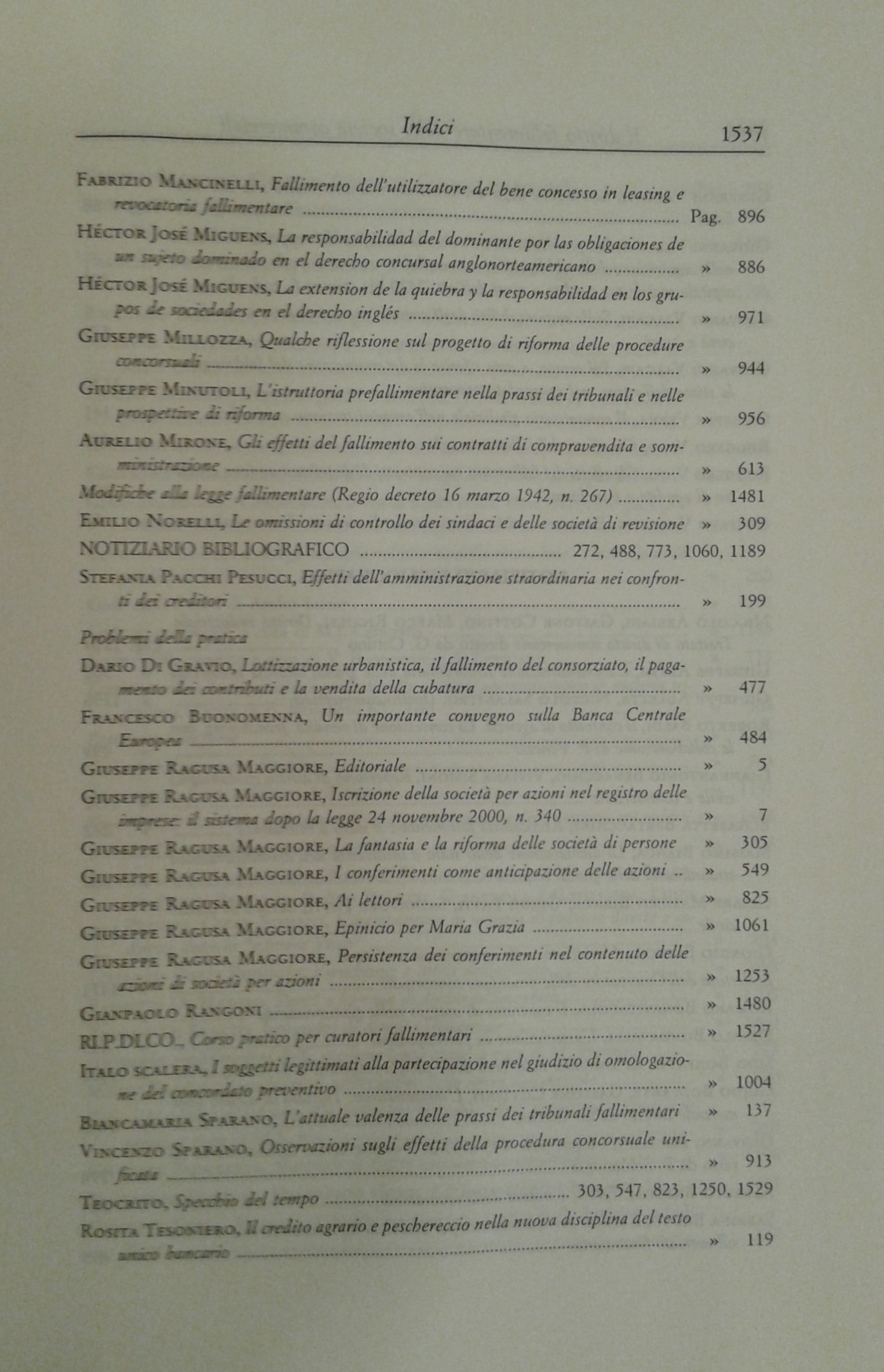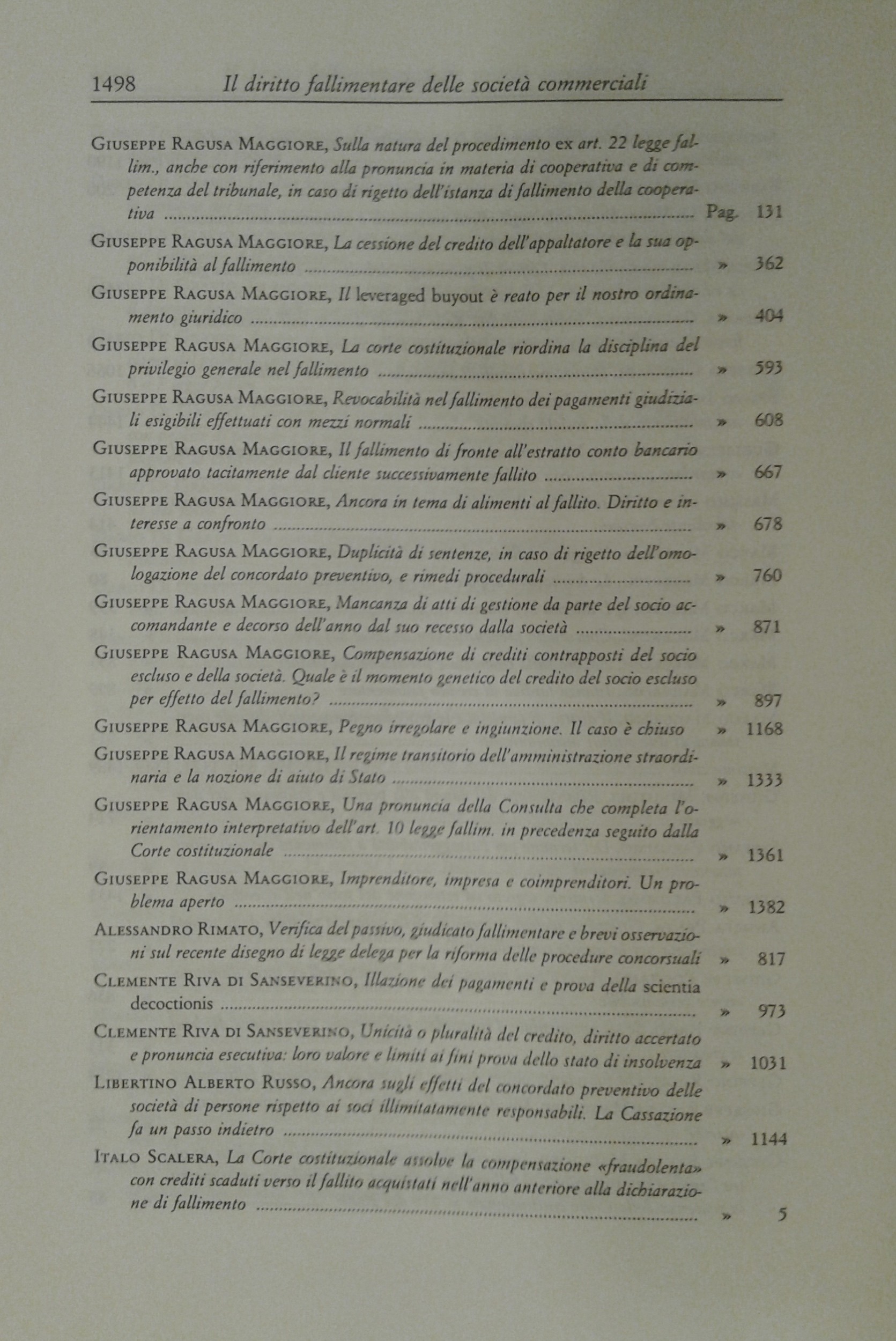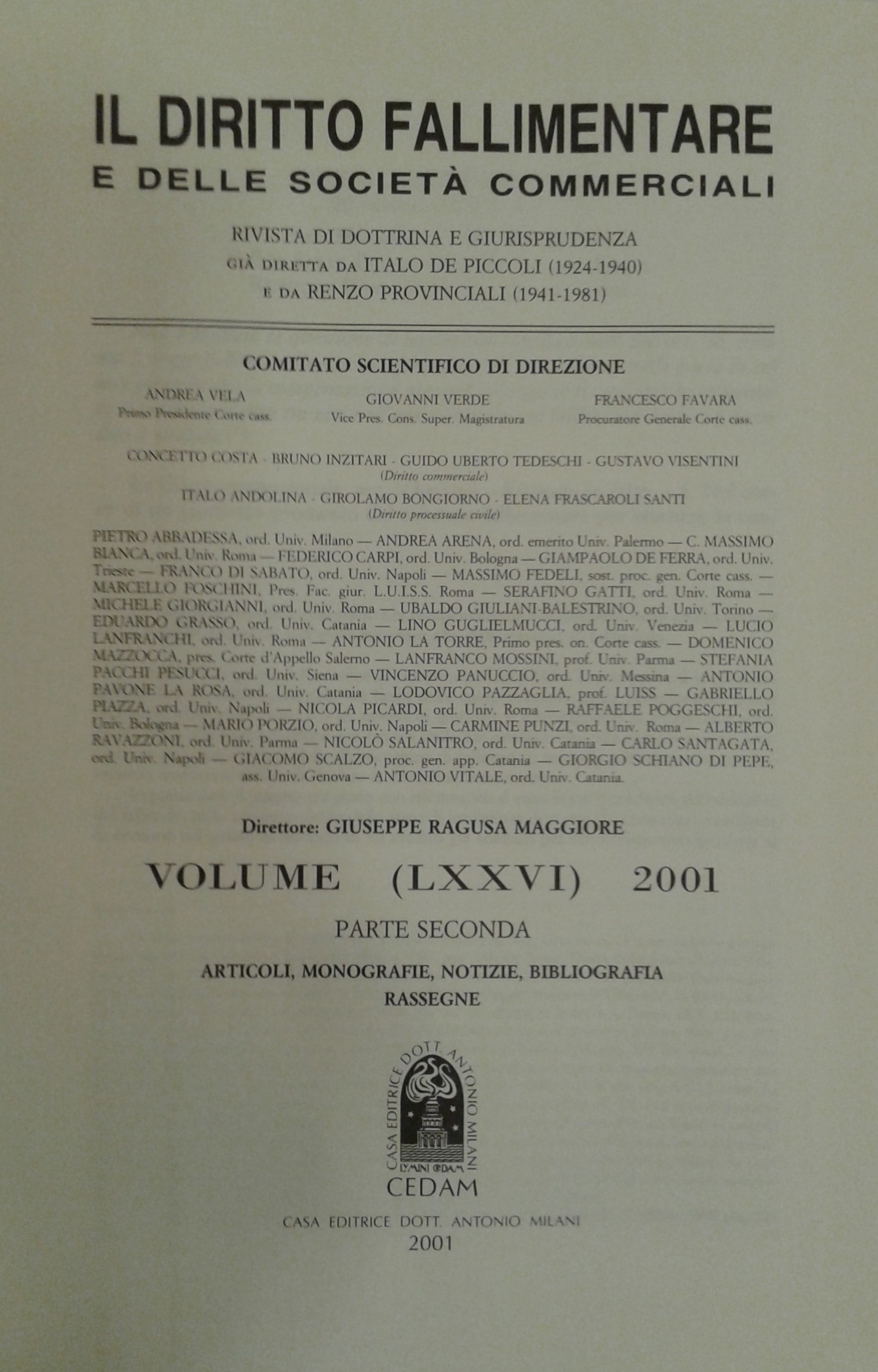 Il Diritto Fallimentare e delle società commerciali. Rivista di dottrina e giurisprudenza (già diretta da Italo De Piccoli 1924-1940 e Renzo Provinciali 1941-1981). Vol. LXXVI - 2001. Diretta da Giuseppe Ragusa Maggiore