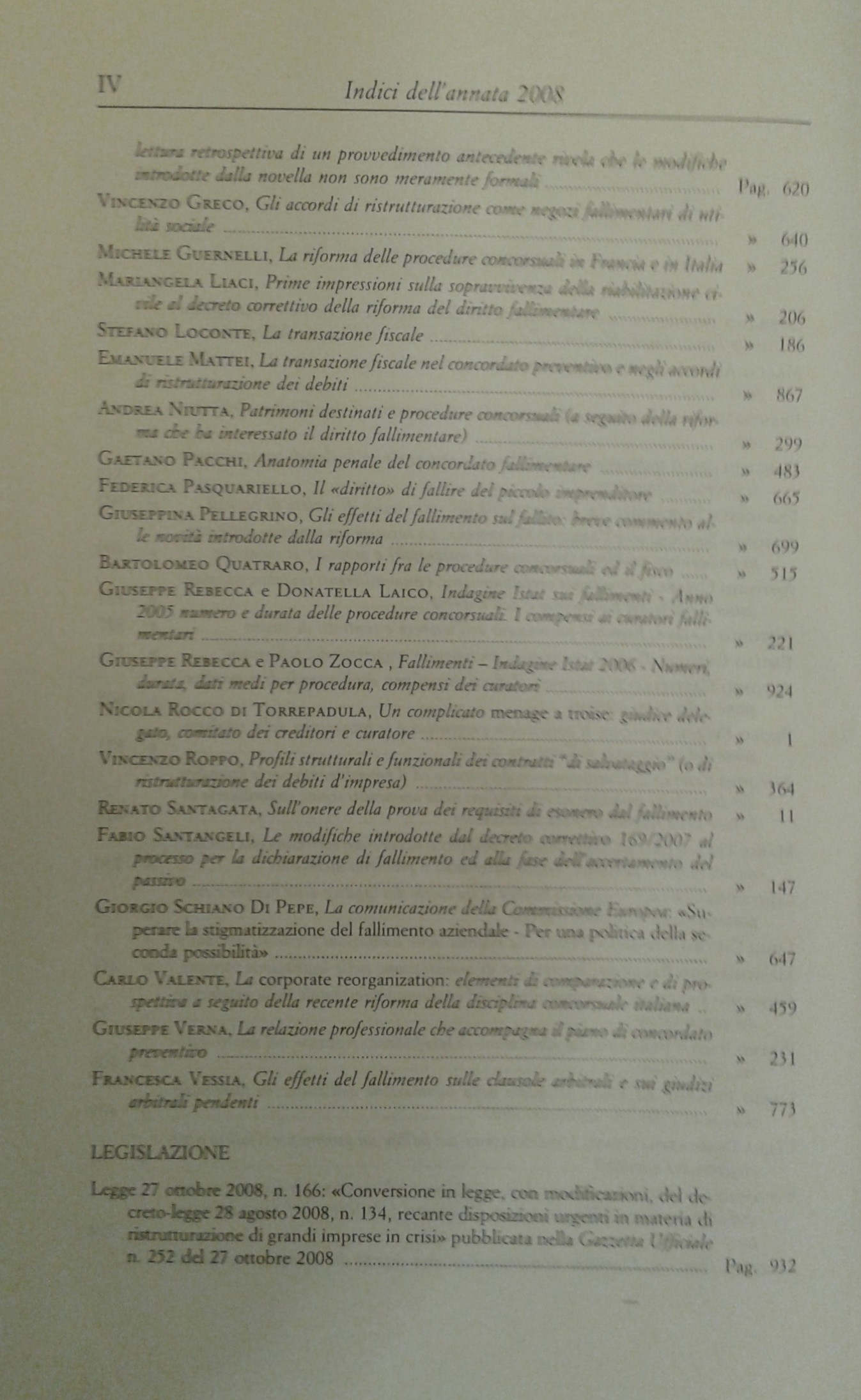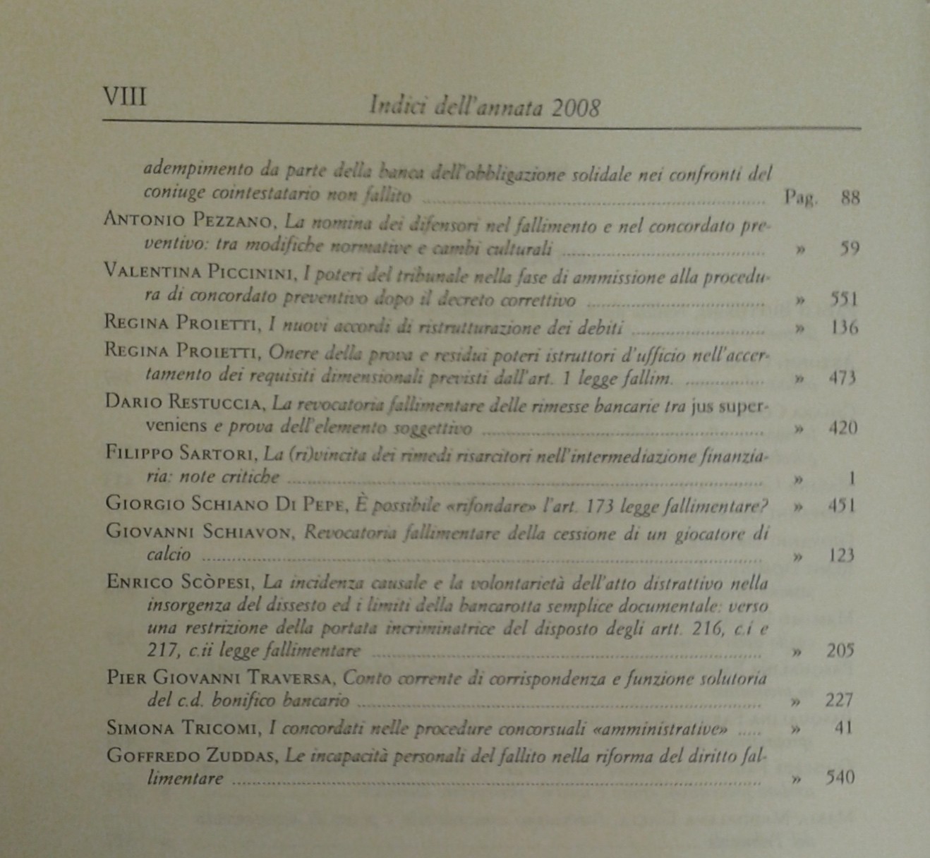 Il Diritto Fallimentare e delle società commerciali. Rivista di dottrina e giurisprudenza (già diretta da Italo De Piccoli 1924-1940 e Renzo Provinciali 1941-1981). Vol. LXXXIII - 2008. Diretta da Giuseppe Ragusa Maggiore