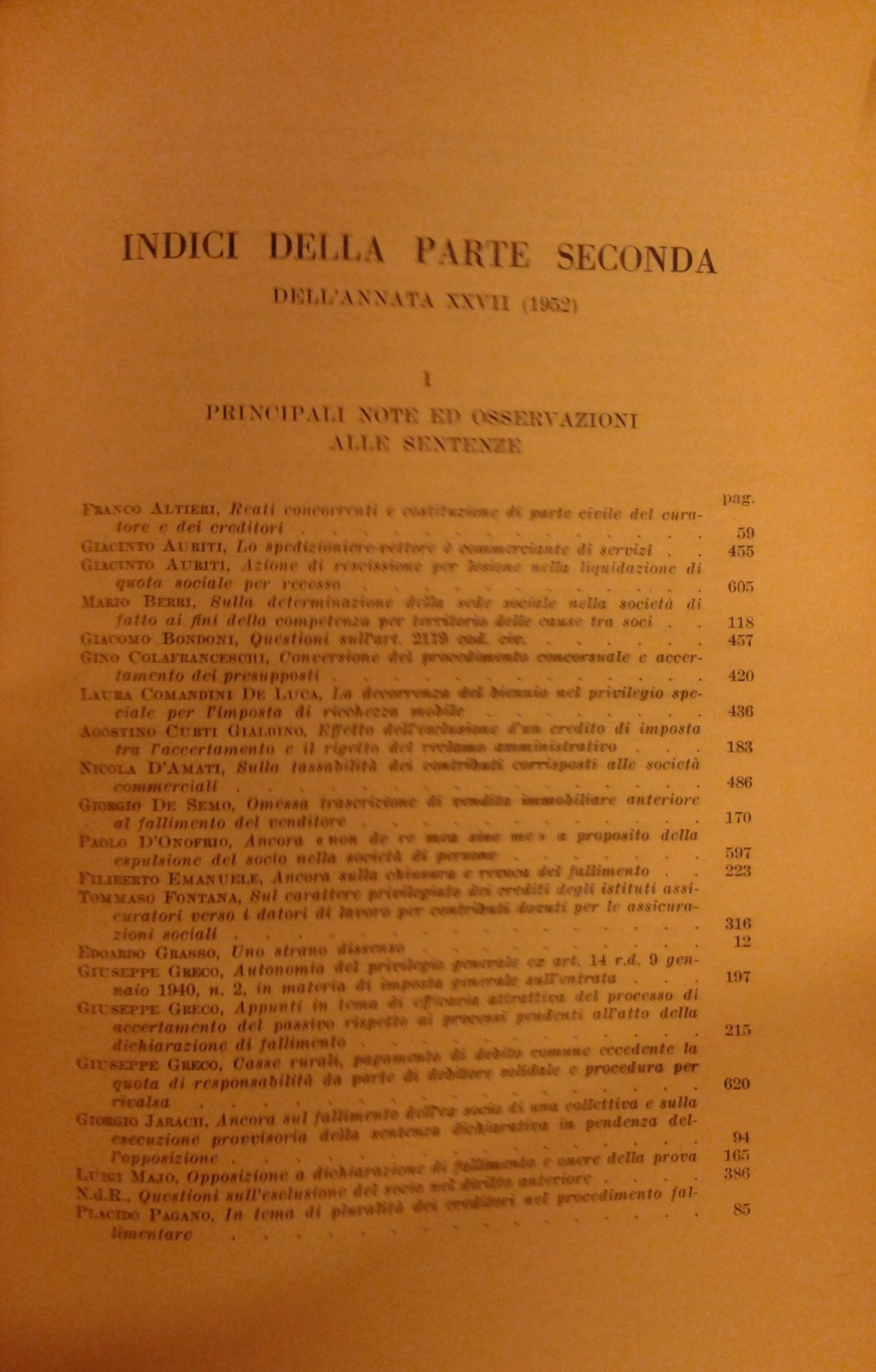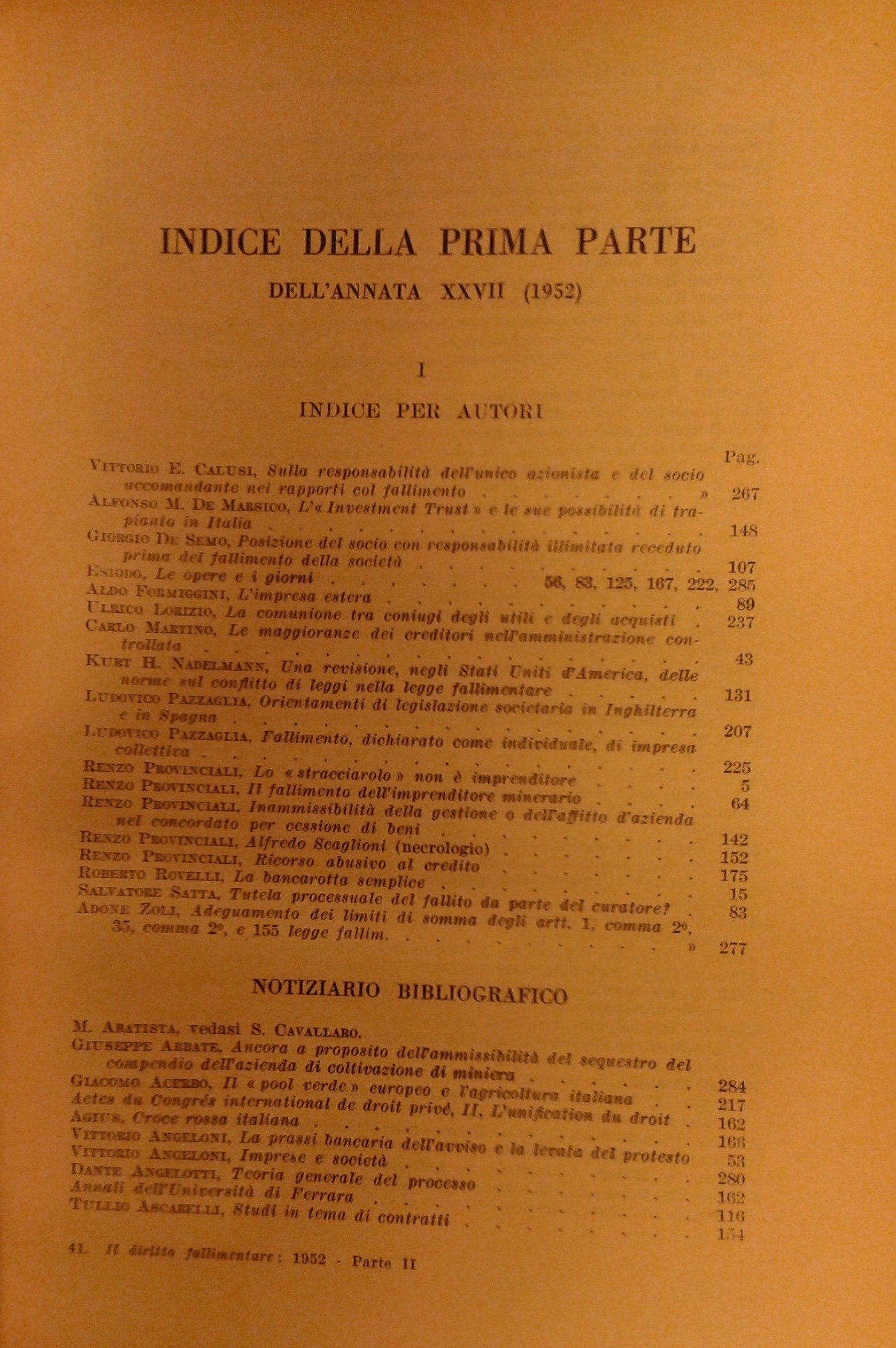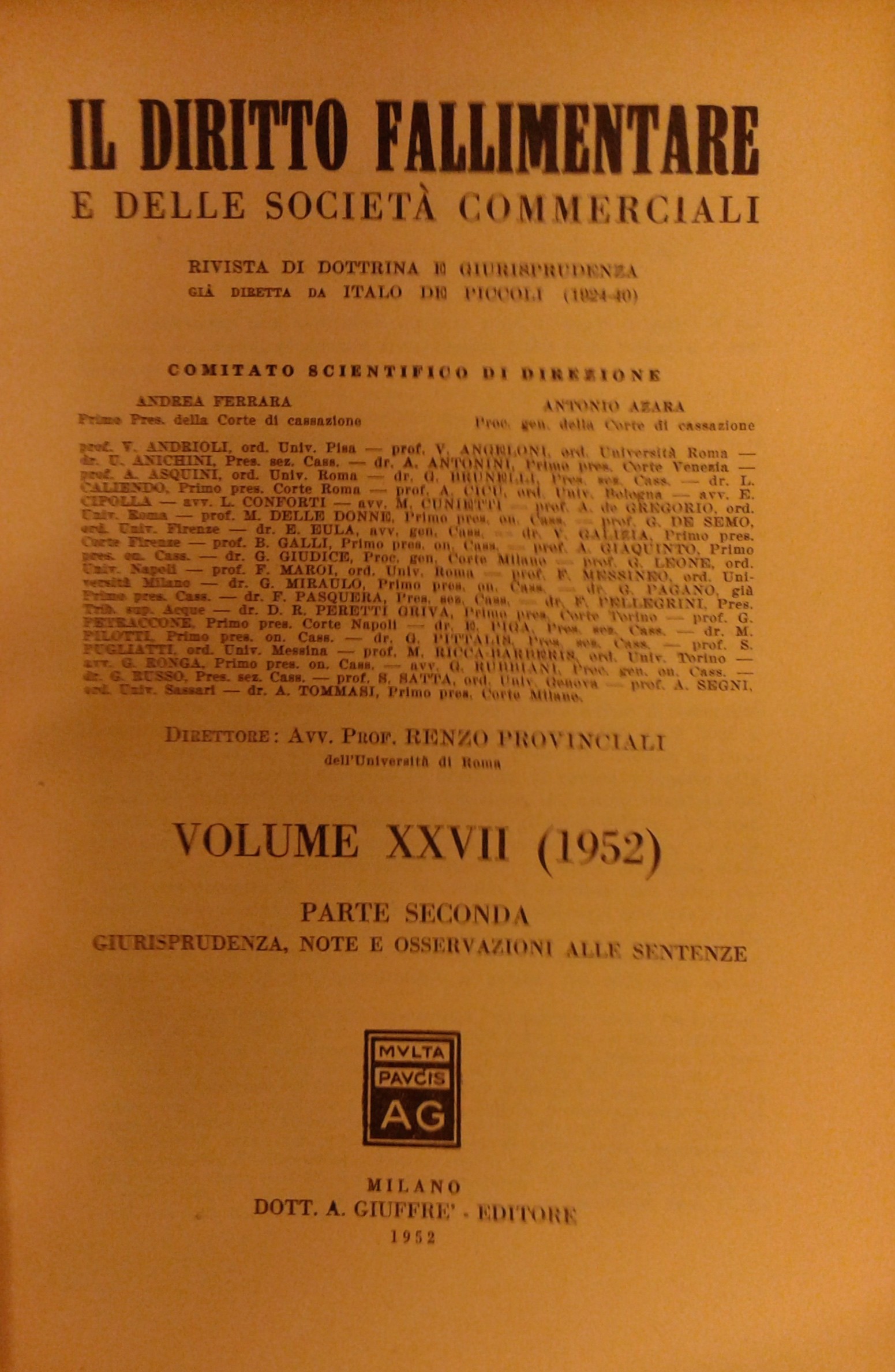 Il Diritto Fallimentare e delle società commerciali. Rivista di dottrina e giurisprudenza (già diretta da Italo De Piccoli 1924-1940). Vol. XXVII - 1952. Diretta da Renzo Provinciali