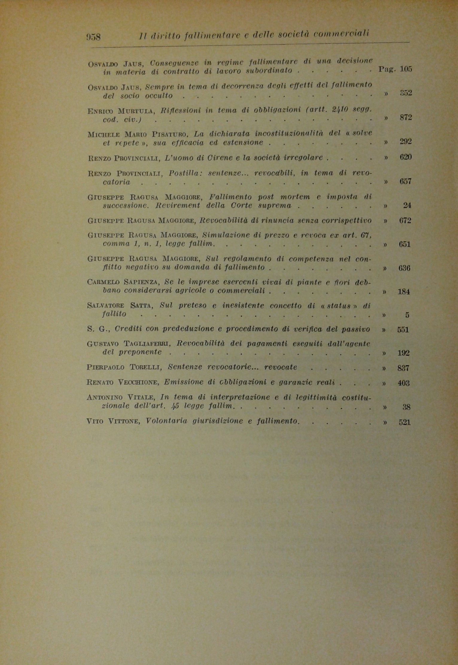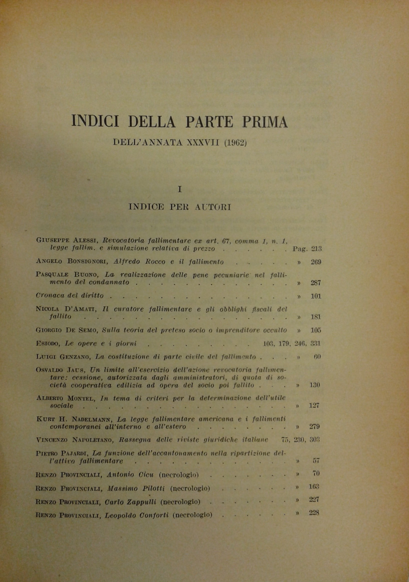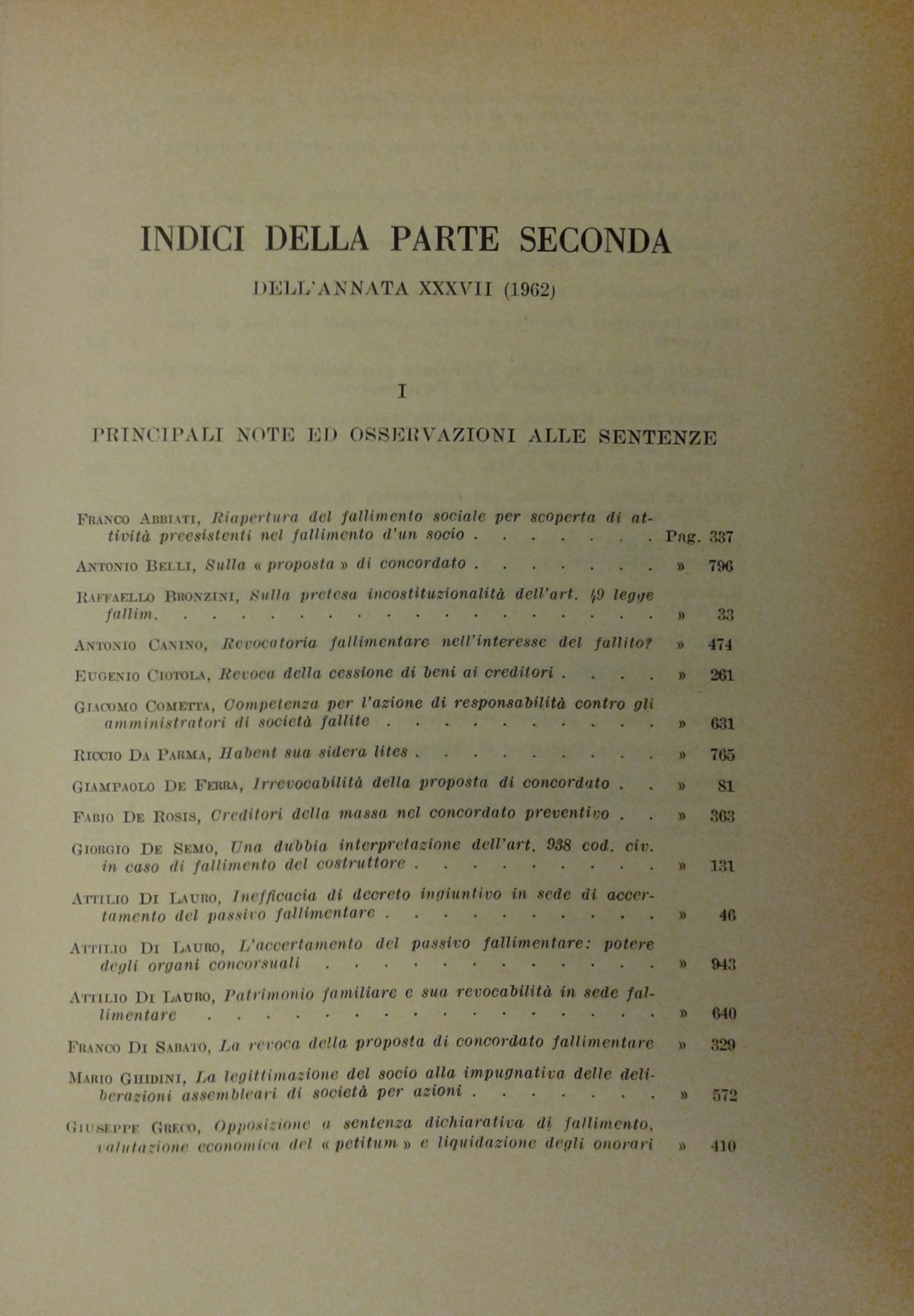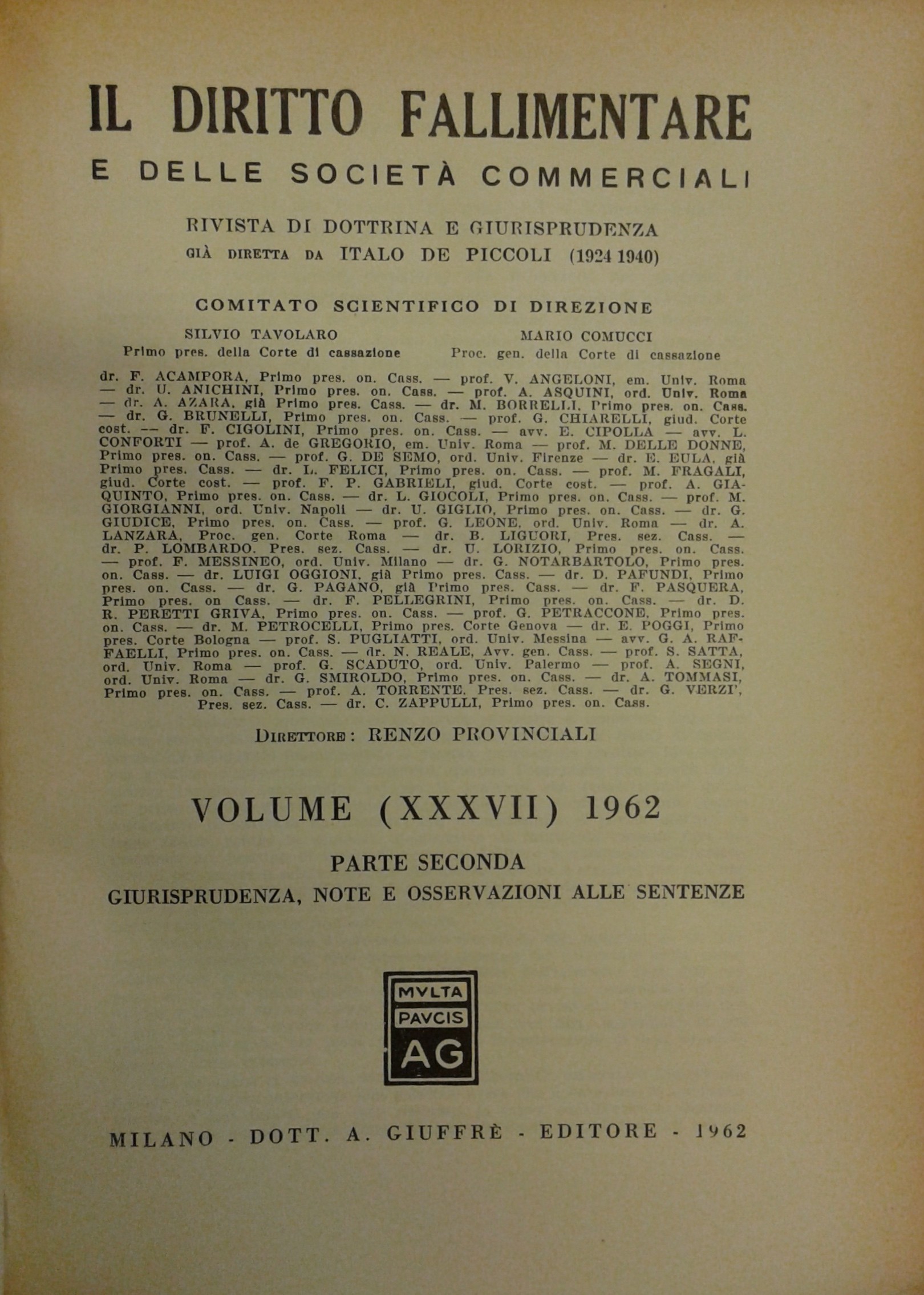 Il Diritto Fallimentare e delle società commerciali. Rivista di dottrina e giurisprudenza (già diretta da Italo De Piccoli 1924-1940). Vol. XXXVII - 1962. Diretta da Renzo Provinciali