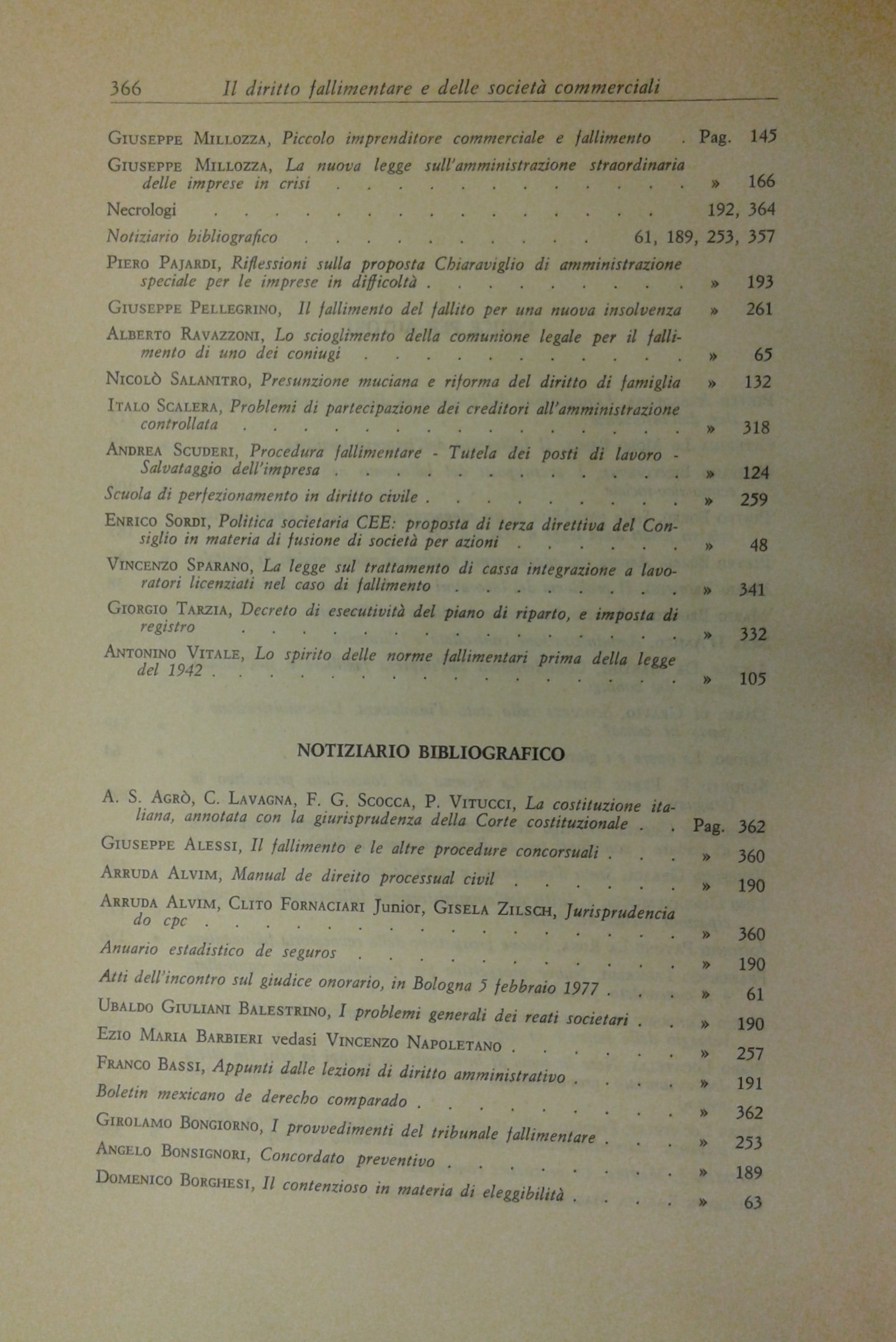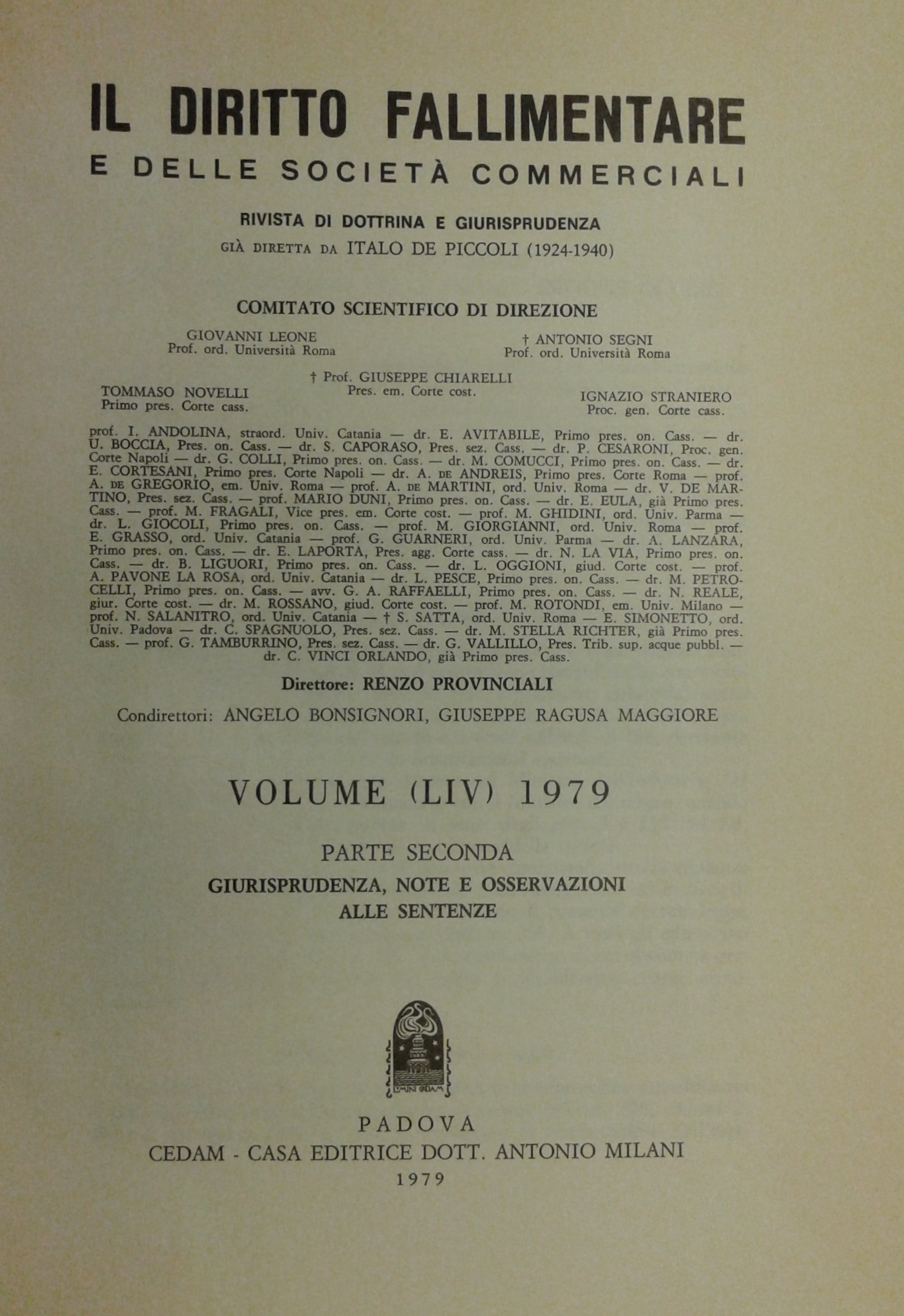 Il Diritto Fallimentare e delle società commerciali. Rivista di dottrina e giurisprudenza (già diretta da Italo De Piccoli 1924-1940). Vol. LIV - 1979. Diretta da Renzo Provinciali. Condirettori: Angelo Bonsignori, Giuseppe Ragusa Maggiore