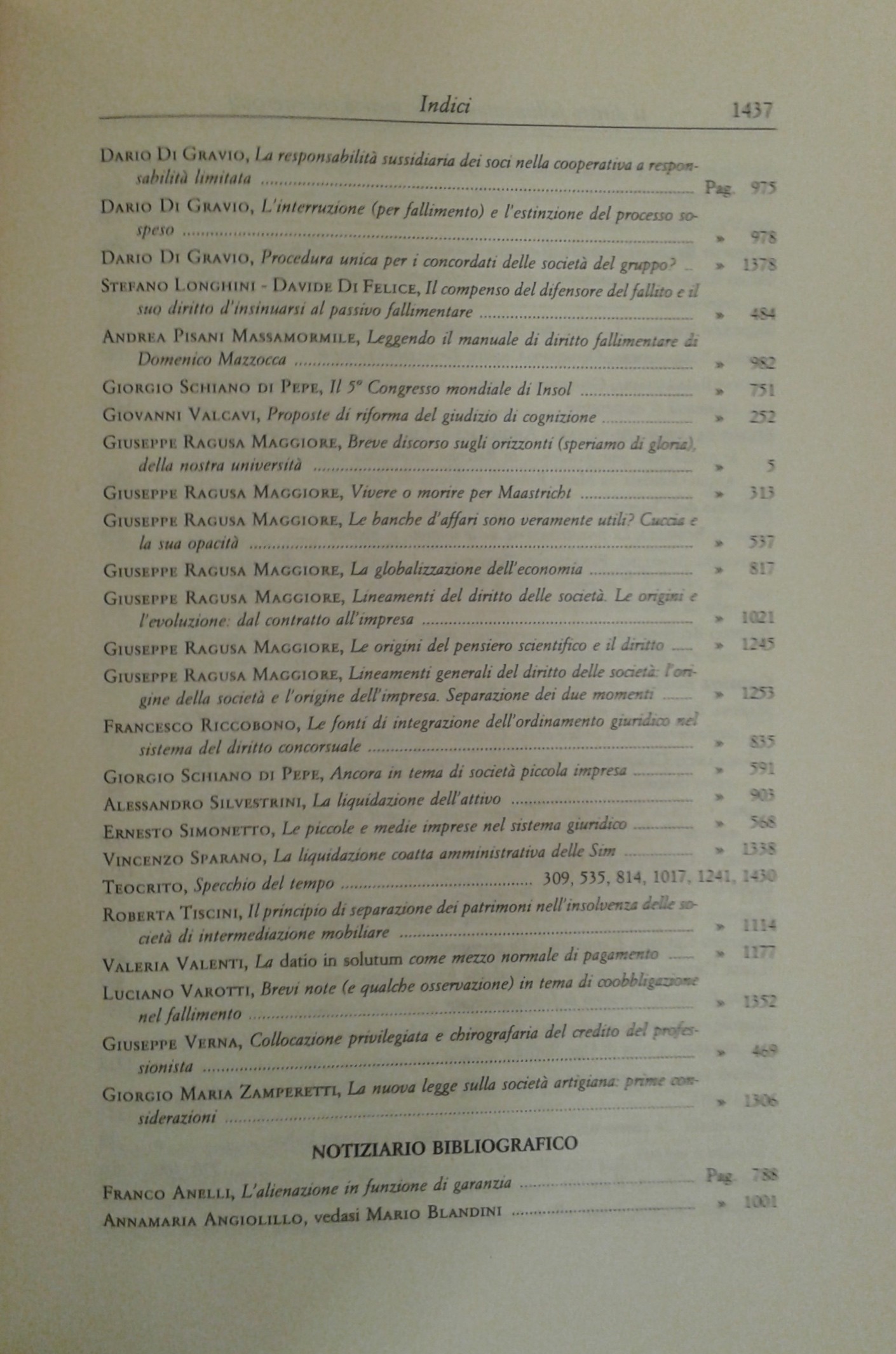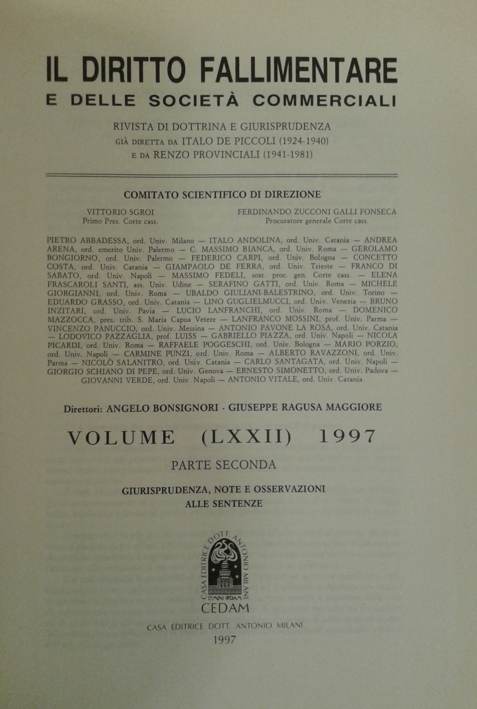 Il Diritto Fallimentare e delle società commerciali. Rivista di dottrina e giurisprudenza (già diretta da Italo De Piccoli 1924-1940 e Renzo Provinciali 1941-1981). Vol. LXXII - 1997. Diretta da Angelo Bonsignori, Giuseppe Ragusa Maggiore
