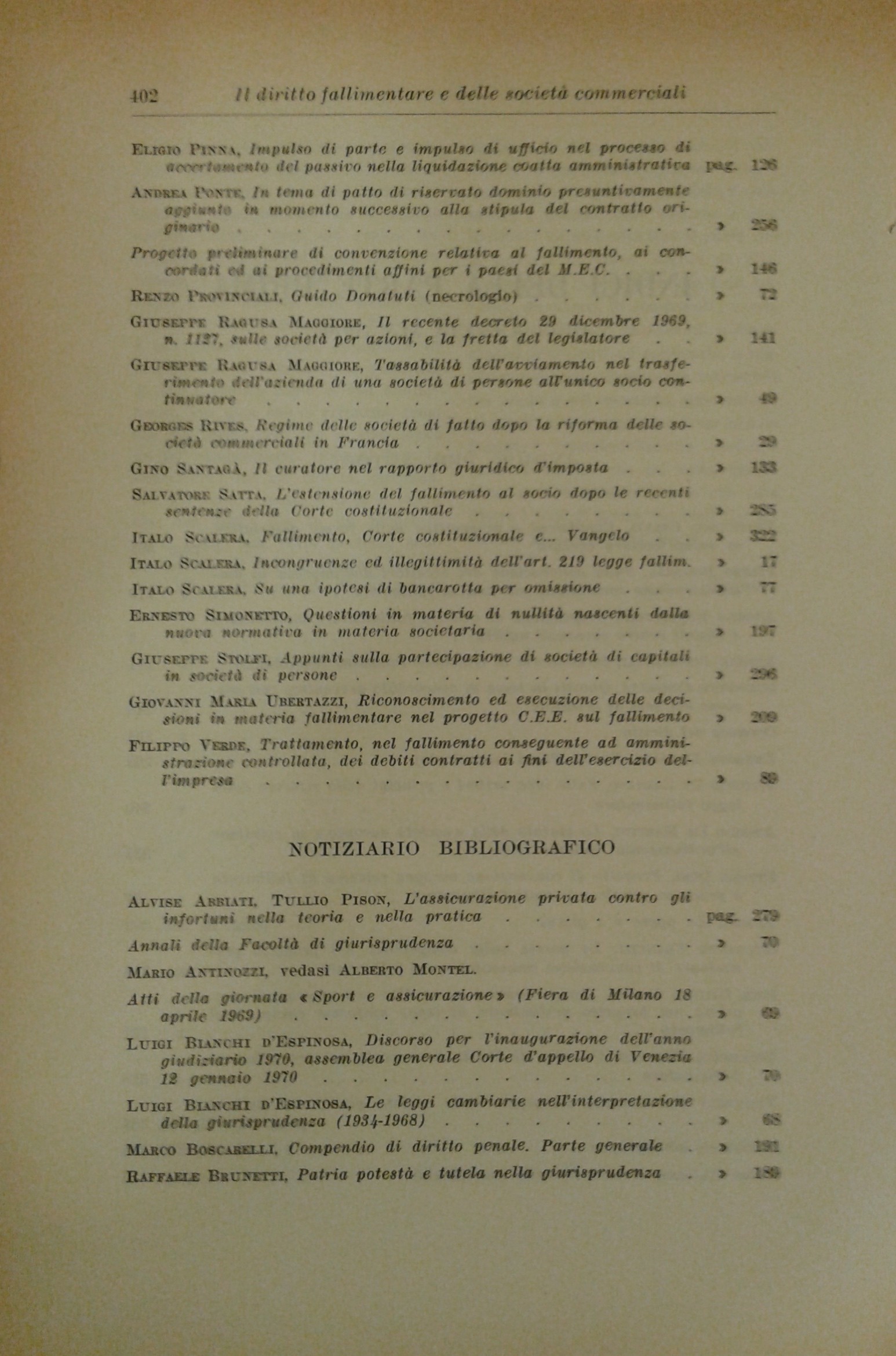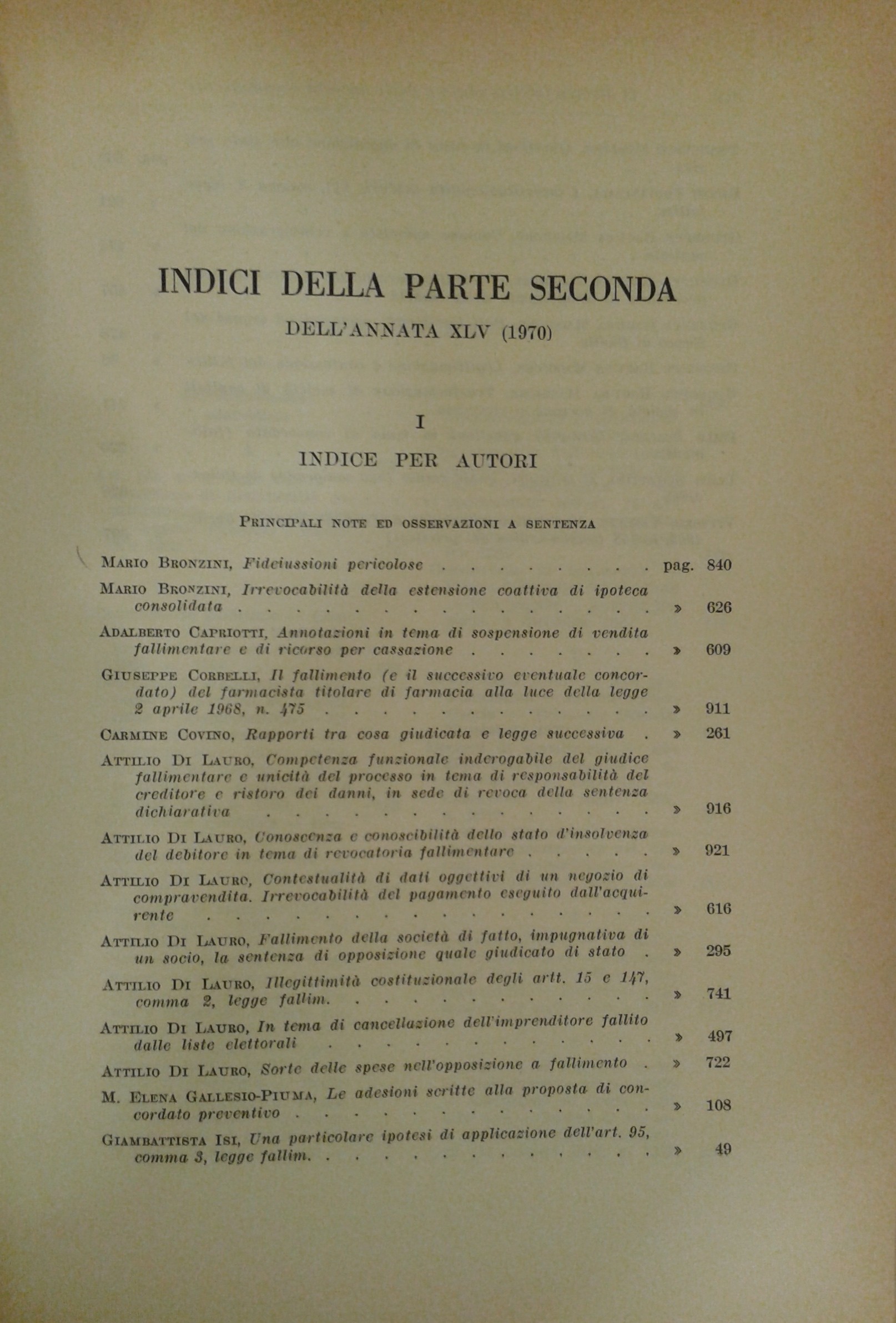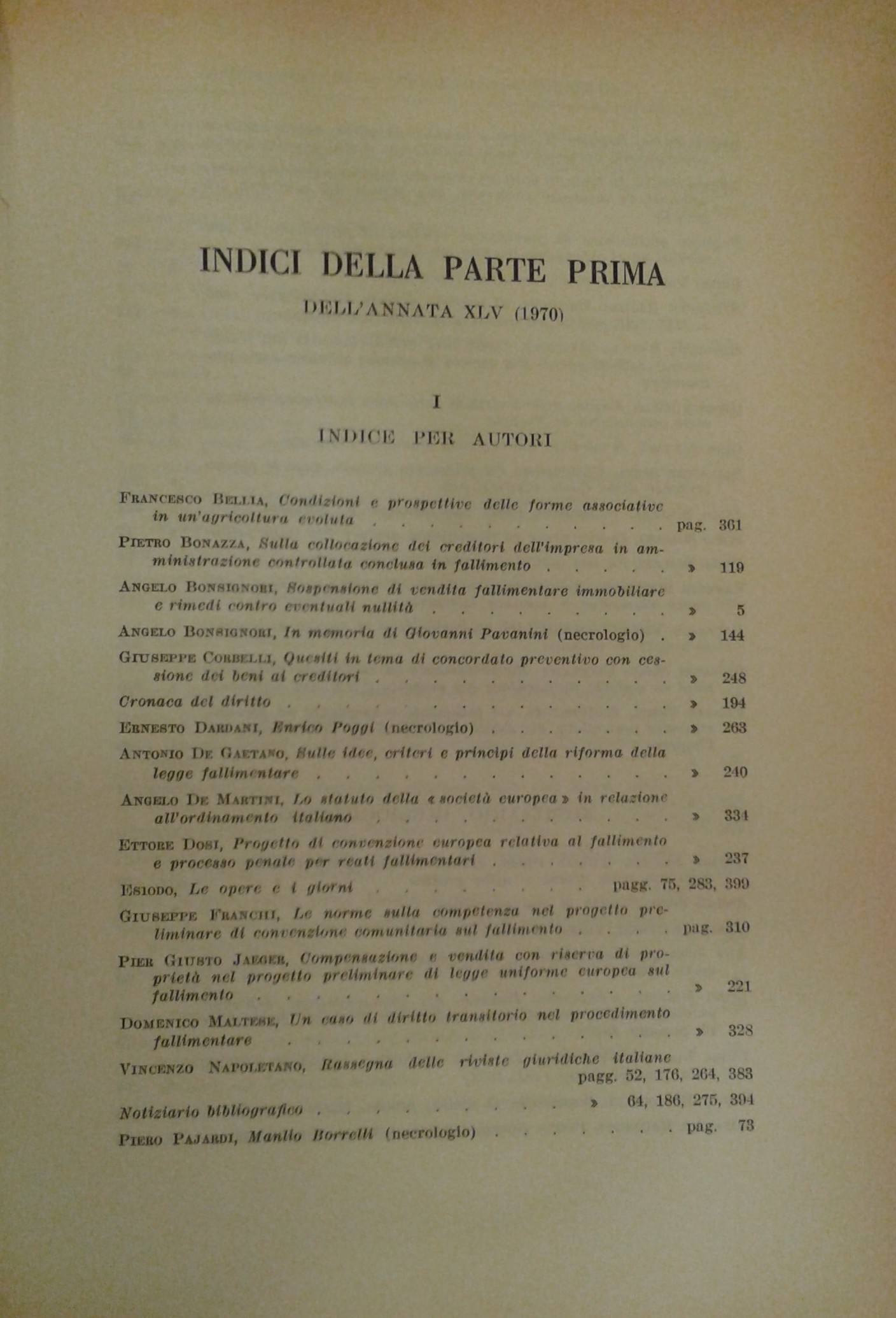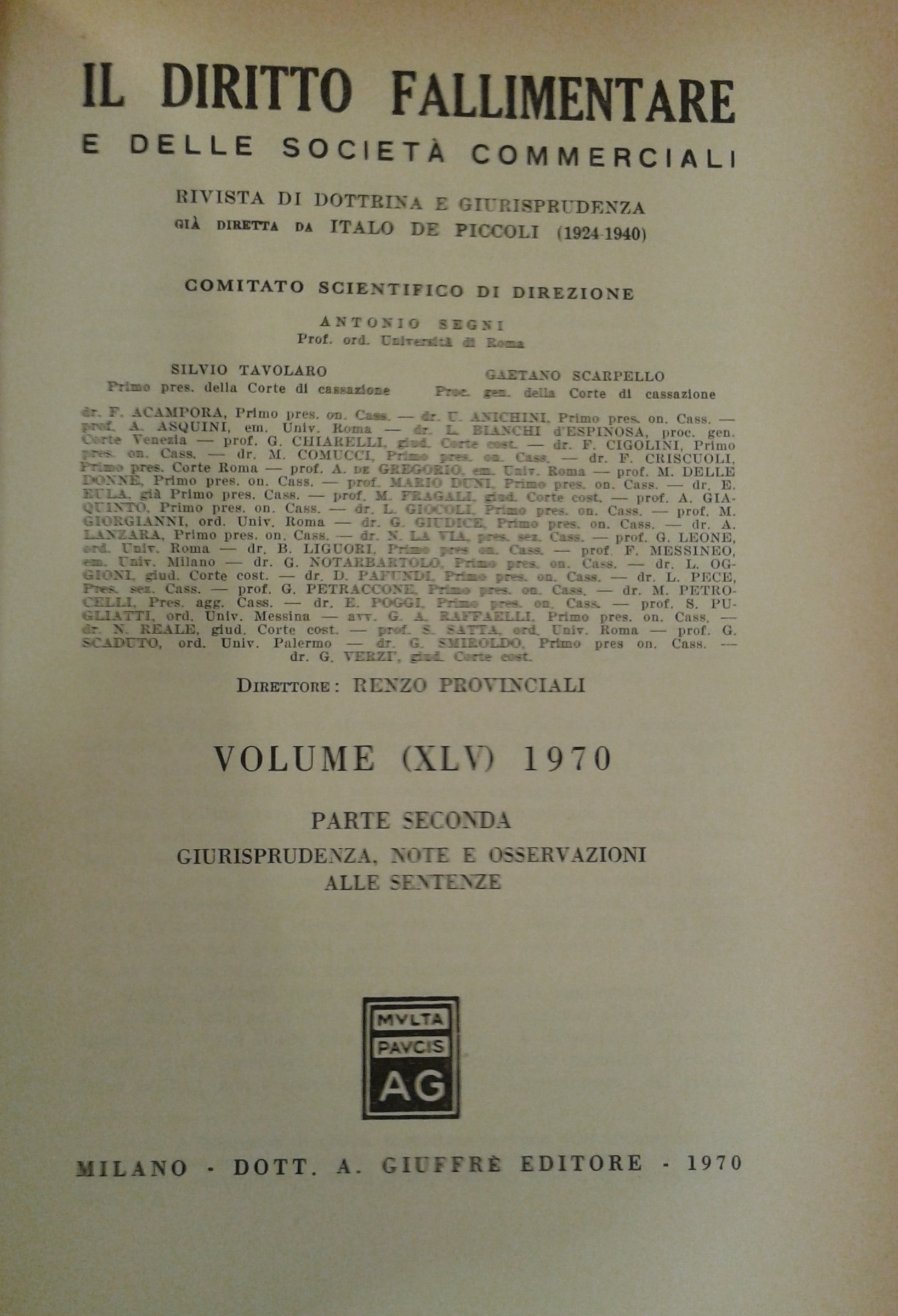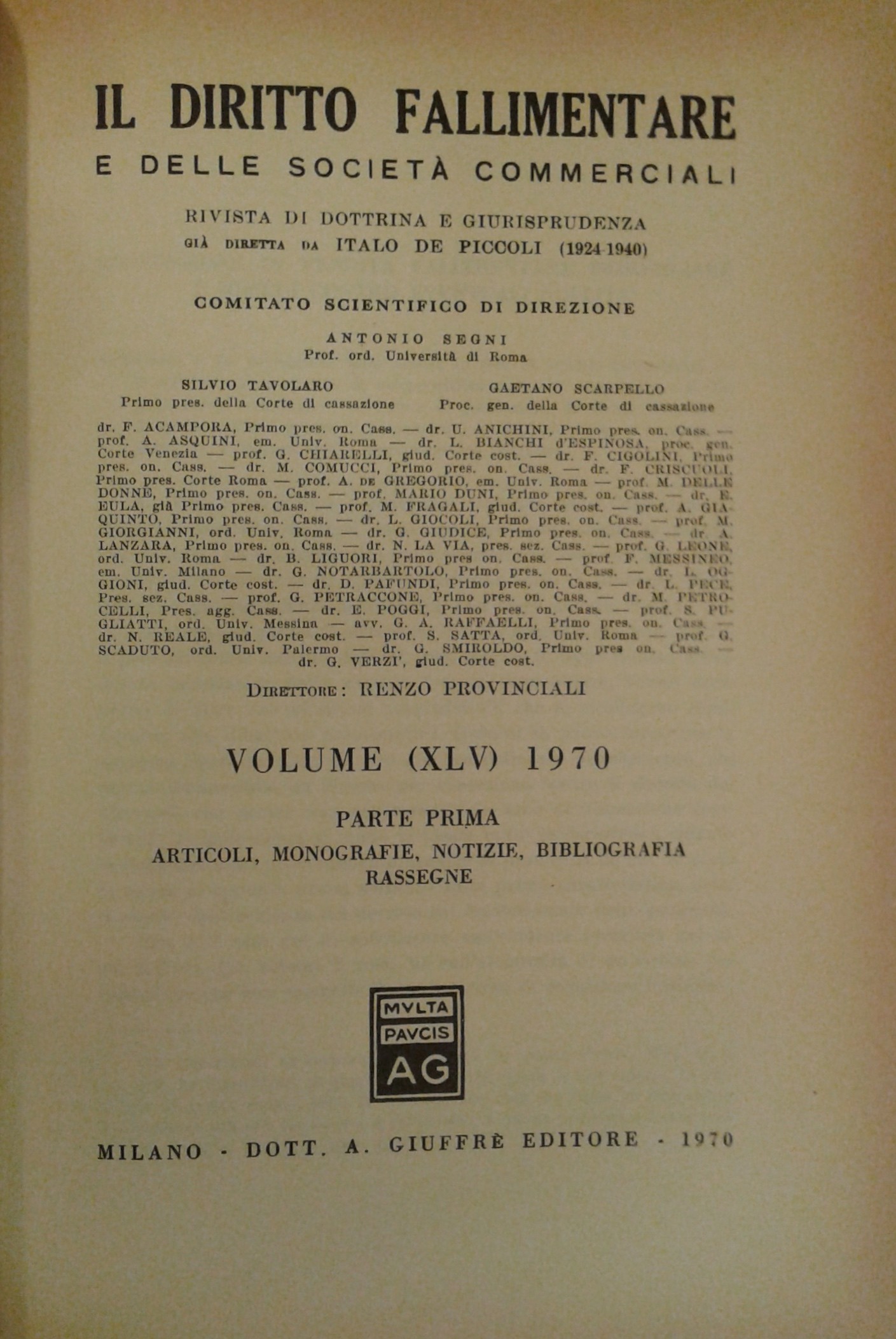 Il Diritto Fallimentare e delle società commerciali. Rivista di dottrina e giurisprudenza (già diretta da Italo De Piccoli 1924-1940). Vol. XLV - 1970. Diretta da Renzo Provinciali