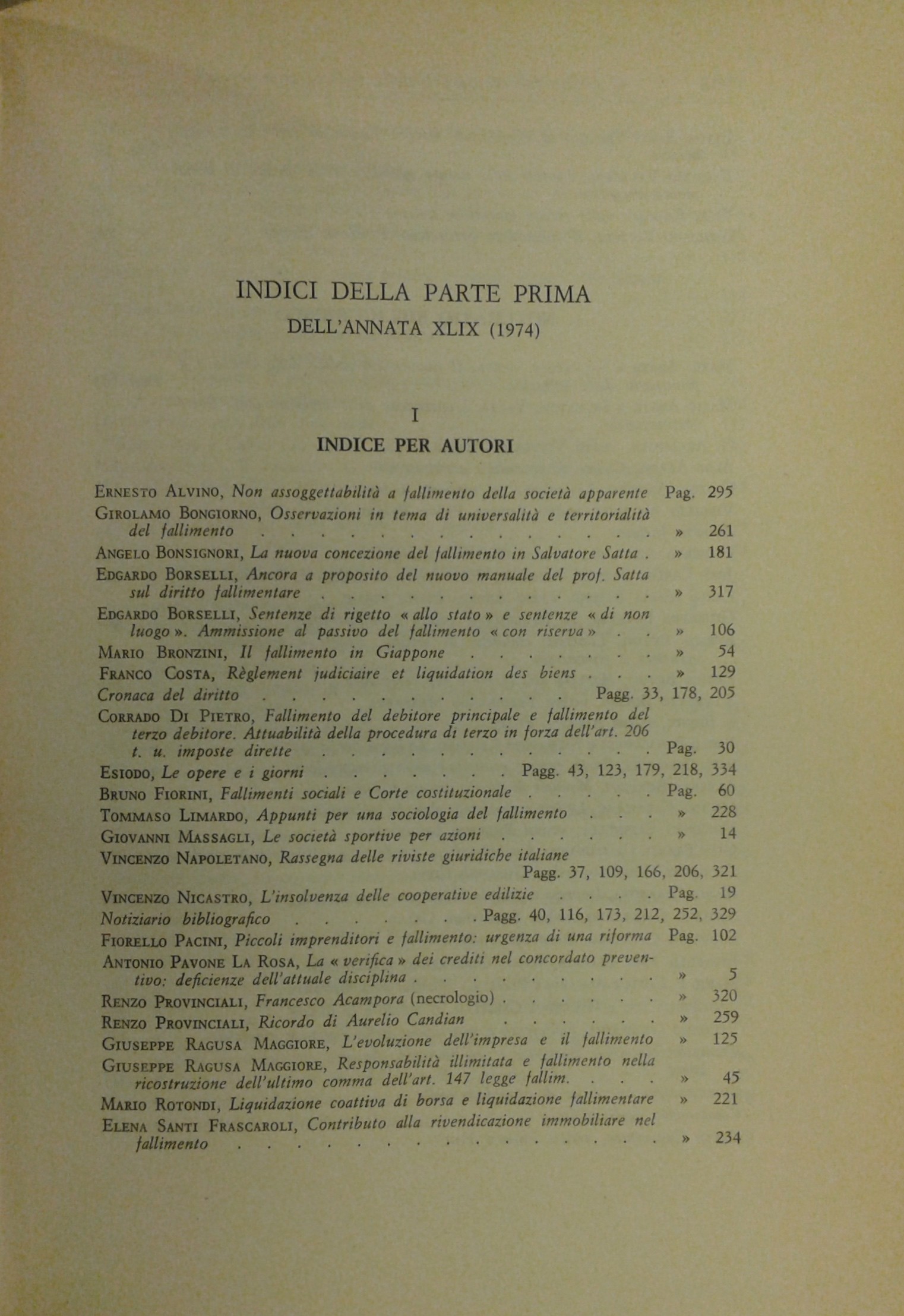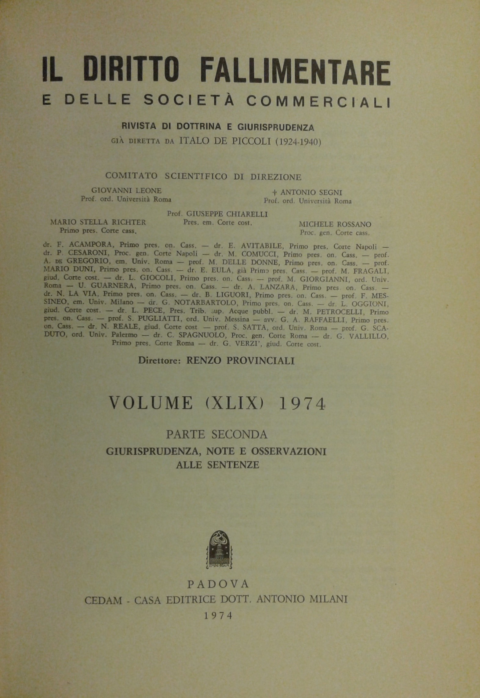 Il Diritto Fallimentare e delle società commerciali. Rivista di dottrina e giurisprudenza (già diretta da Italo De Piccoli 1924-1940). Vol. XLIX - 1974. Diretta da Renzo Provinciali