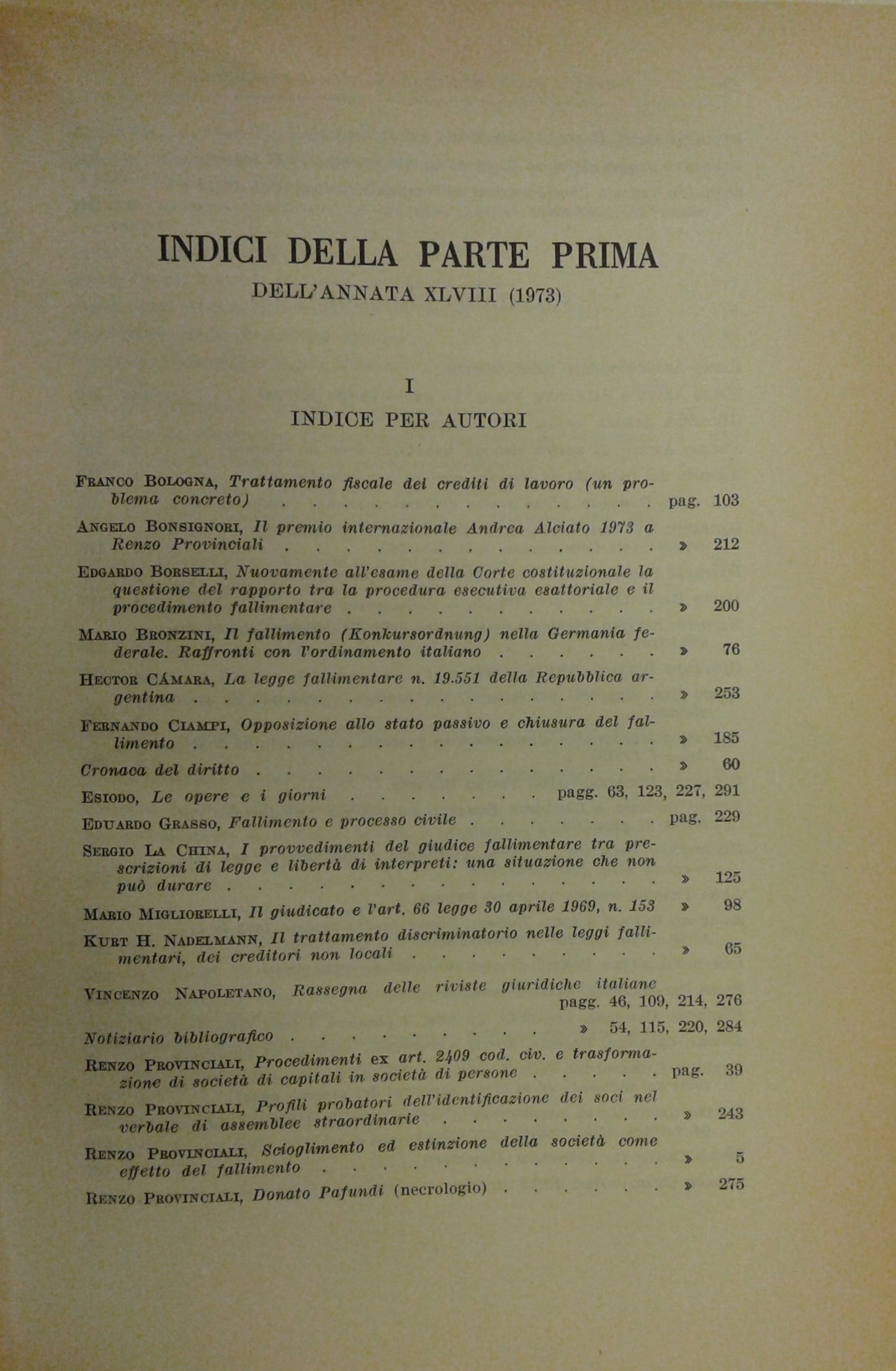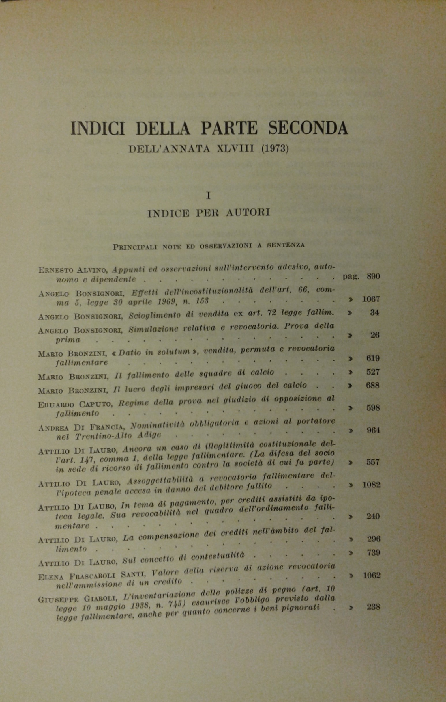 Il Diritto Fallimentare e delle società commerciali. Rivista di dottrina e giurisprudenza (già diretta da Italo De Piccoli 1924-1940). Vol. XLVIII - 1973. Diretta da Renzo Provinciali