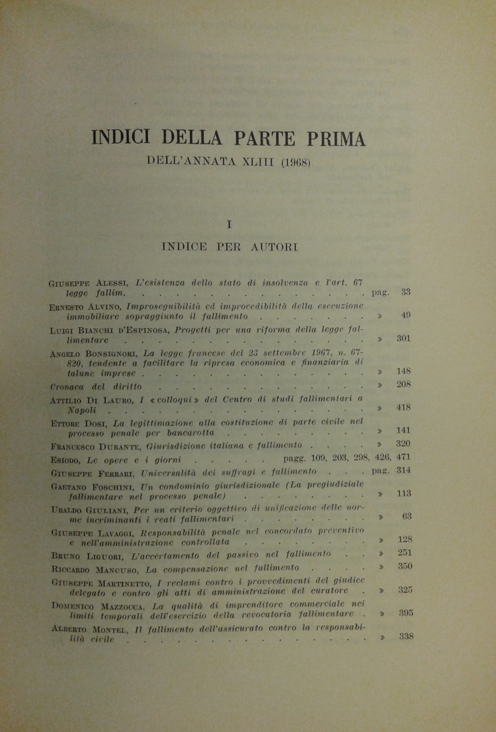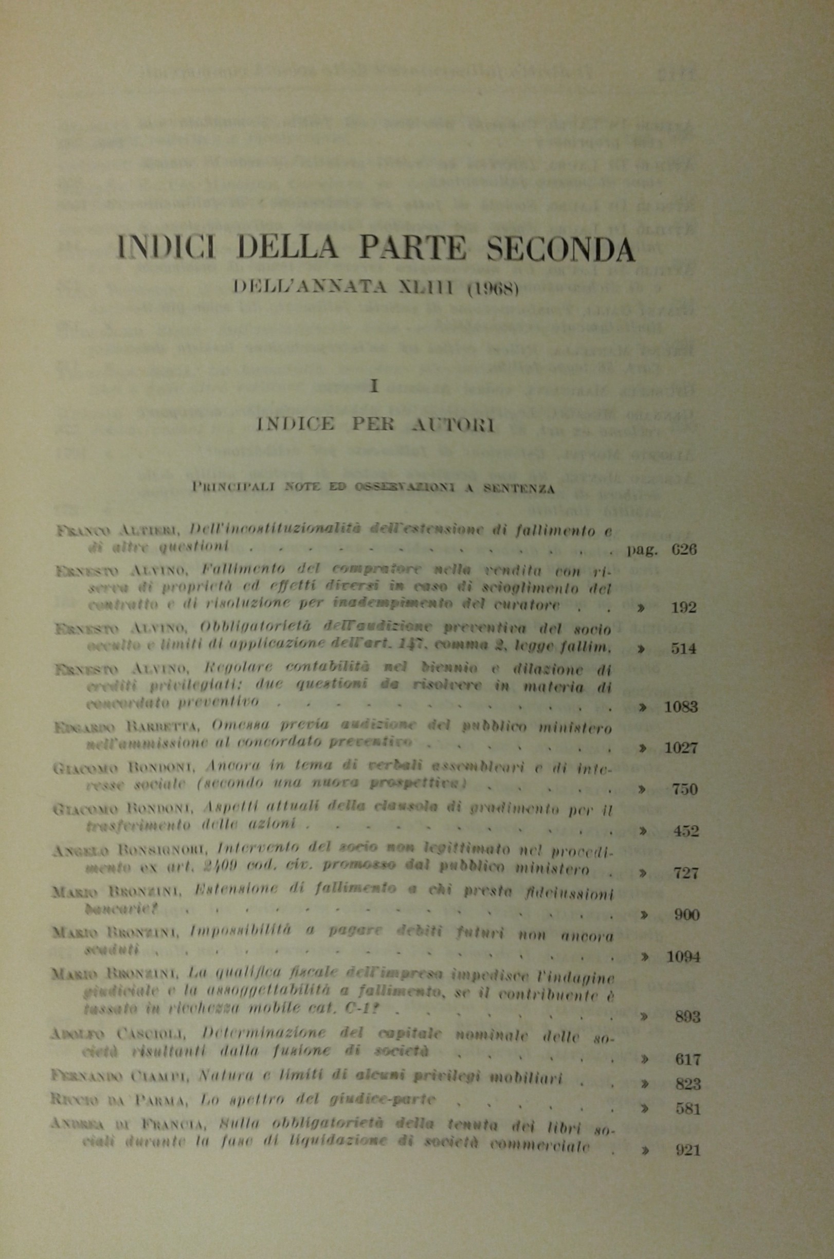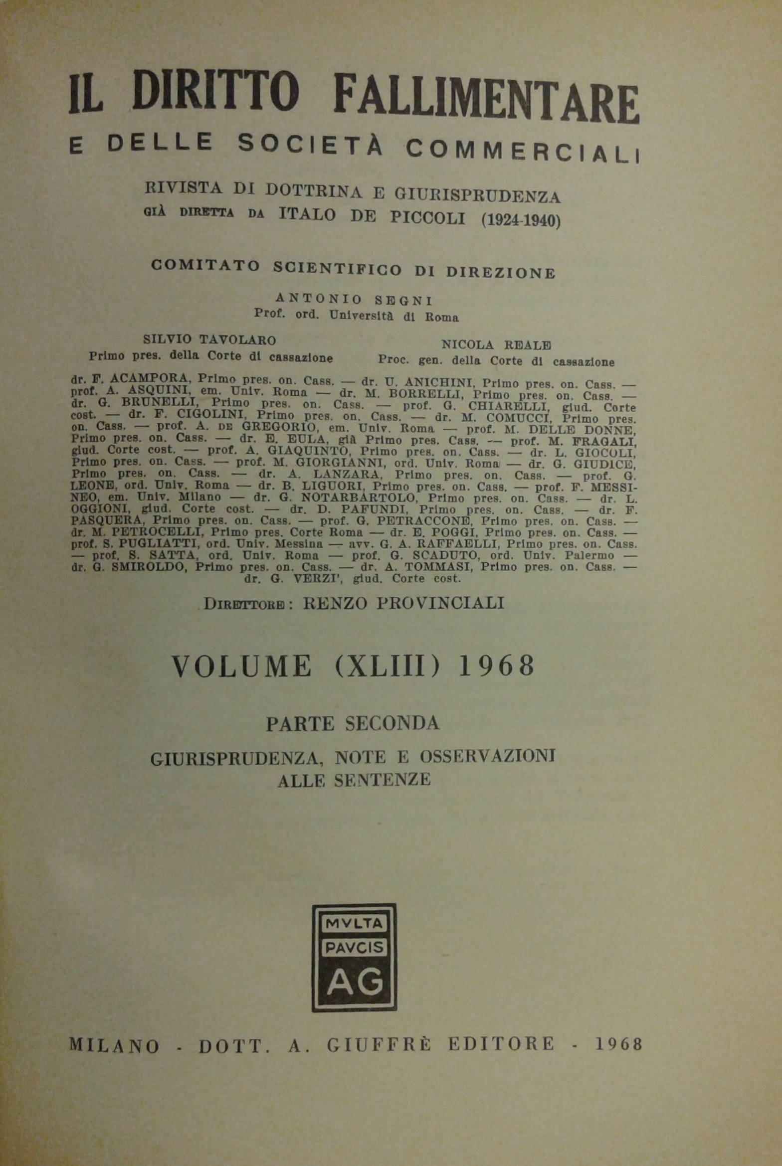 Il Diritto Fallimentare e delle società commerciali. Rivista di dottrina e giurisprudenza (già diretta da Italo De Piccoli 1924-1940). Vol. XLIII - 1968. Diretta da Renzo Provinciali