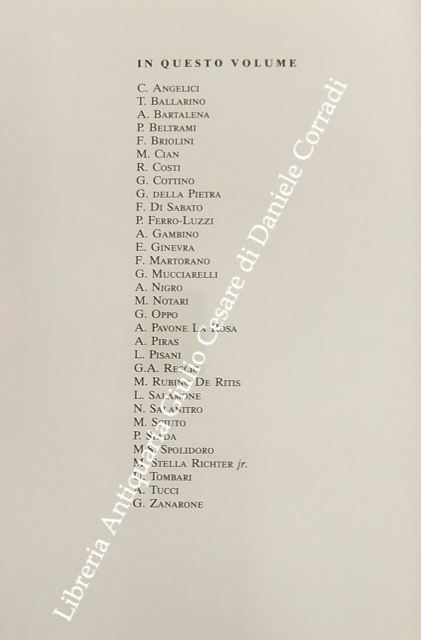 Nel primo volume scritti di: Angelici, Ballarino, Bartalena, Beltrami, Briolini, Cian, Costi, Cottino, Della Pietra, Di Sabato, Ferro Luzzi, Gambino, Ginevra, Martorano, Mucciarelli, Nigro, Notari, Oppo, Pavone La Rosa, Piras, Pisani, Rescio, Rubino De Ritis, Salamone, Salanitro, Svciuto, Spada, Spolidoro, Stella Richter jr., Tombari, Tucci, Zanarone. Nel secondo volume scritti di: Abbadessa, Barachini, Calandra Buonaura, Cariello, Centonze, Enriques, Genovese, Guerrera, Lener, Meo, Minervini, Montalenti, Mosca, Mucciarelli, Pinto, Pisani Massamormile, Portale, Regoli, Sacchi, Sanfilippo, Santosuosso, Scala, Schiuma, Serra, Stagno D'Alcontres. Nel terzo volume scritti di: Ambrosini, Bione, Bussoletti, Buta, Campobasso, Cavalli, Colombo, Dacco, Di Cataldo, Ferrarini, Fortunato, Giannelli, Jorio, Libonati, Marasa, Meli, Mirone, Nobili, Olivieri, Pennisi, Perrino, Piscitello, Rivolta, Santagata, Santoni, Scognamiglio, Speranzin, Terranova, Teti, Valzer, Vigo, Weigmann. Nel quarto scritti di: Bassi, Belviso, Benedettelli, Bianchi, Buonocore, Calvosa, Cetra, Costa, De Luca, De Stasio, Di Rienzo, Dolmetta, Ferri jr., Fierro, Giorgi, Guizzi, Hirte, Ibba, Iermano, La Sala, Lamandini, Libertini, Lubrano Di Scorpaniello, Lucarelli, Marano, Masi, Mazzoni, Niccolini, Palmieri, Porzio, Presti, Rescigno, Rojo, Santagata, Turelli, Vella, Vicari, Zoppini.