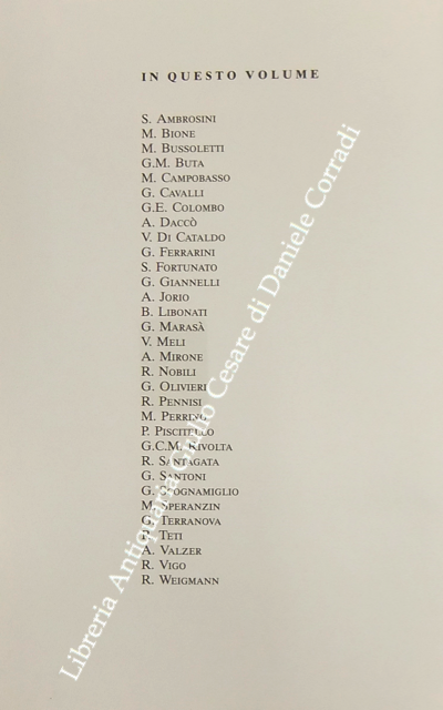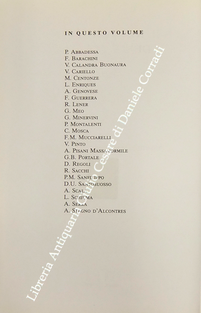 Nel primo volume scritti di: Angelici, Ballarino, Bartalena, Beltrami, Briolini, Cian, Costi, Cottino, Della Pietra, Di Sabato, Ferro Luzzi, Gambino, Ginevra, Martorano, Mucciarelli, Nigro, Notari, Oppo, Pavone La Rosa, Piras, Pisani, Rescio, Rubino De Ritis, Salamone, Salanitro, Svciuto, Spada, Spolidoro, Stella Richter jr., Tombari, Tucci, Zanarone. Nel secondo volume scritti di: Abbadessa, Barachini, Calandra Buonaura, Cariello, Centonze, Enriques, Genovese, Guerrera, Lener, Meo, Minervini, Montalenti, Mosca, Mucciarelli, Pinto, Pisani Massamormile, Portale, Regoli, Sacchi, Sanfilippo, Santosuosso, Scala, Schiuma, Serra, Stagno D’Alcontres. Nel terzo volume scritti di: Ambrosini, Bione, Bussoletti, Buta, Campobasso, Cavalli, Colombo, Dacco, Di Cataldo, Ferrarini, Fortunato, Giannelli, Jorio, Libonati, Marasa, Meli, Mirone, Nobili, Olivieri, Pennisi, Perrino, Piscitello, Rivolta, Santagata, Santoni, Scognamiglio, Speranzin, Terranova, Teti, Valzer, Vigo, Weigmann. Nel quarto scritti di: Bassi, Belviso, Benedettelli, Bianchi, Buonocore, Calvosa, Cetra, Costa, De Luca, De Stasio, Di Rienzo, Dolmetta, Ferri jr., Fierro, Giorgi, Guizzi, Hirte, Ibba, Iermano, La Sala, Lamandini, Libertini, Lubrano Di Scorpaniello, Lucarelli, Marano, Masi, Mazzoni, Niccolini, Palmieri, Porzio, Presti, Rescigno, Rojo, Santagata, Turelli, Vella, Vicari, Zoppini.