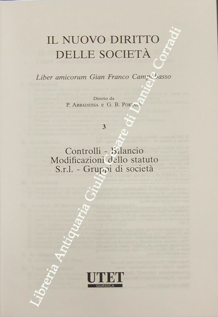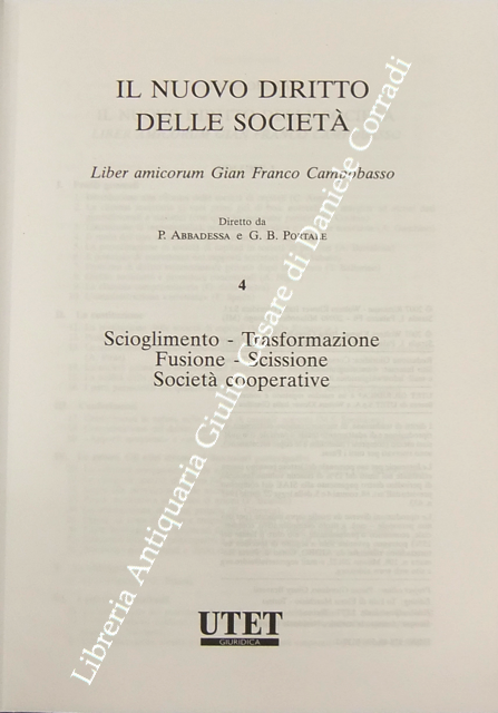 Il nuovo diritto delle società . Liber amicorum Gian Franco Campobasso. Vol. I - Profili generali; Costituzione; Conferimenti; Azioni; Obbligazioni; Patrimoni destinati. Vol. II - Assemblea; Amministrazione. Vol. III - Controlli; Bilancio; Modificazioni dello statuto; S.r.l.; Gruppi di società . Vol. IV - Scioglimento; Trasformazione; Fusione; Scissione; Societa cooperative