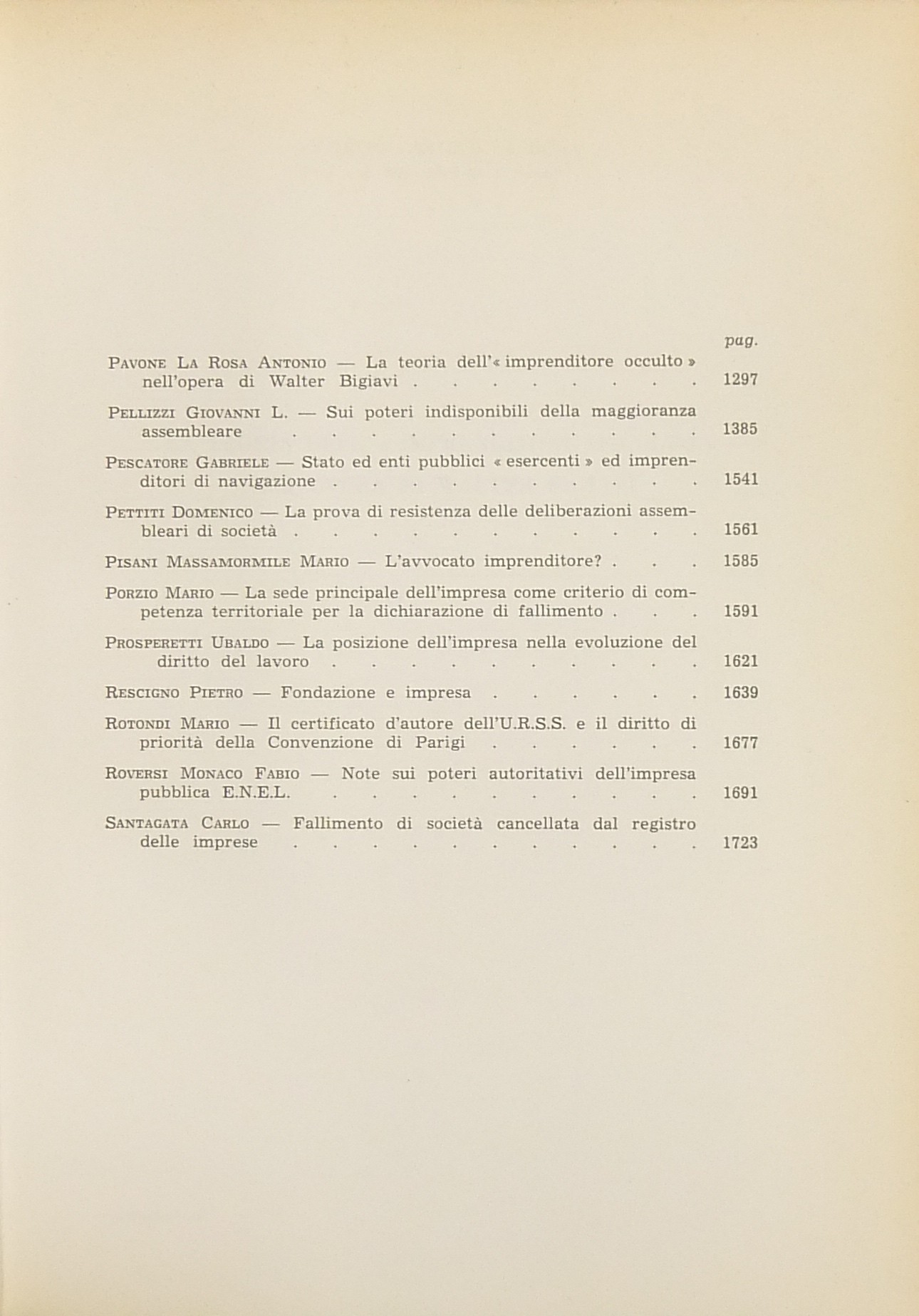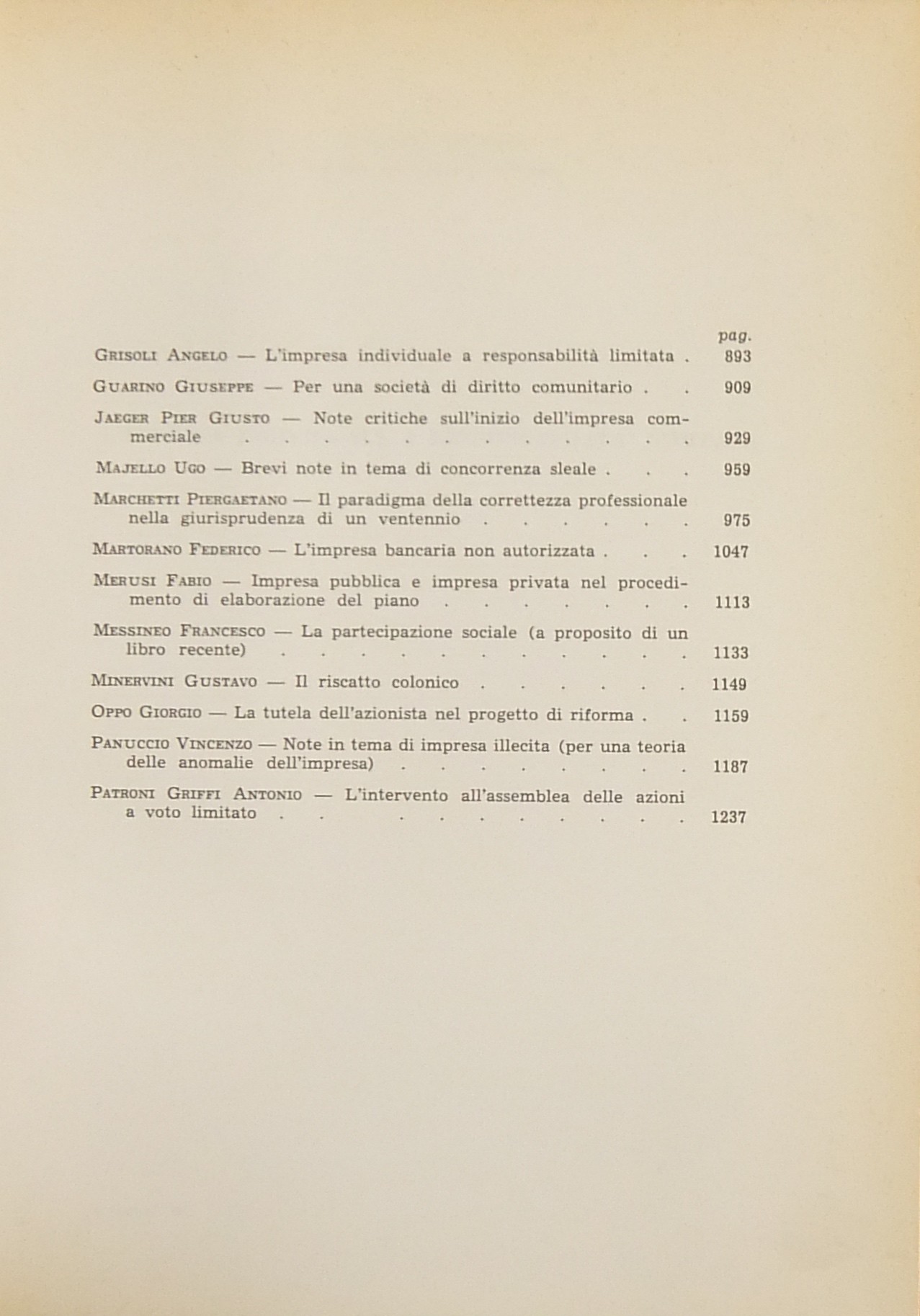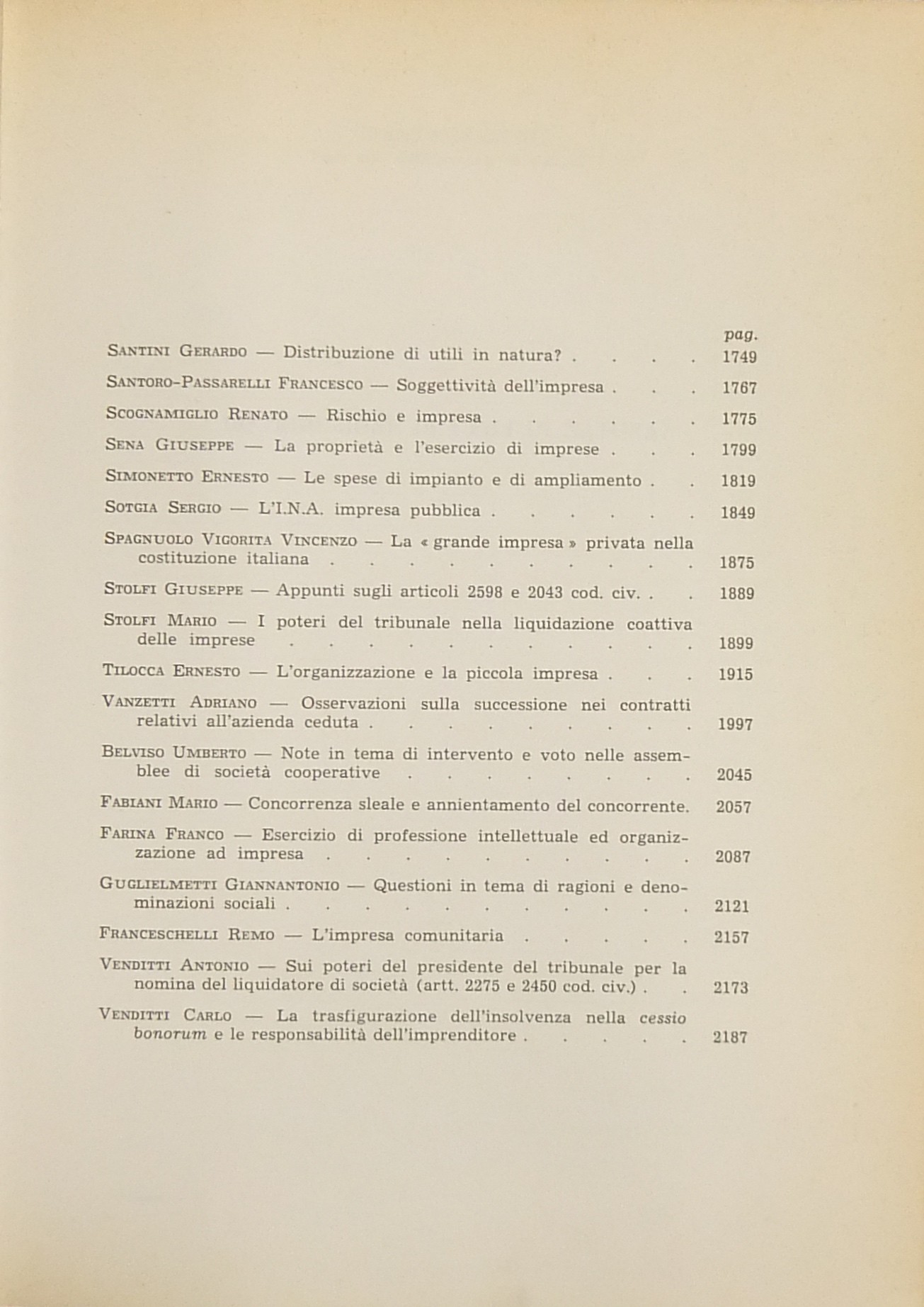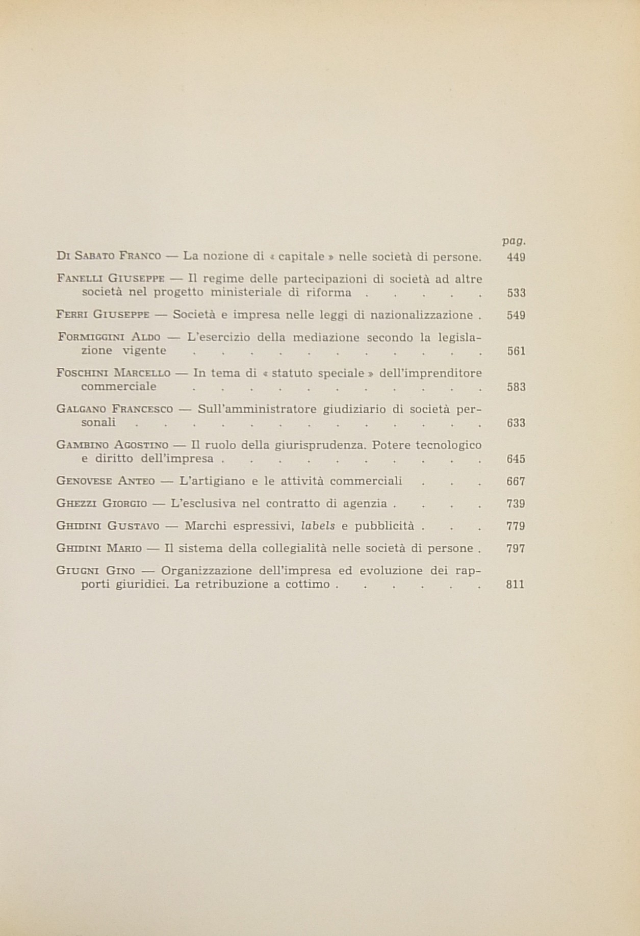 Ritratto fotografico di Alessandro Graziani a inizio opera. Scritti di: Amatucci, Arena, Asquini, Auletta, Belviso, Bigiavi, Bocchini, Bricola, Buonocore, Buttaro, Casanova, Cottino, Dalmartello, De Ferra, Di Sabato, Fabiani, Fanelli, Farina, Ferri G., Formiggini, Foschini, Franceschelli, Galgano, Gambino, Genovese, Ghezzi, Ghidini G., Ghidini M., Giugni, Grisoli, Guarino, Guglielmetti, Jaeger, Majello, Marchetti, Martorano, Merusi, Messineo, Minervini, Oppo, Panuccio, Patroni Griffi, Pavone La Rosa, Pellizzi, Pescatore, Pettiti, Pisani Massamormile, Porzio, Prosperetti, Rescigno, Rotondi, Roversi Monaco, Santagata, Santini, Santoro Passarelli, Scognamiglio, Sena, Simonetto, Sotgia, Spagnuolo Vigorita, Stolfi G., Stolfi M., Tilocca, Vanzetti, Venditti A., Venditti C.