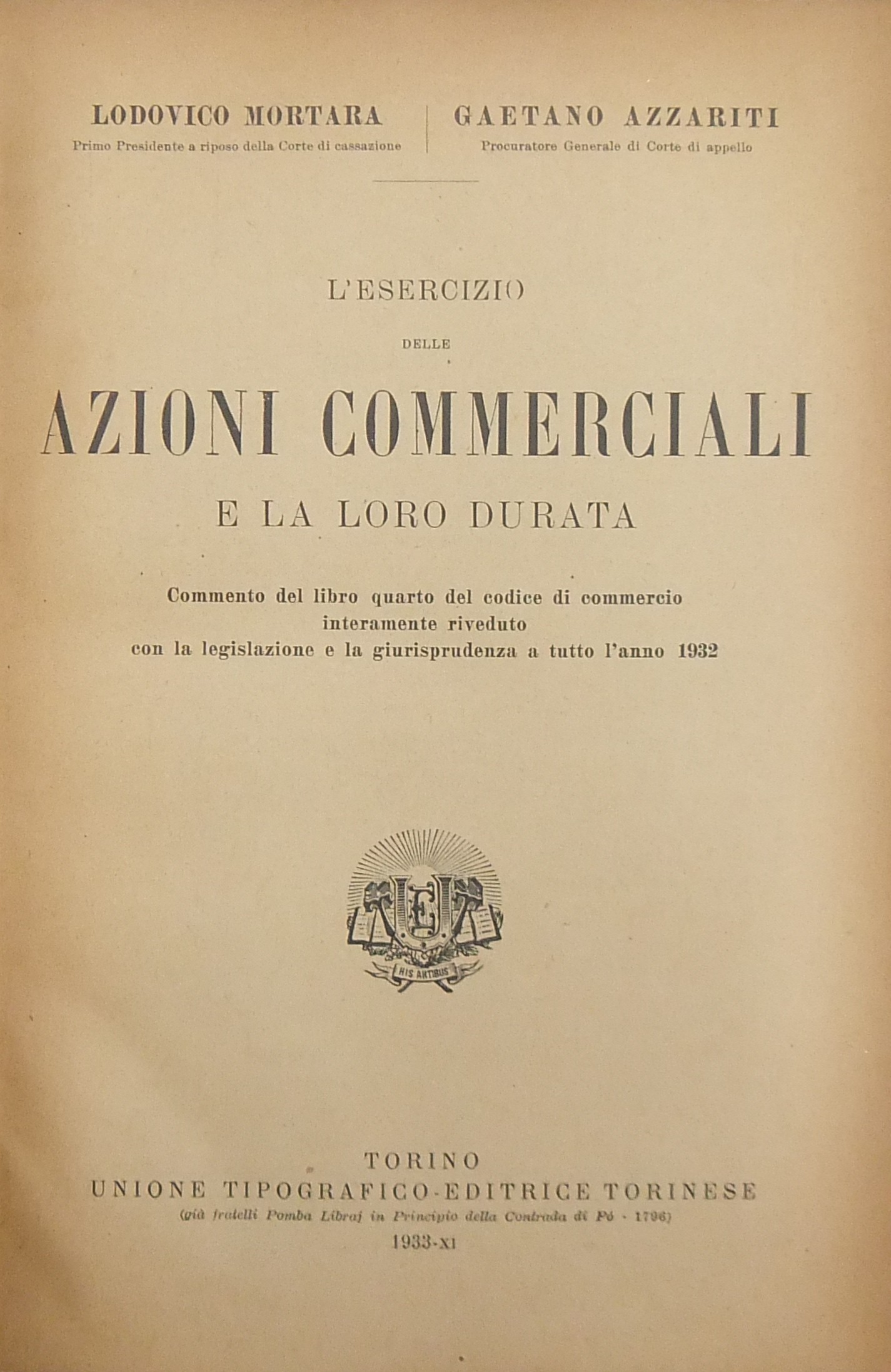 L'esercizio delle azioni commerciali e la loro durata. Commento al libro quarto del Codice di commercio interamente riveduto con la legislazione e la giurisprudenza a tutto l'anno 1932