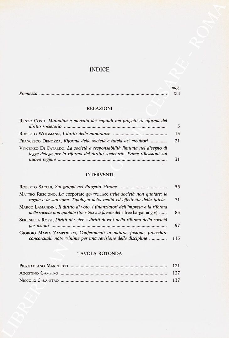 Scritti di: R. Costi, R. Weigmann, F. Denozza, V. Di Cataldo, R. Sacchi, M. Rescigno, M. Lamandini, S. Rossi, G.M. Zamperetti, P. Marchetti, A. GAmbino, N. Salanitro