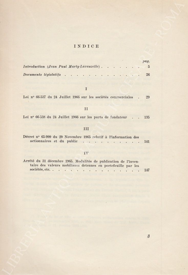 La legge francese sulle società commerciali. (LOI N. 66-537 du 24 Juillet 1966)