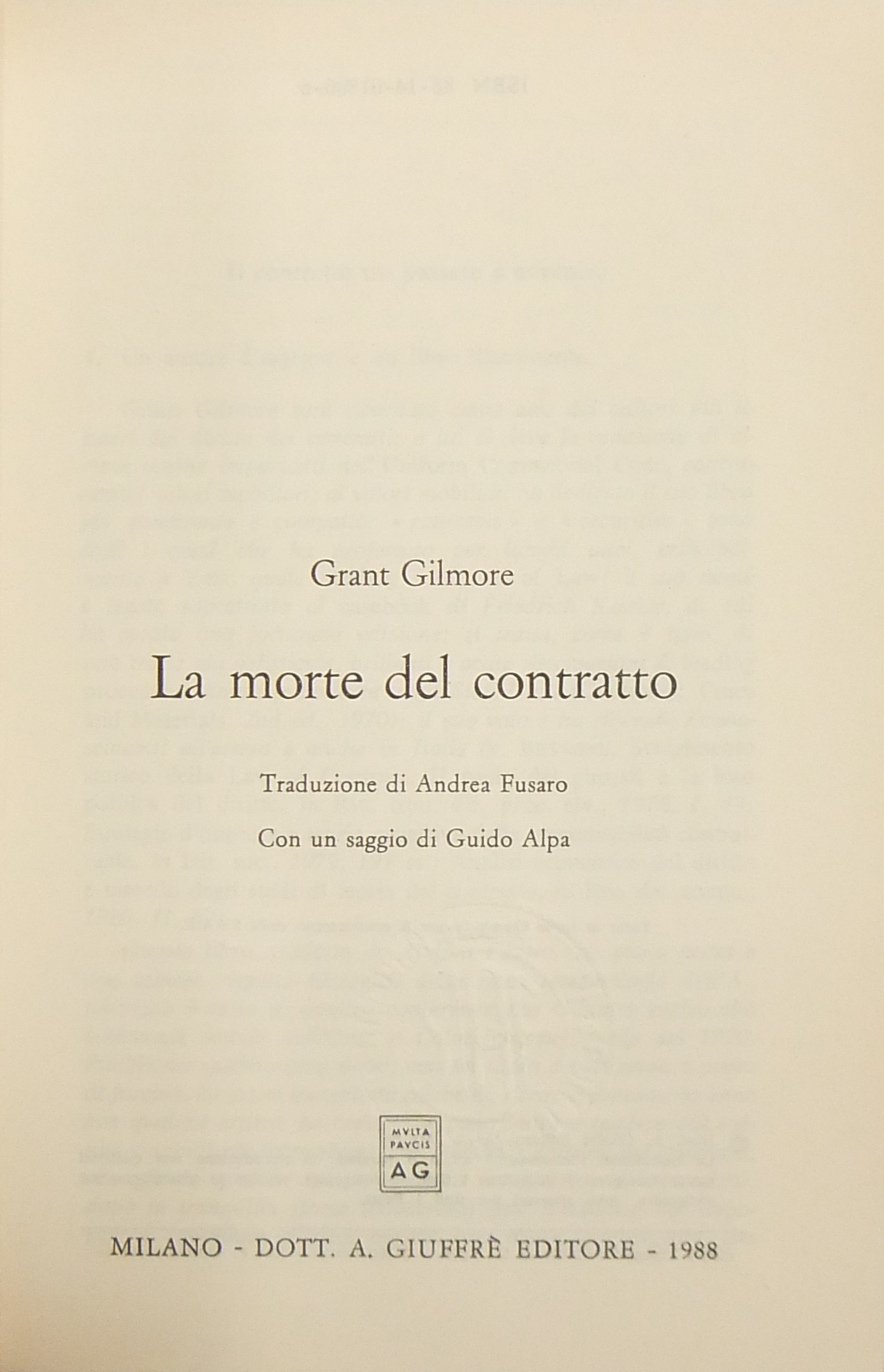 La morte del contratto. Traduzione di Andrea Fusaro. Con un saggio di Guido Alpa