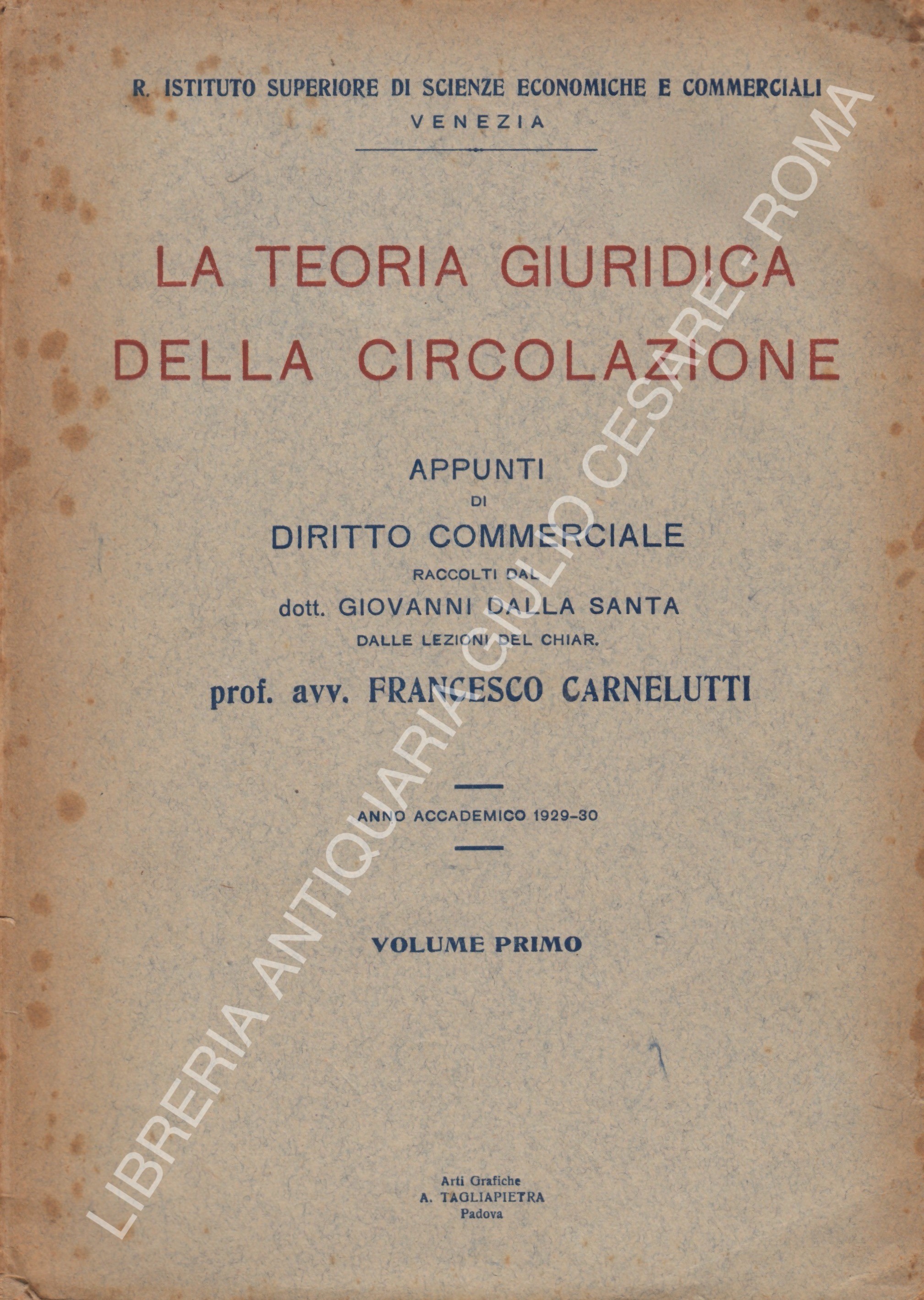 La teoria giuridica della circolazione. Appunti di diritto commerciale raccolti dal Dott. Giovanni Dalla Santa dalle lezioni del chiar. Prof. Avv. Francesco Carnelutti. Anno accademico 1929-30