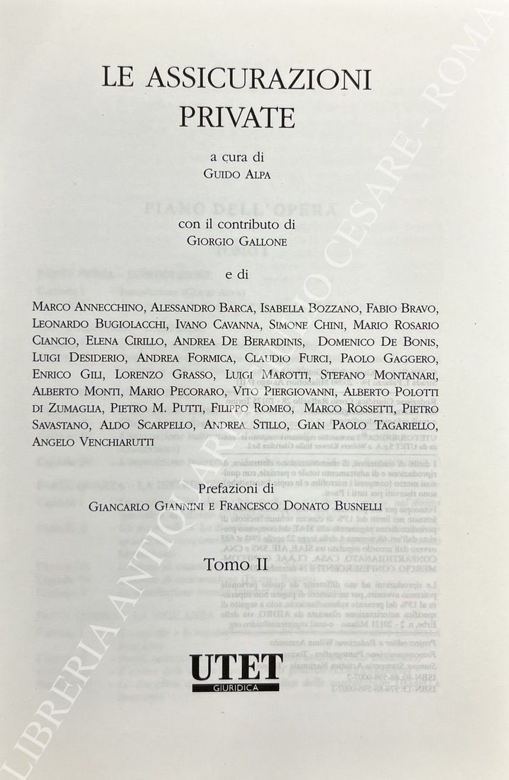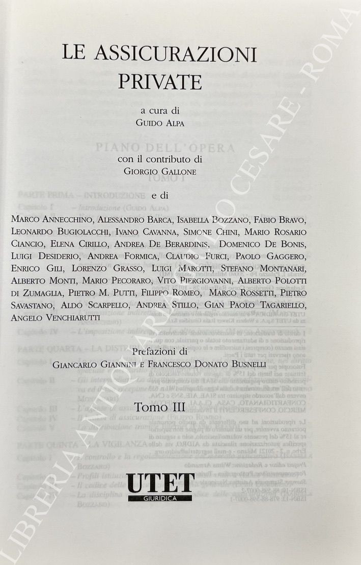 Le assicurazioni private. Con il contributo di Giorgio Gallone... Prefazioni di Giancarlo Giannini e Francesco Donato Busnelli