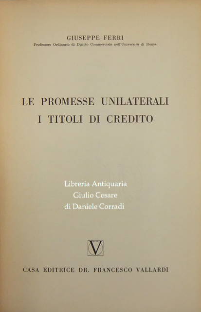 Le promesse unilaterali. I titoli di credito