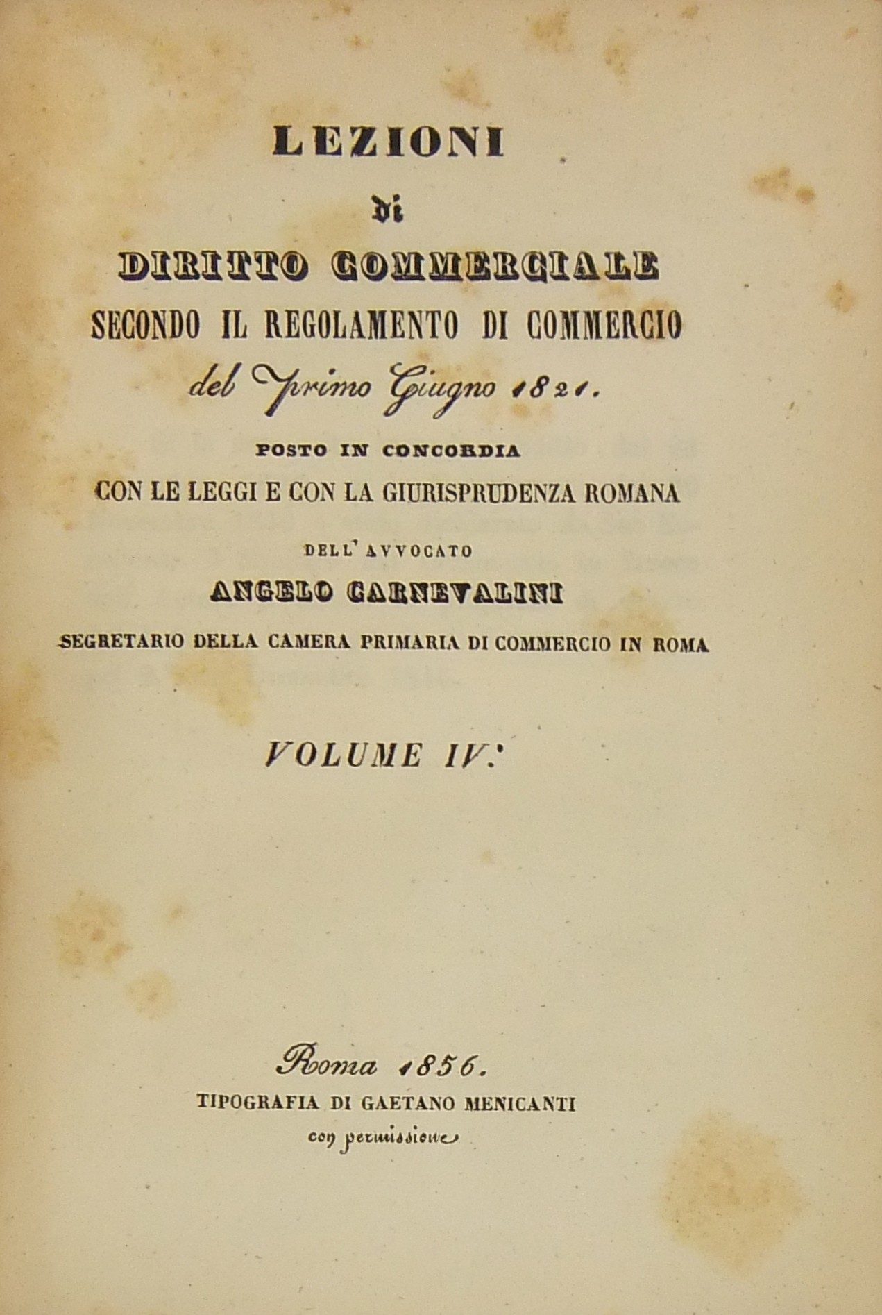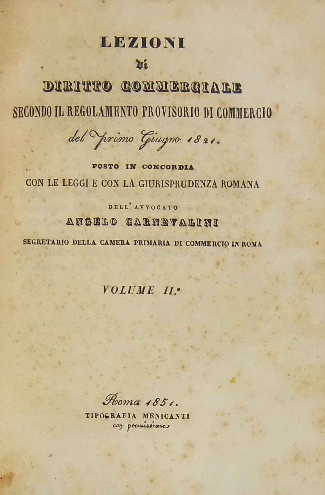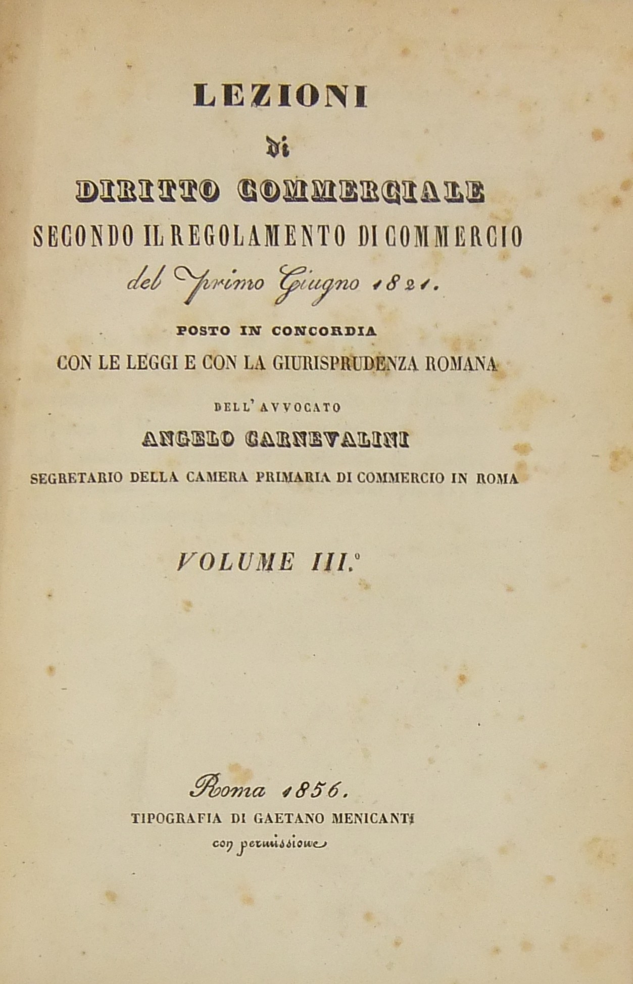 Lezioni di dritto commerciale secondo il regolamento provvisorio di commercio del primo Giugno 1821 posto in concordia con le leggi e con la giurisprudenza romana