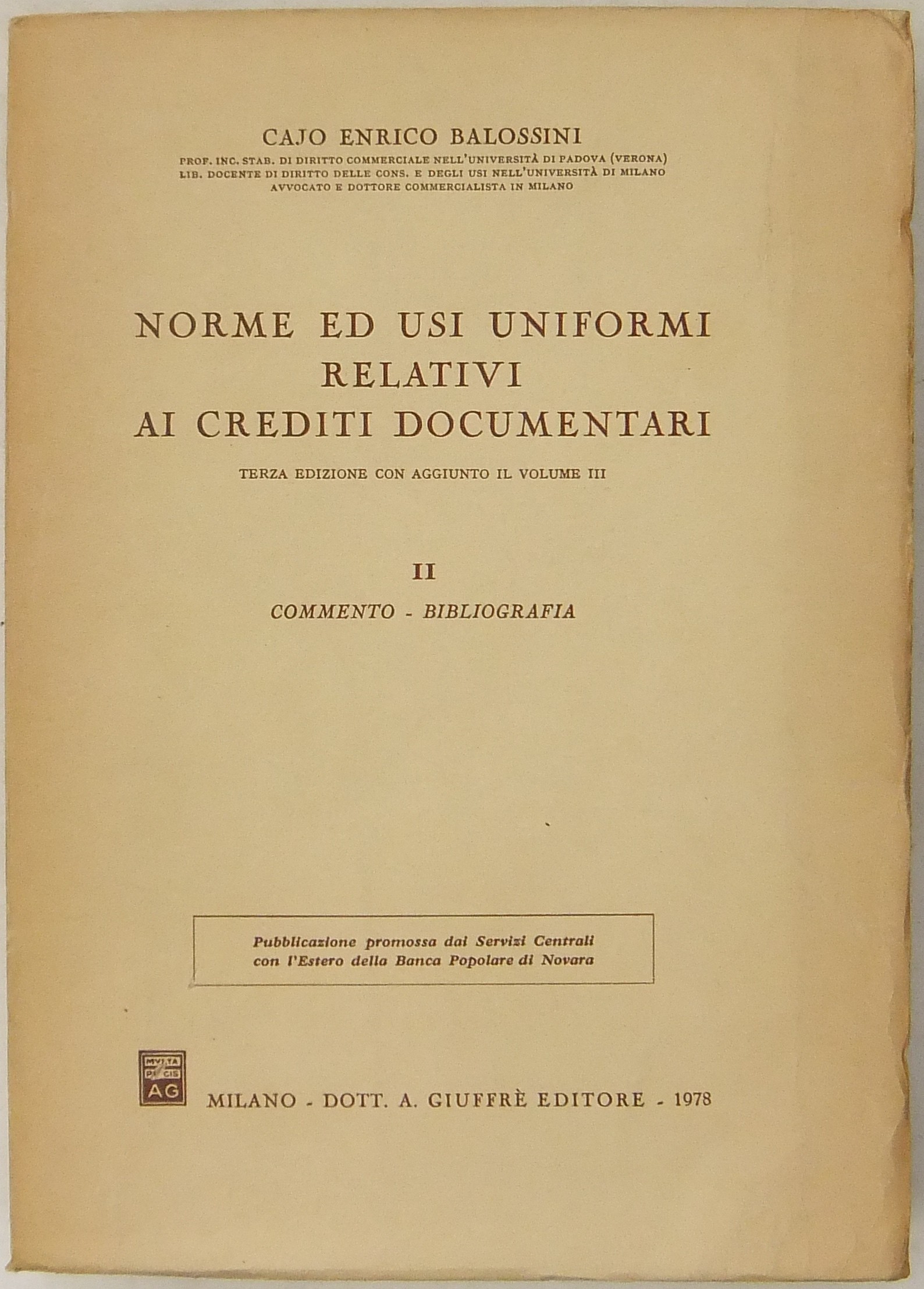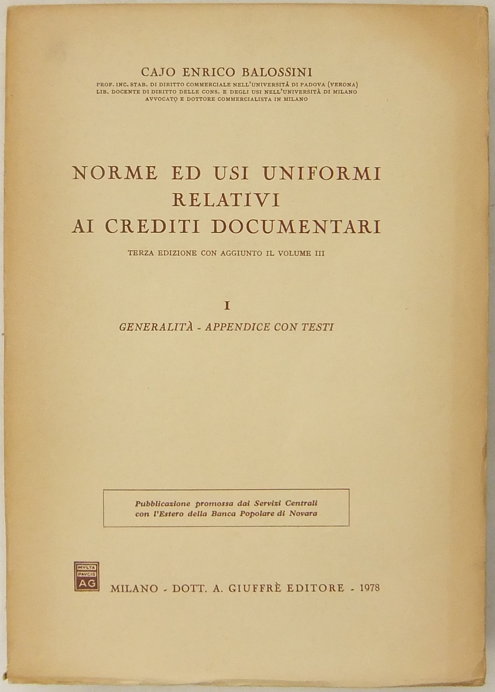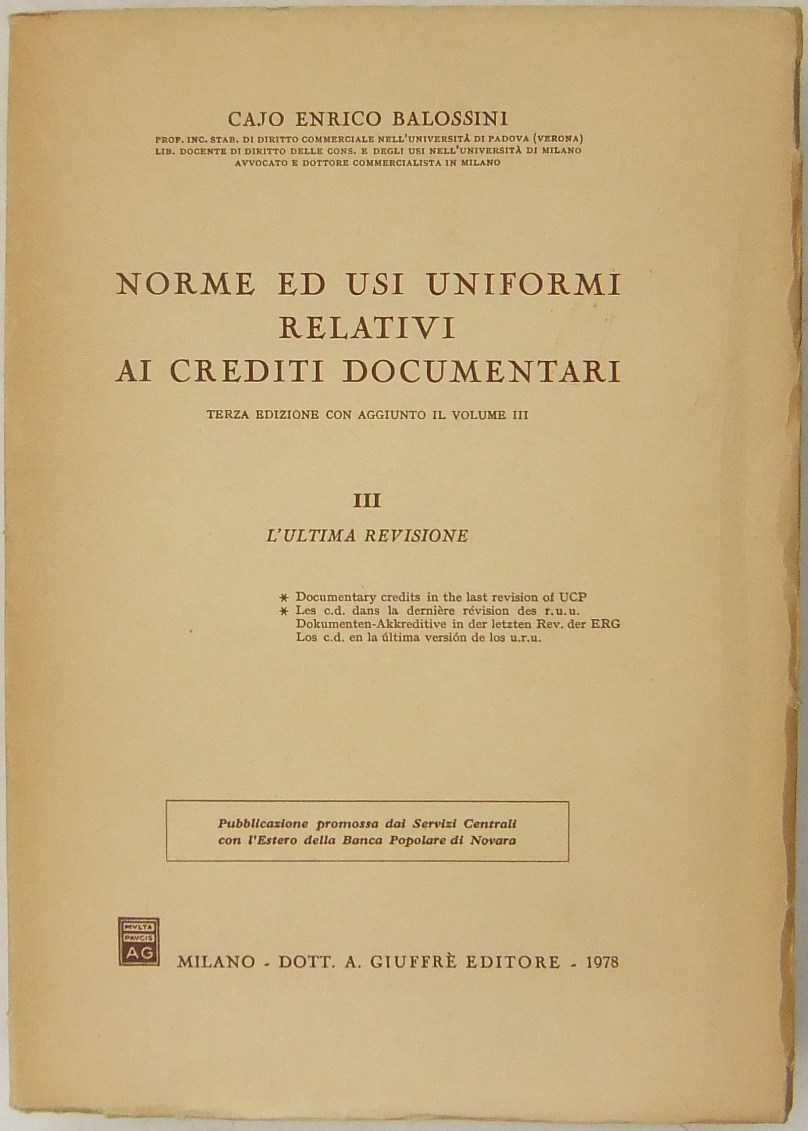 Norme ed usi uniformi relativi ai crediti documentari. Vol. I - Generalità. Appendice con testi. Vol. II - Commento. Bibliografia. Vol. III - L'ultima revisione