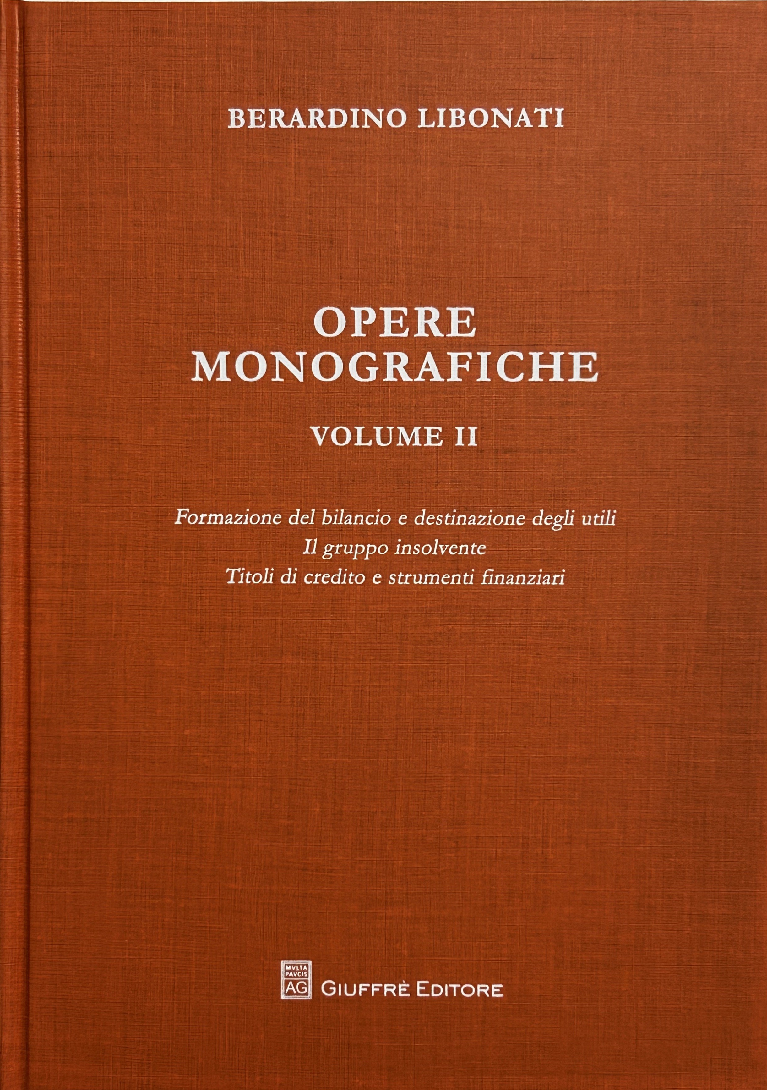 Opere monografiche. Vol. I - Holding e investment trust; I titoli di credito nominativi. Vol. II - Formazione del bilancio e destinazione degli utili; Il gruppo insolvente; Titoli di credito e strumenti finanziari