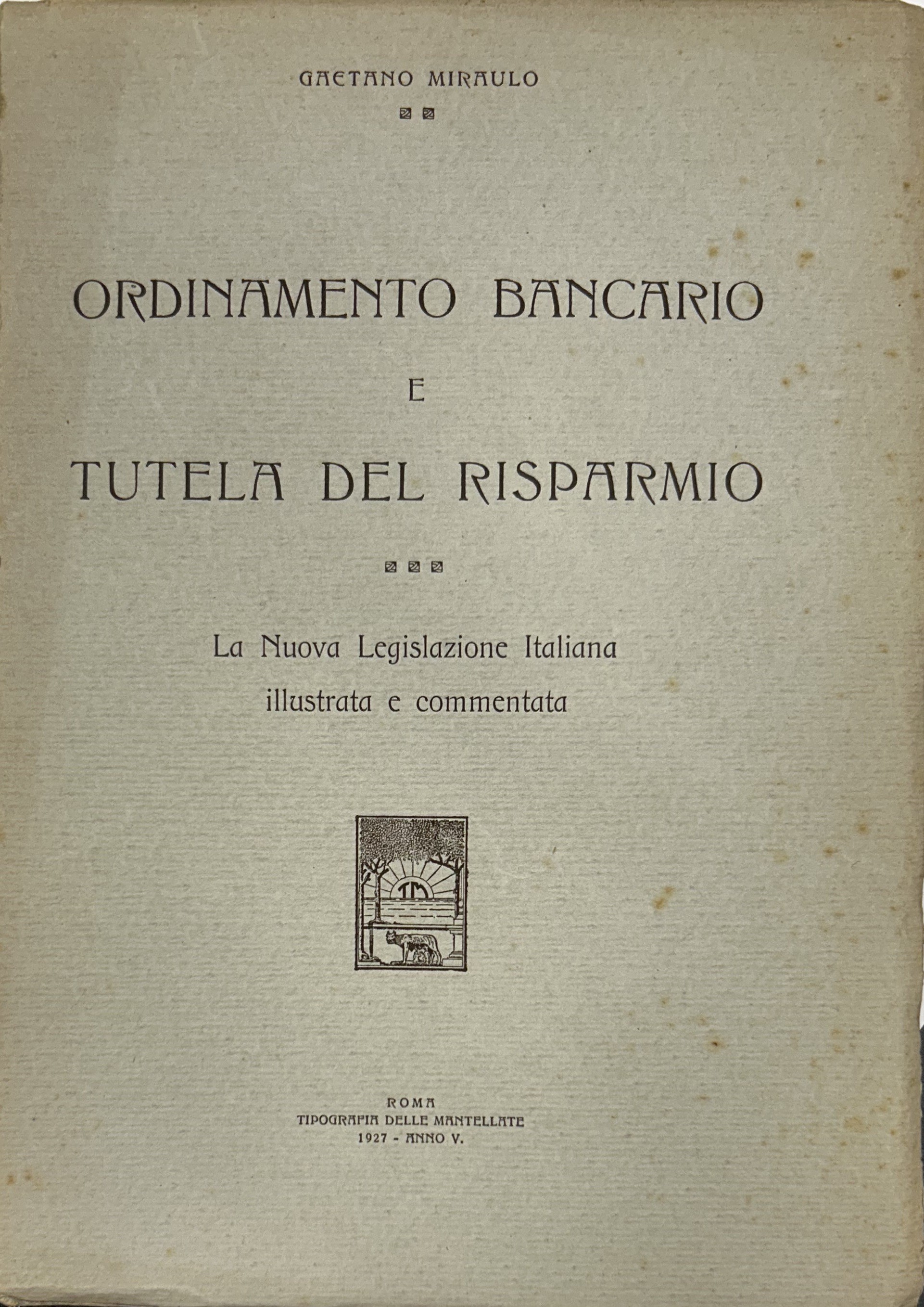 Ordinamento bancario e tutela del risparmio. La nuova legislazione italiana illustrata e commentata