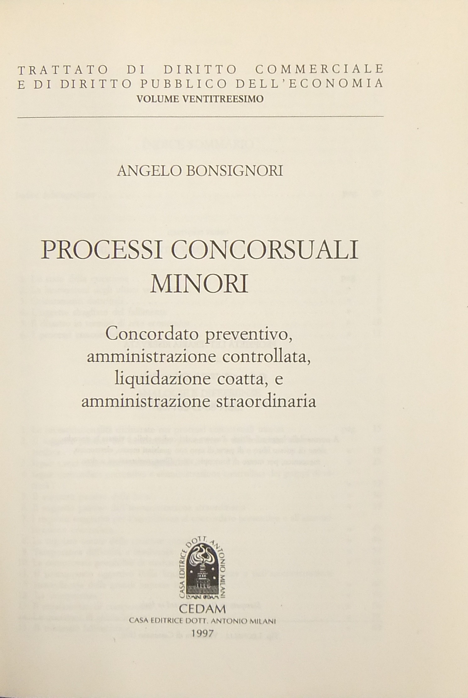 Processi concorsuali minori. Concordato preventivo, amministrazione controllata, liquidazione coatta, e amministrazione straordinaria