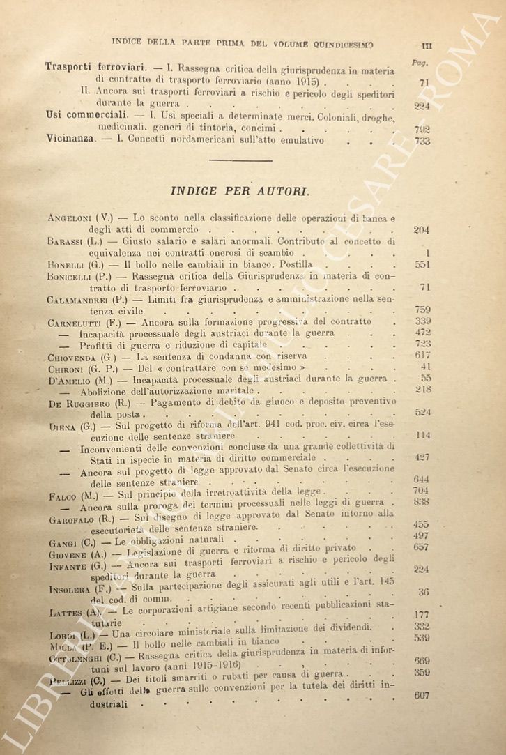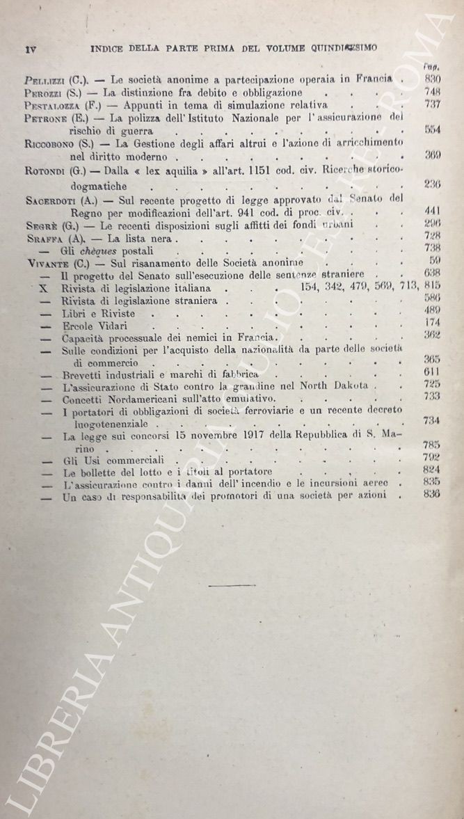 Rivista del Diritto Commerciale e del diritto generale delle obbligazioni. Diretta da A. Sraffa e C. Vivante. Vol. XV - 1917