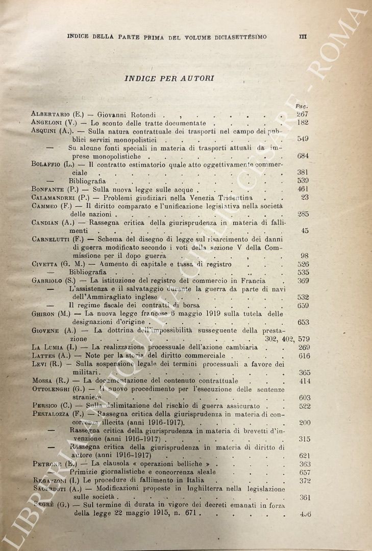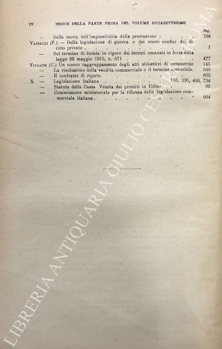 Rivista del Diritto Commerciale e del diritto generale delle obbligazioni. Diretta da A. Sraffa e C. Vivante. Vol. XVII - 1919