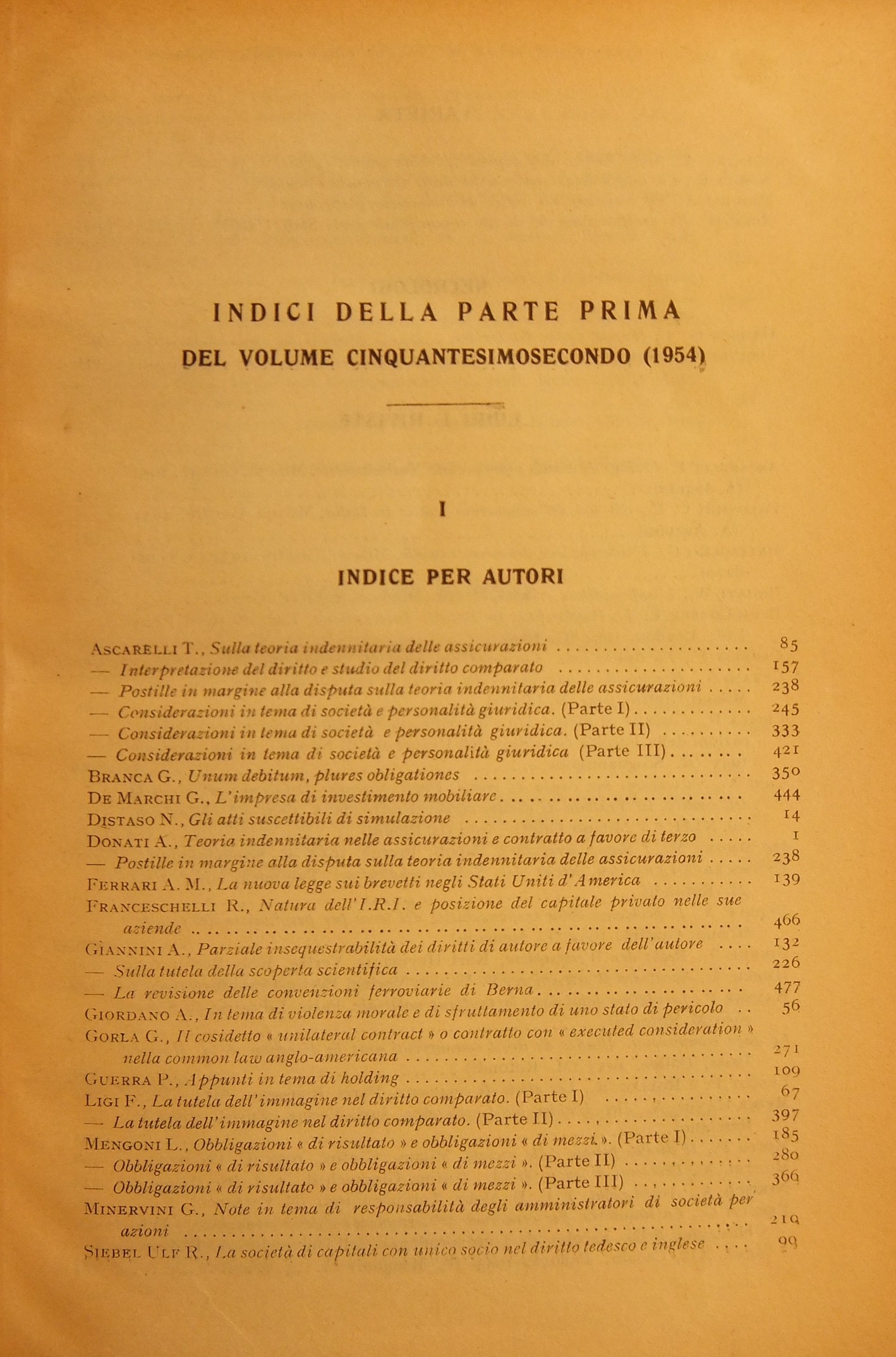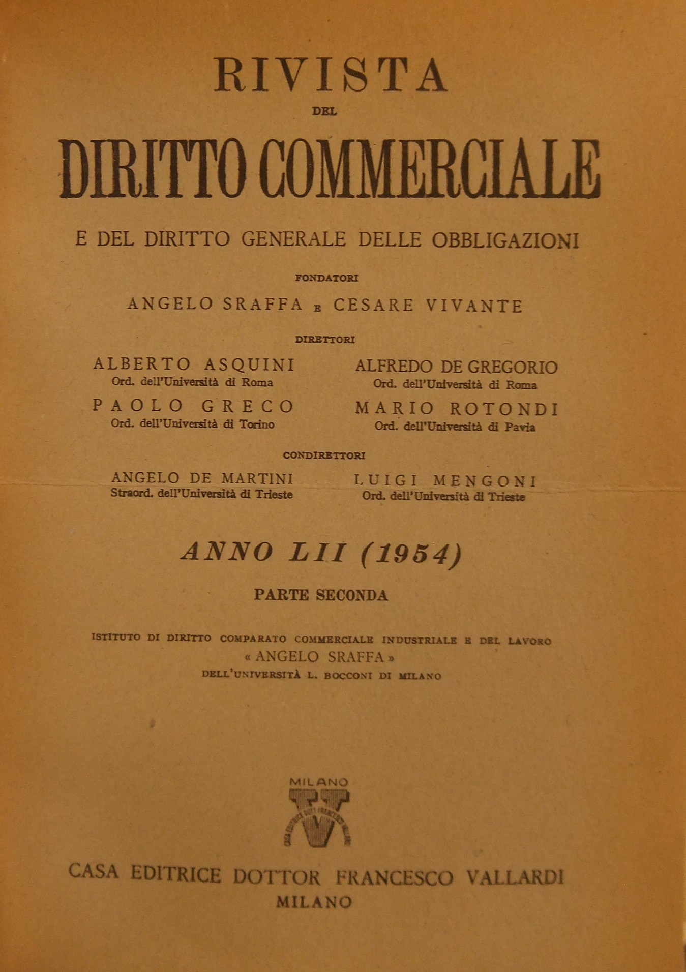 Rivista del Diritto Commerciale e del diritto generale delle obbligazioni. Fondata da A. Sraffa e C. Vivante. Diretta da A. Asquini, A. De Gregorio, P. Greco, M. Rotondi, A. De Martini, L. Mengoni. Vol. LII - 1954