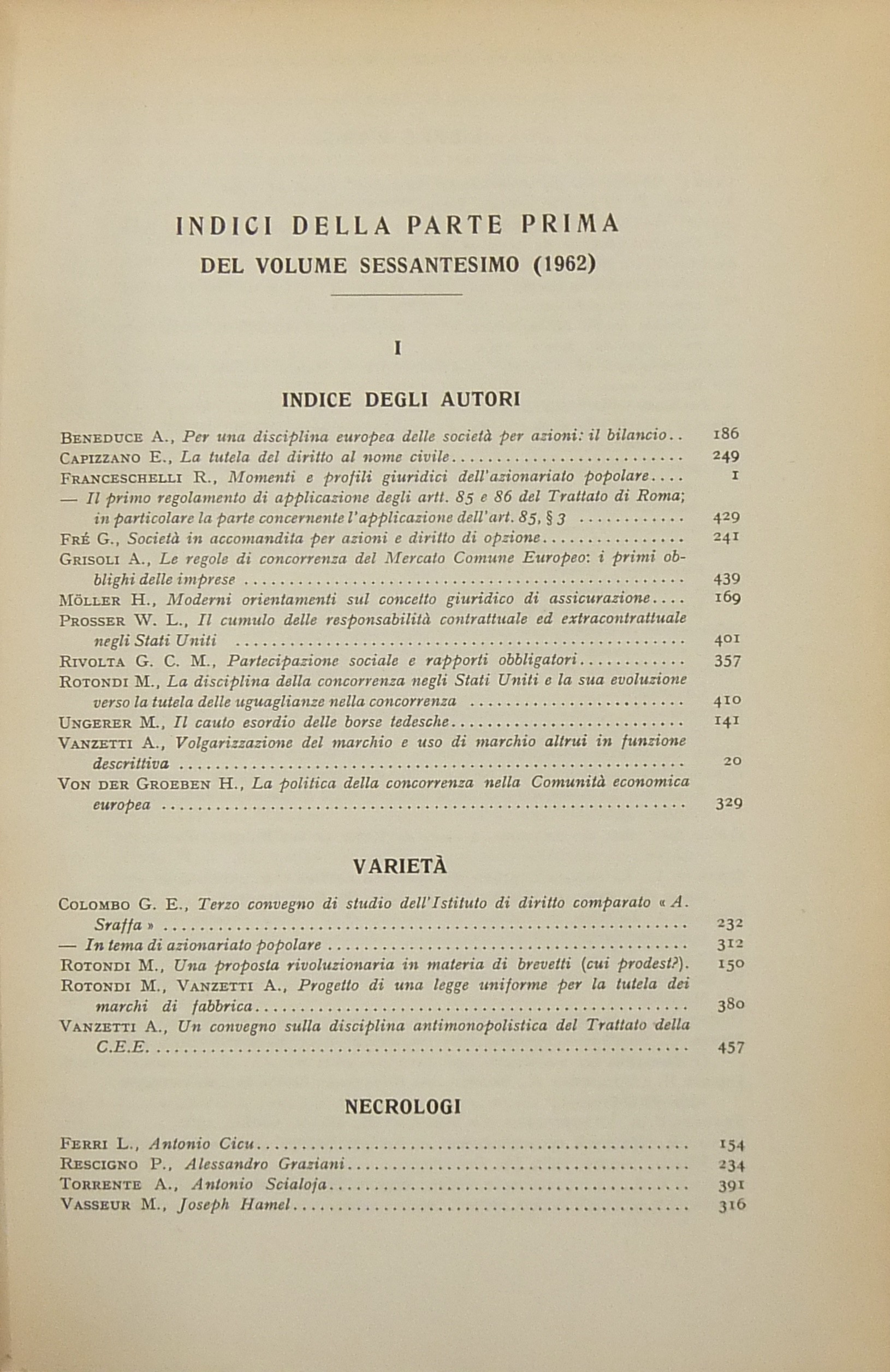 Rivista del Diritto Commerciale e del diritto generale delle obbligazioni. Fondata da A. Sraffa e C. Vivante. Diretta da M. Rotondi. Vol. LX - 1962