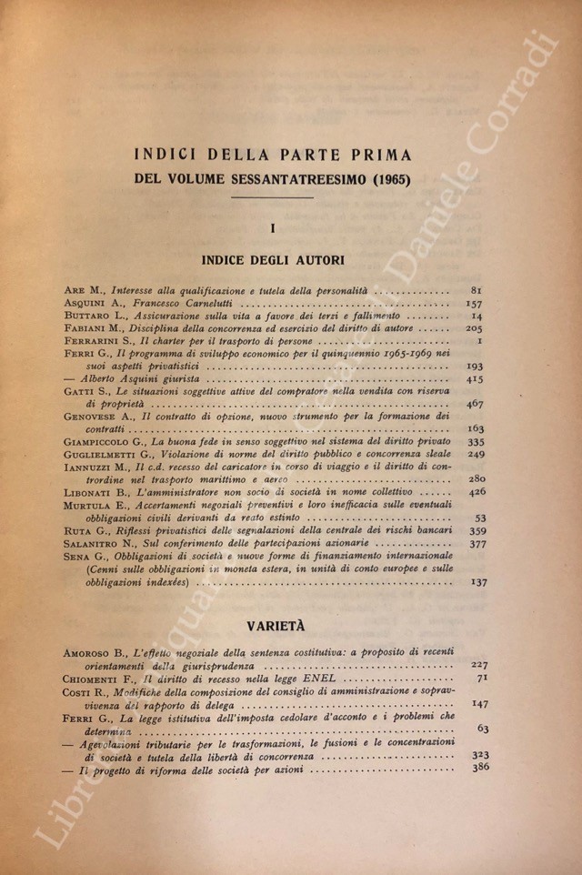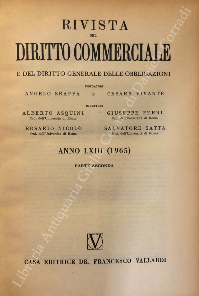 Rivista del Diritto Commerciale e del diritto generale delle obbligazioni. Fondata da A. Sraffa e C. Vivante. Diretta da A. Asquini, G. Ferri, R. Nicolò, S. Satta. Vol. LXIII - 1965
