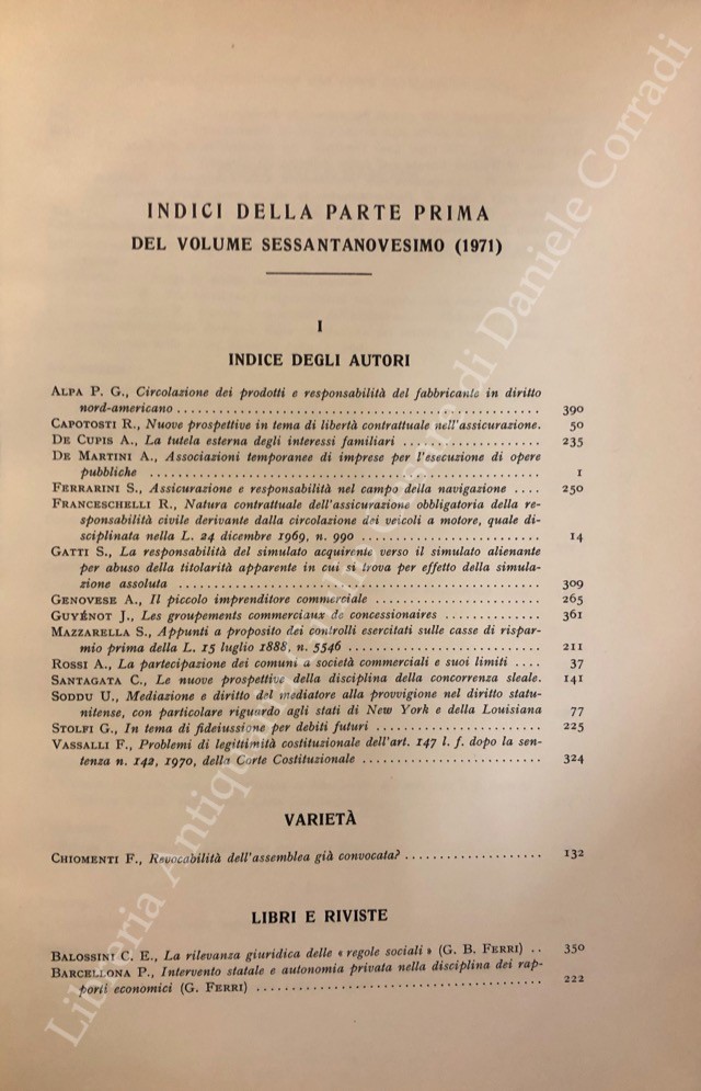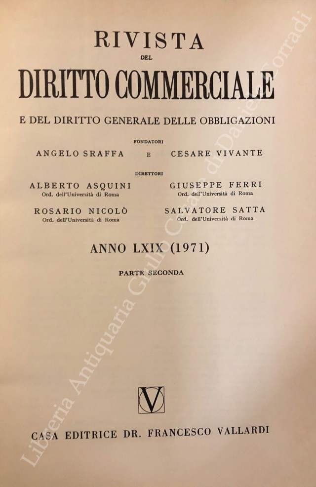 Rivista del Diritto Commerciale e del diritto generale delle obbligazioni. Fondata da A. Sraffa e C. Vivante. Diretta da A. Asquini, G. Ferri, R. Nicolò, S. Satta. Vol. LXIX - 1971