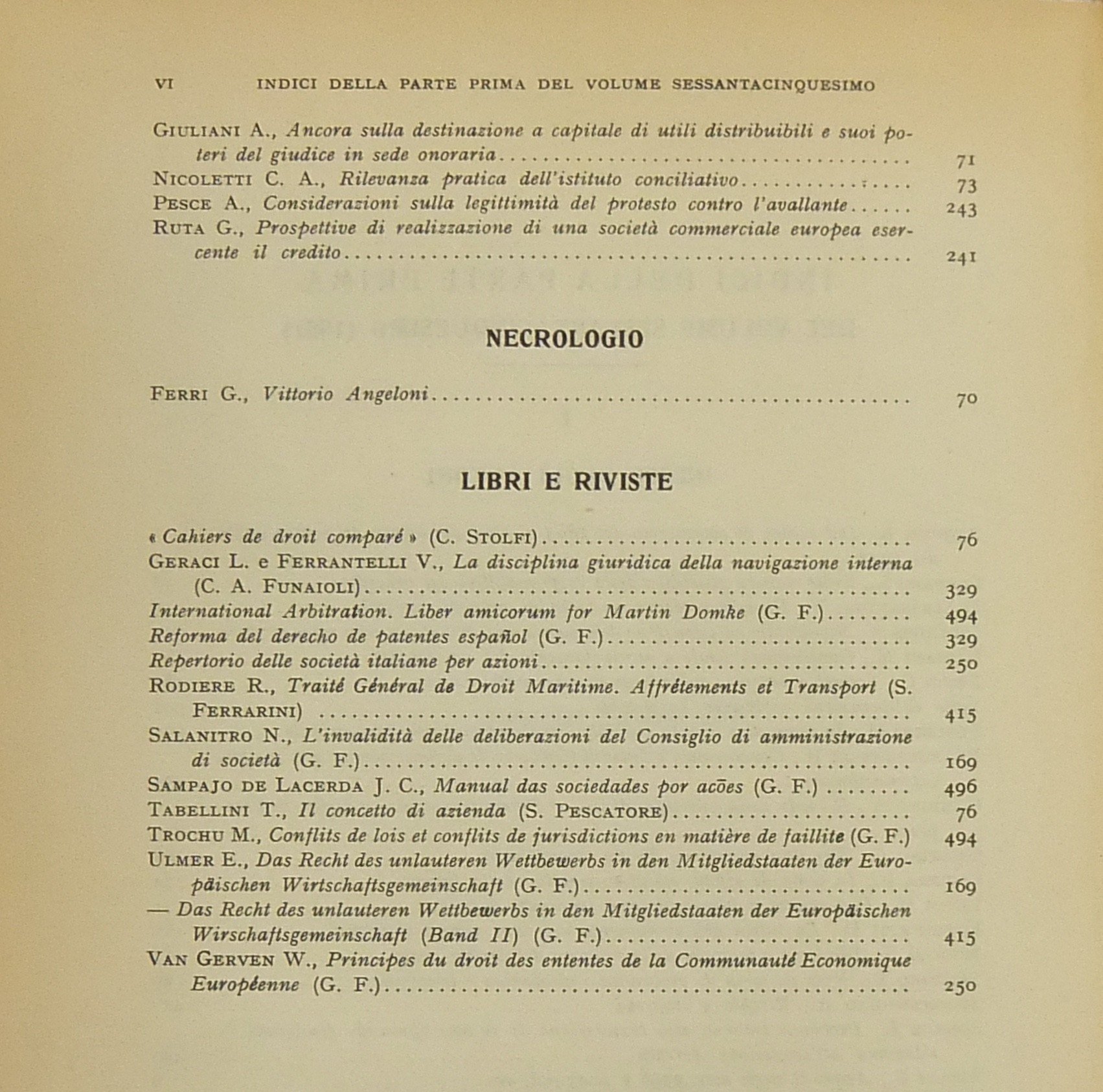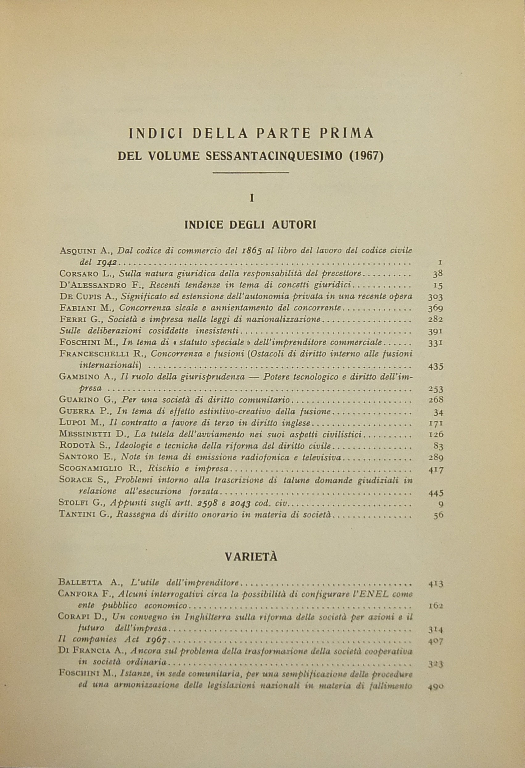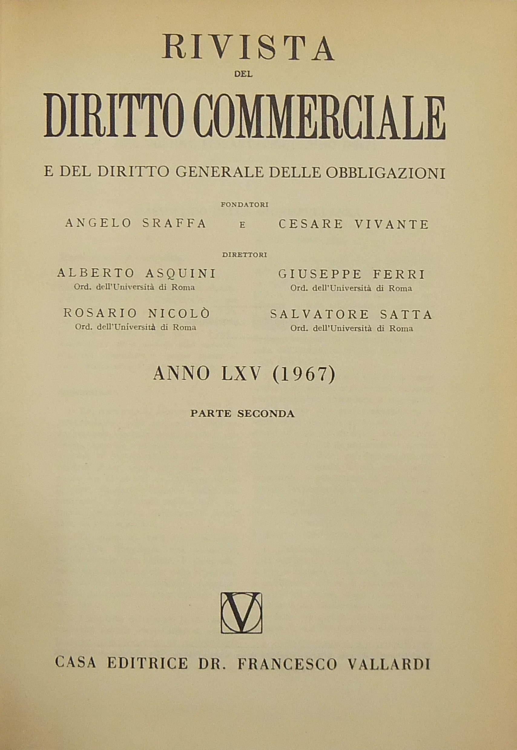Rivista del Diritto Commerciale e del diritto generale delle obbligazioni. Fondata da A. Sraffa e C. Vivante. Diretta da A. Asquini, G. Ferri, R. Nicolò, S. Satta. Vol. LXV - 1967