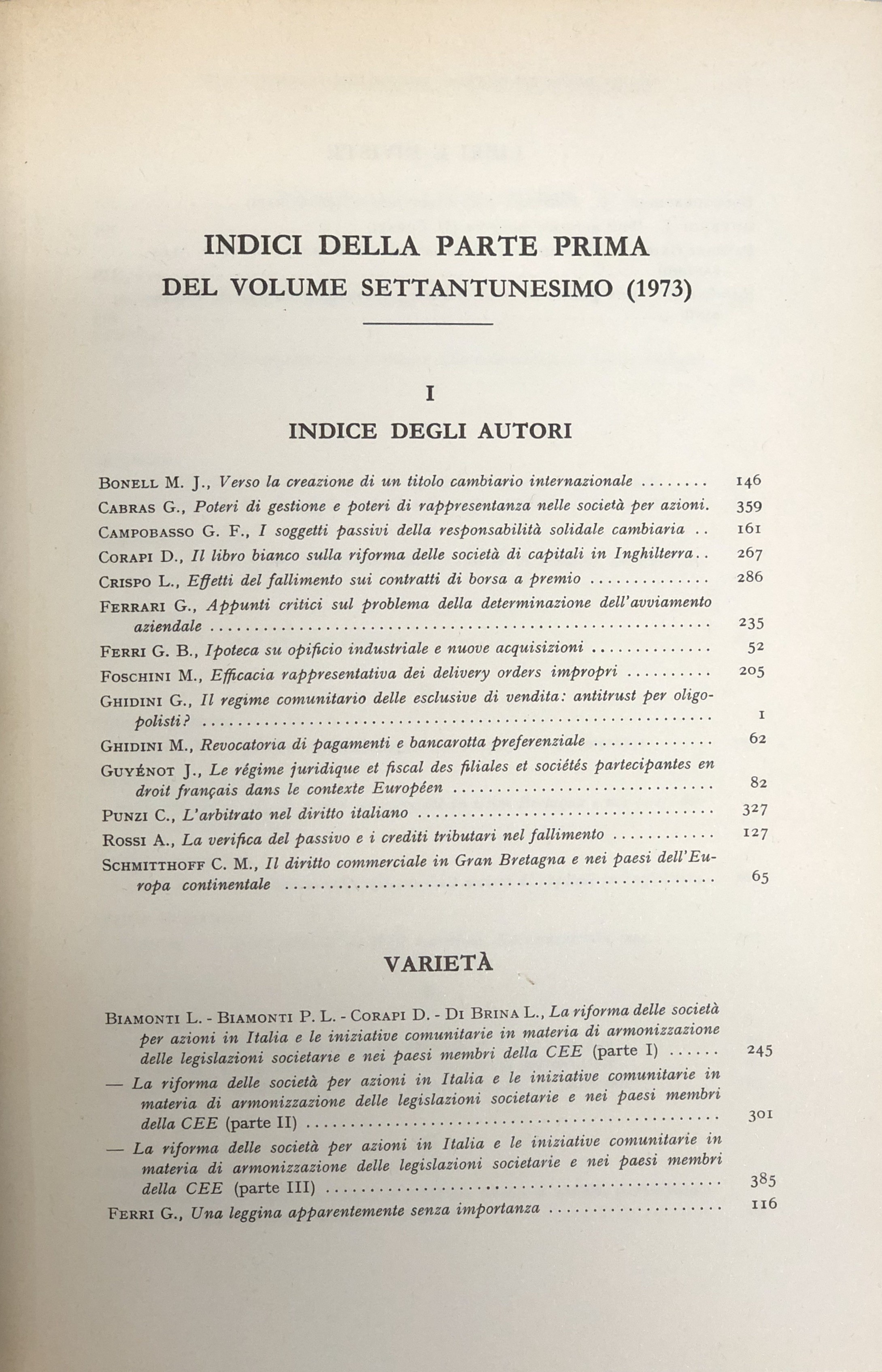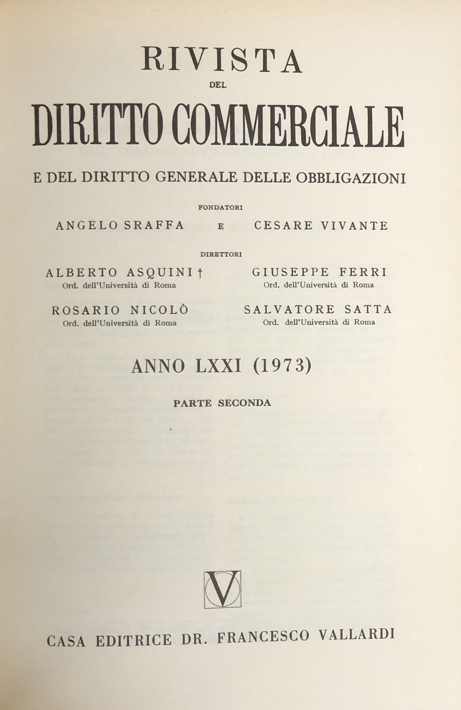 Rivista del Diritto Commerciale e del diritto generale delle obbligazioni. Fondata da A. Sraffa e C. Vivante. Diretta da A. Asquini, G. Ferri, R. Nicolò, S. Satta. Vol. LXXI - 1973