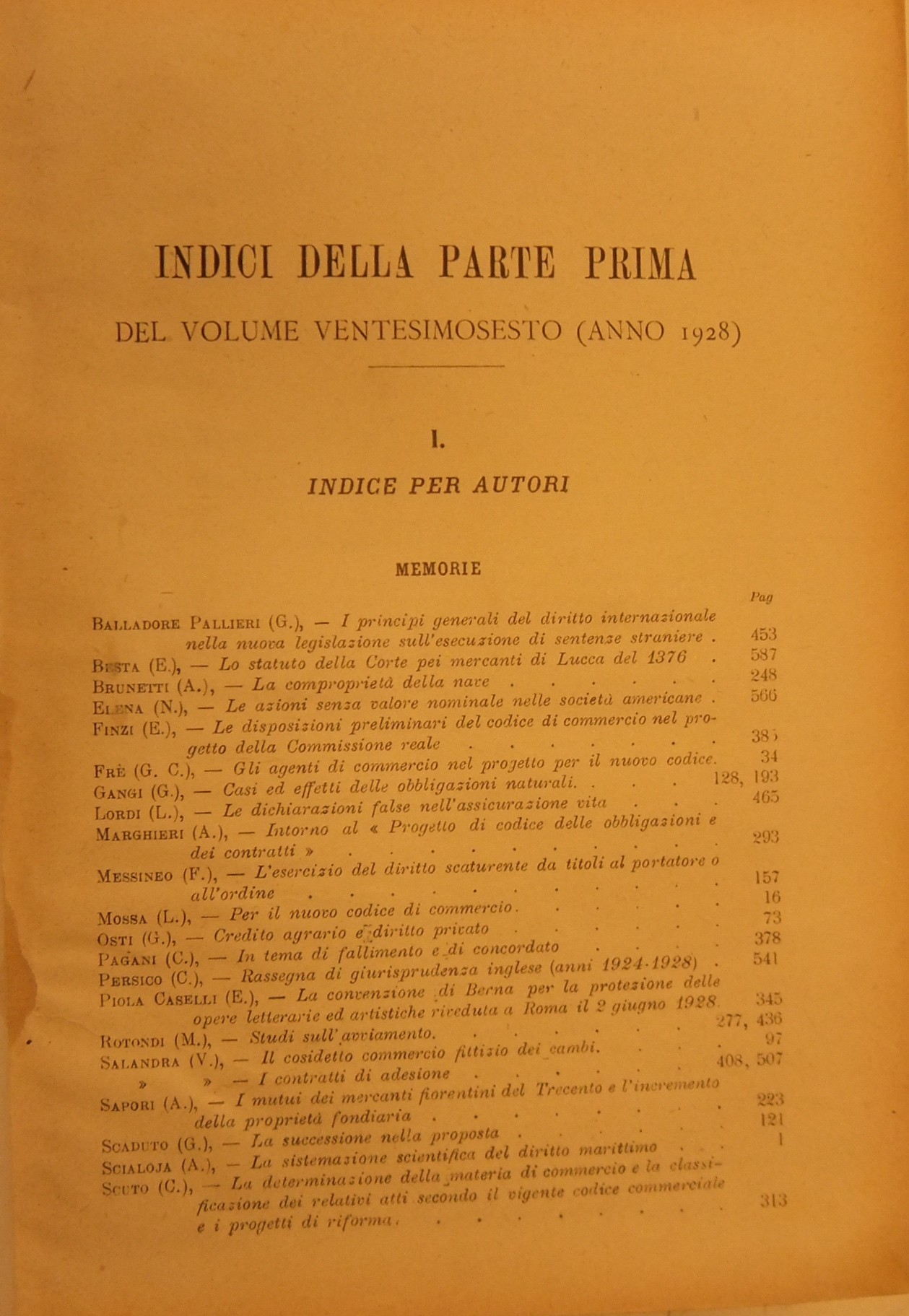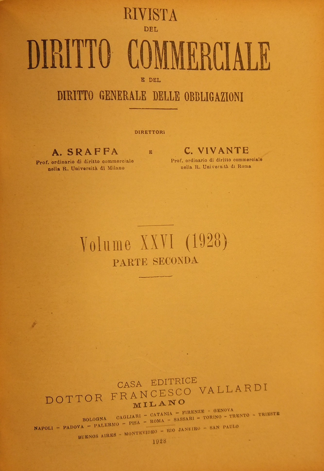 Rivista del Diritto Commerciale e del diritto generale delle obbligazioni. Diretta da A. Sraffa e C. Vivante. Vol. XXVI - 1928